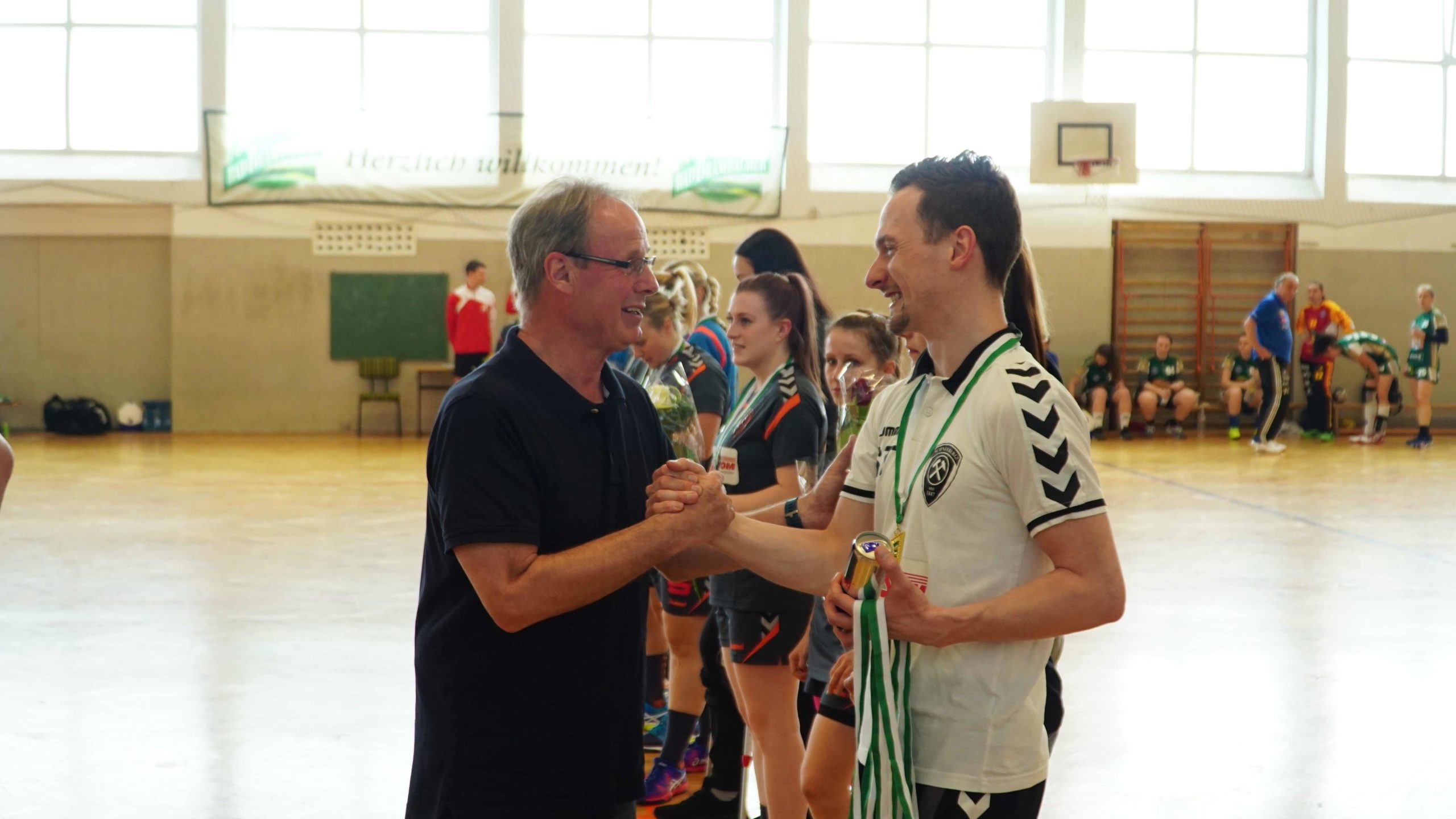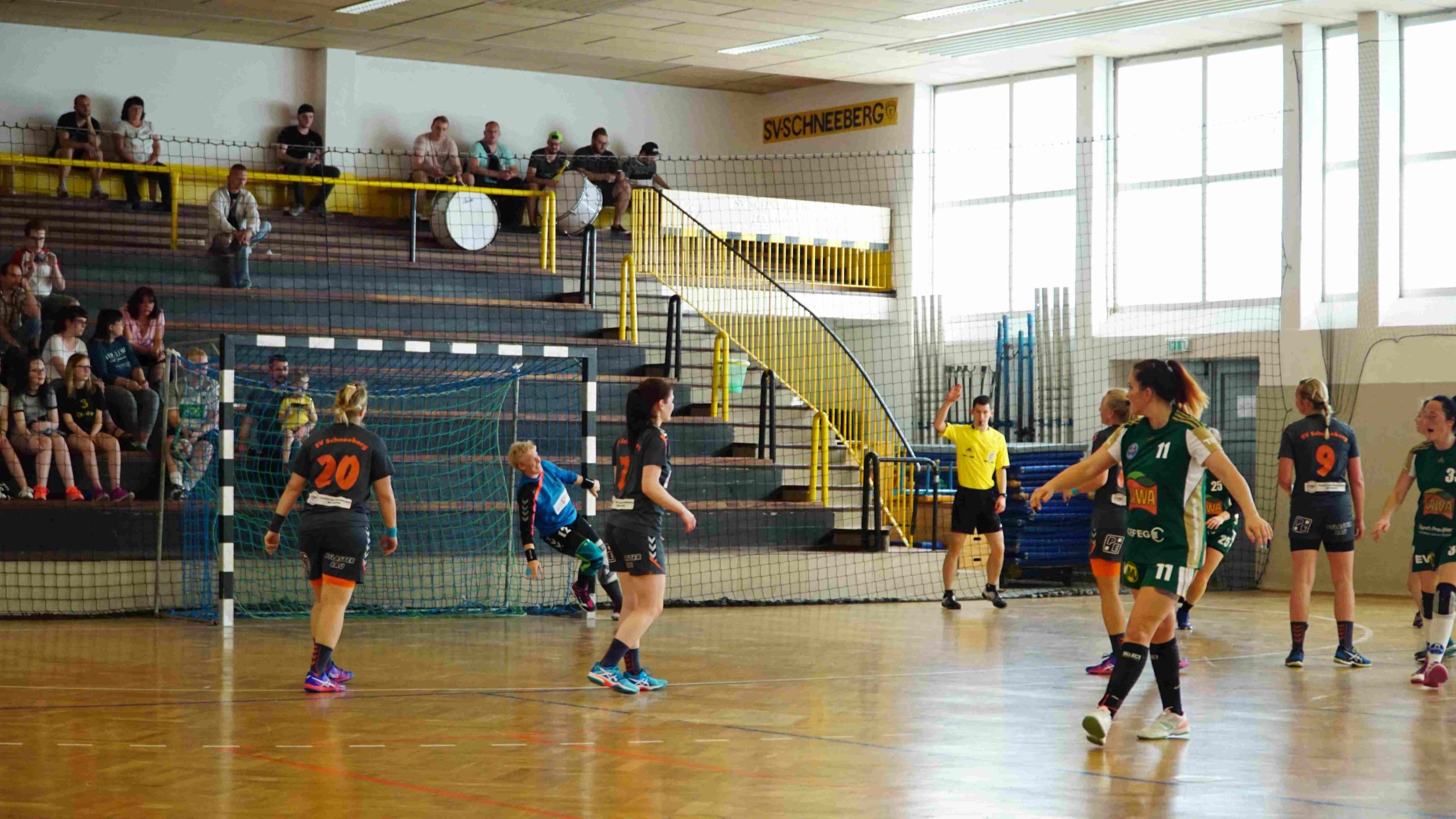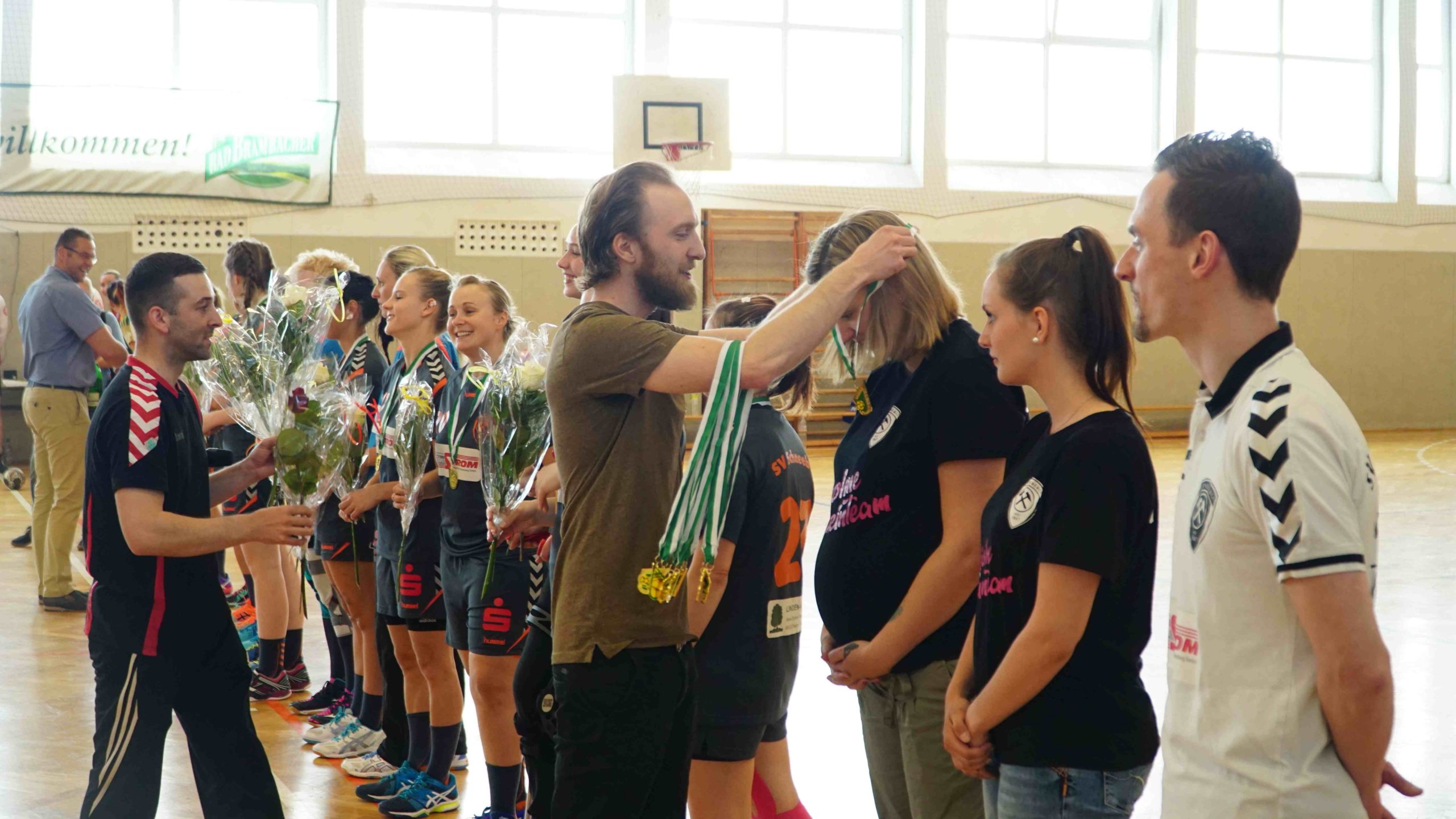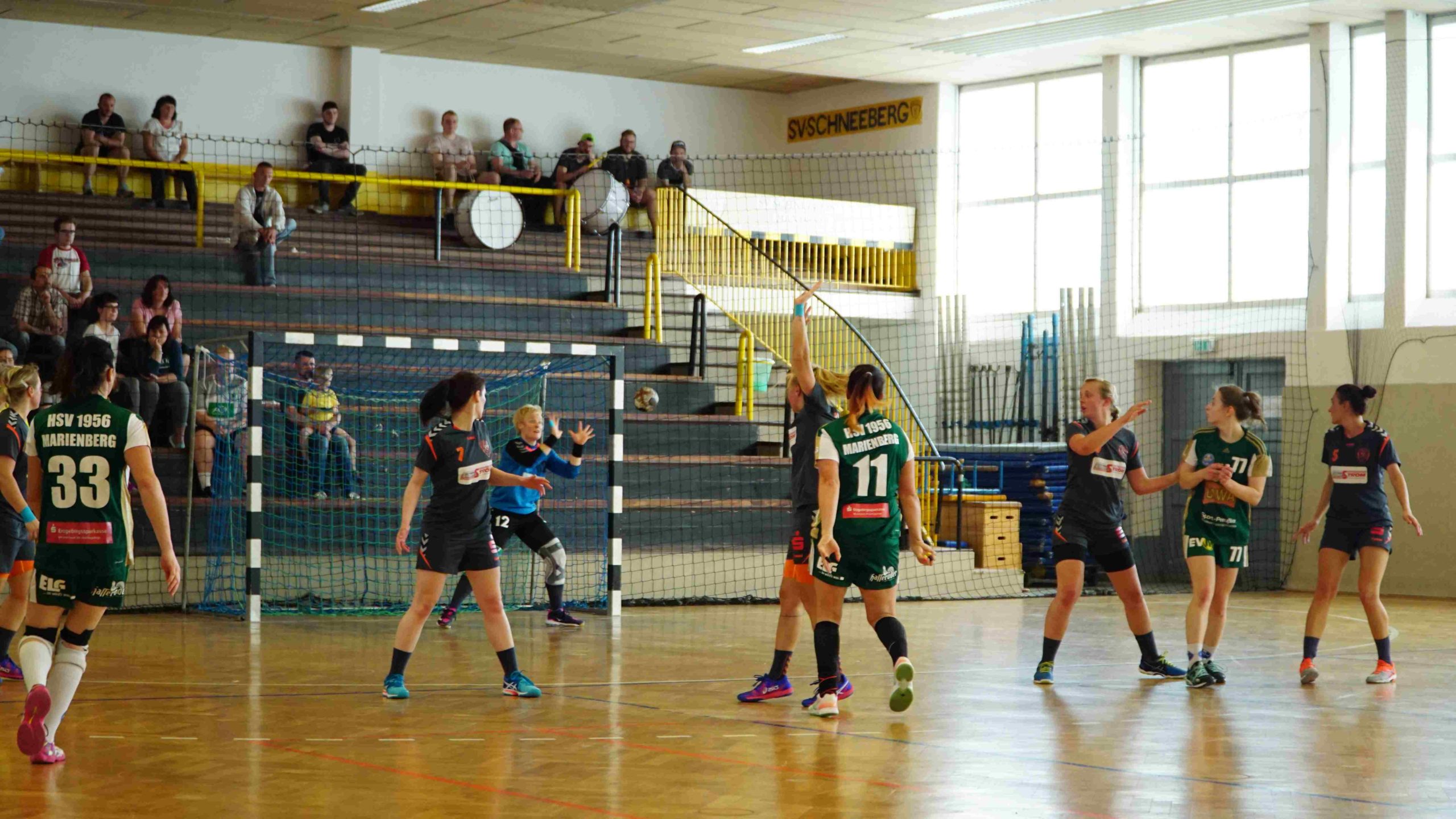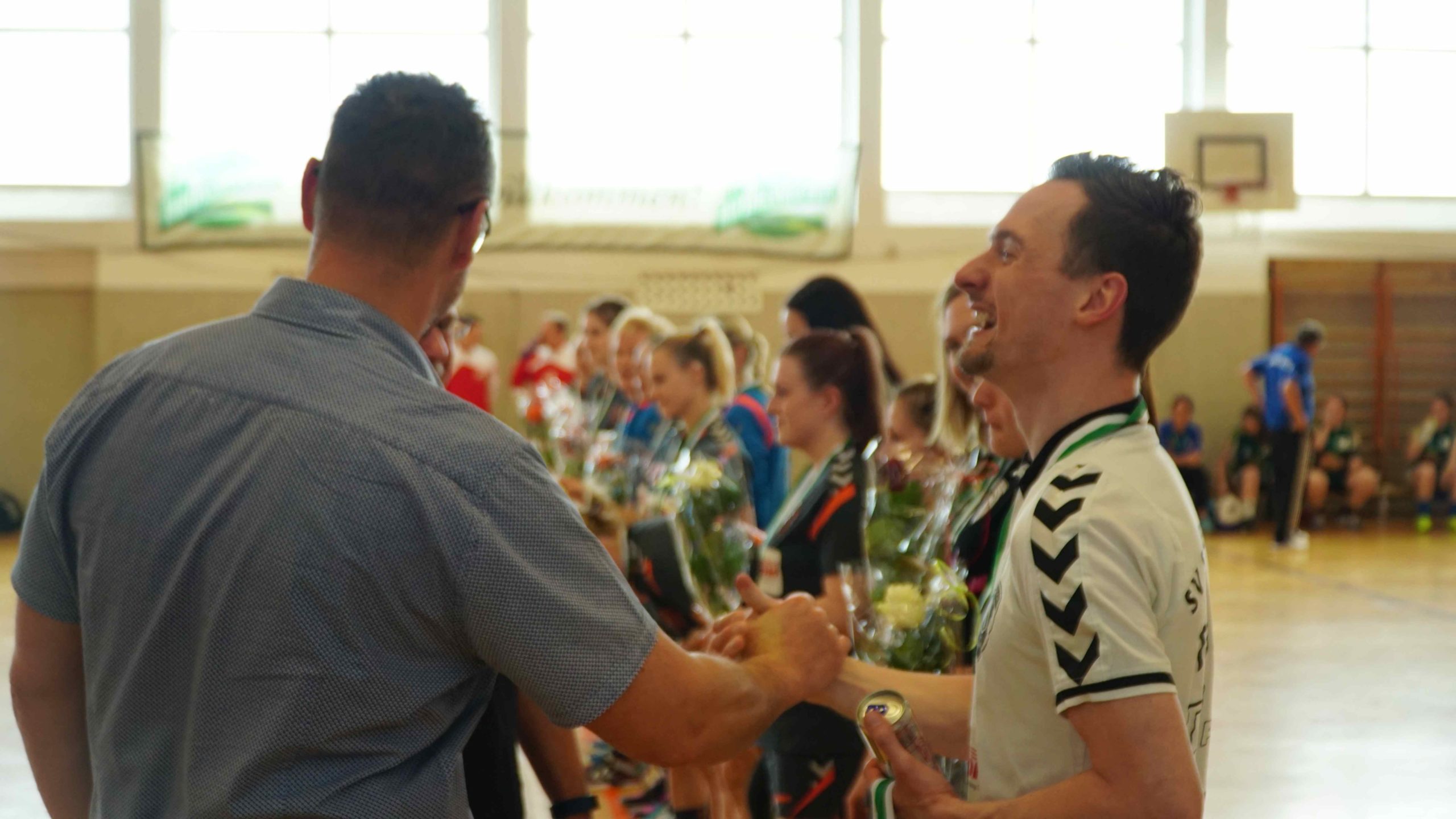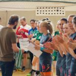 Zum letzten Spiel der aktuellen Saison stand die Heimpartie gegen die zweite Vertretung des HSV Marienberg an. Und wir möchten uns zunächst noch einmal recht herzlich bei der Marienberger Mannschaft und dem Trainerteam bedanken. Denn sie reisten durch Verletzungen gebeutelt mit gerade einmal 8 Spielerinnen an und bewiesen somit wahren Sportgeist! Großen Respekt an die Spielerinnen und das Trainerteam dafür. Trainer Stefan Süßmilch brachte zusätzlich einen Strauß Blumen mit, den er vor Spielbeginn unserer Kapitänin Linda Leonhardt überreichte und zur Meisterschaft gratulierte. Und er sollte nicht der letzte Gratulant an diesem Abend werden. Denn vor Anpfiff gab es noch die offizielle Ehrung durch Jan Schreiter (Handballverband Sachsen). Und auch unser Bürgermeister Ingo Seifert und Vorstands-Vizepräsident Klaus-Dieter Voigt (SV Schneeberg) ließen es sich natürlich nicht nehmen uns auch persönlich vor Ort für die Leistung zu gratulieren. An alle noch einmal ein herzliches Dankeschön dafür!