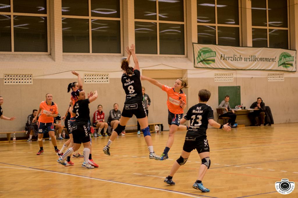 Erneut kamen wir gut ins Spiel, agierten wach und sicher in der Abwehr und auch Louisa im Tor konnte in den ersten Spielminuten mehrere Angriffe der Gäste entschärfen. Im eigenen Angriff gelang es uns die Abwehr der Mockauerinnen unter Druck zu setzen und die nötigen Lücken zum Abschluss zu finden. Das Resultat der ersten 5 Minuten war ein gutes 4:1 auf der Anzeigetafel. Diesen Lauf konnten wir jedoch nicht weiter ausbauen. Unsere offensiv agierende Abwehr und der starke Mittelblock mit Linda und Jeannine vereitelten zwar weiterhin viele Angriffe der Gäste, jedoch hatten wir jetzt im Angriff zunehmend Probleme unsere gut herausgespielten Chancen im Tor unterzubringen. Auf Grund der vielen ausgelassenen Tormöglichkeiten ging es „nur“ mit einem 13:10 in die Halbzeitpause.