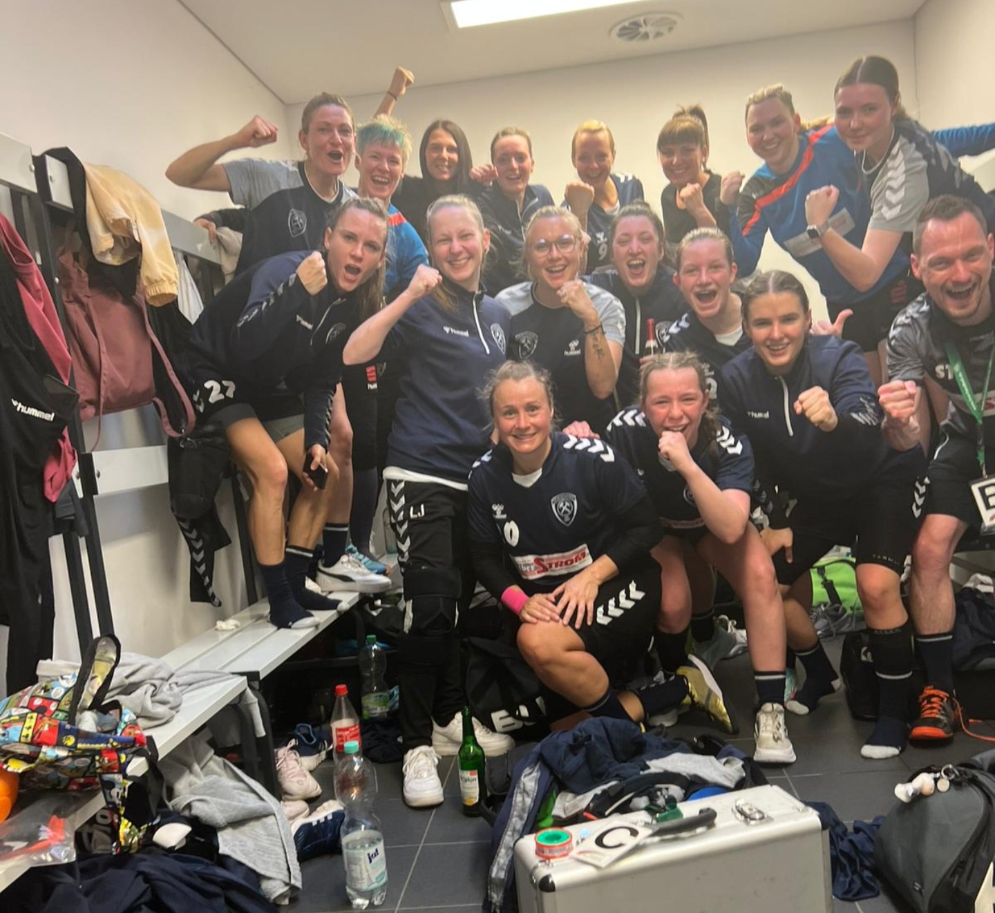 Nach Wiederanpfiff lief es nun zunächst gut. In der 40. Spielminute schienen wir die Partie beim Stand von 12:16 wieder im Griff zu haben. Doch es sollte noch einmal unnötig spannend werden. Die Gastgeberinnen schafften es den Spieß wieder umzudrehen und führten nur 9 Minuten vor Ende mit 22:21. Mit großem Krafteinsatz und Willen agierten wir jetzt jedoch clever und ließen bis zum Schluss kein Gegentor mehr zu. Und nach 5 Toren in Folge stand am Ende der erlösende 22:26 für uns fest.