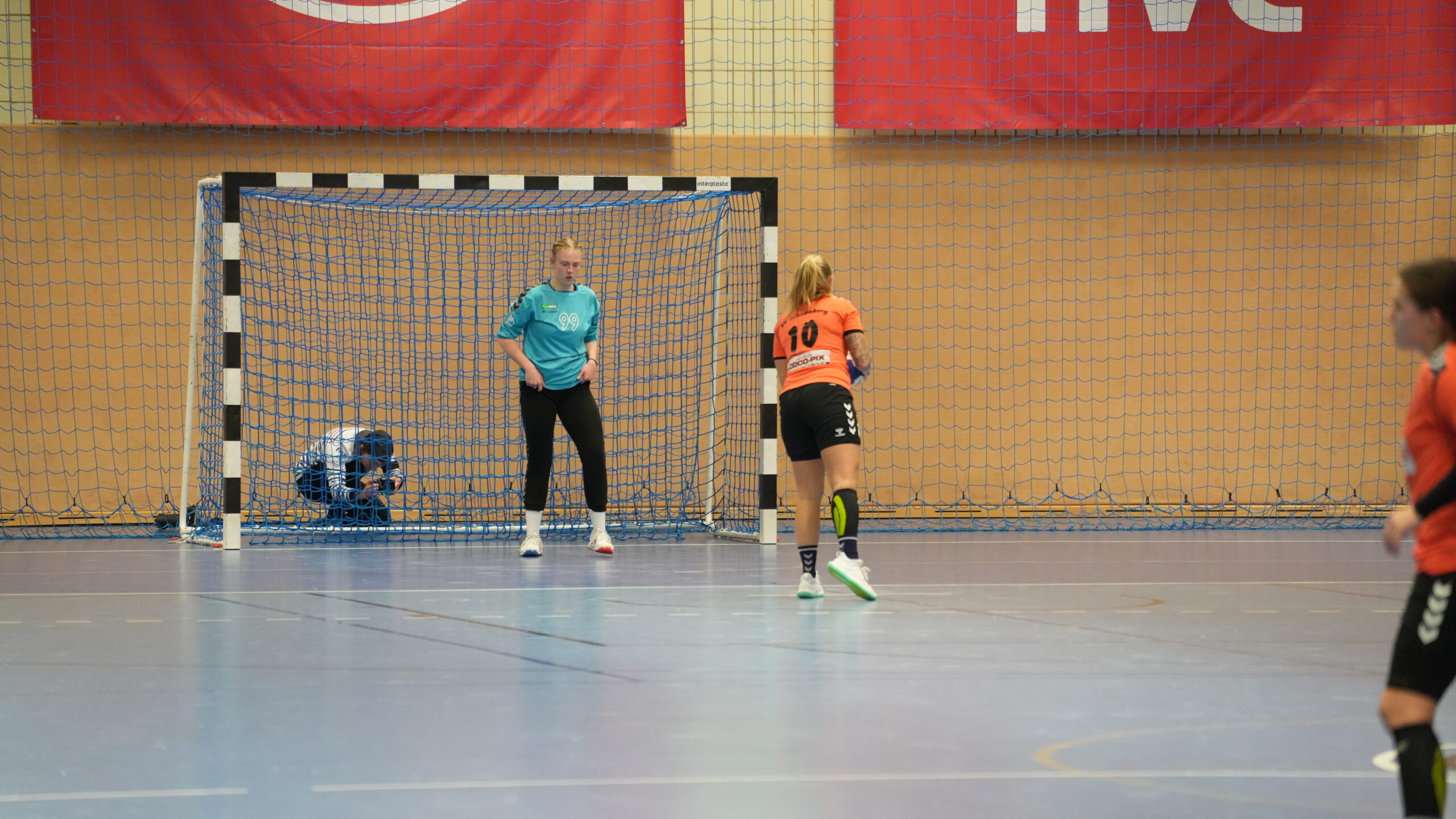 Für uns kam noch ein großer Schock hinzu, als sich Romy beim abschließenden Tor der ersten Hälfte in der letzten Sekunde bei der Landung schwer verletzte und nicht weiterspielen konnte. Die Halbzeitbesprechung verlief in Folge dessen leider sehr sporadisch, dennoch wurden zumindest die notwendigen Umstellungen noch schnell vor Wiederanpfiff abgestimmt.