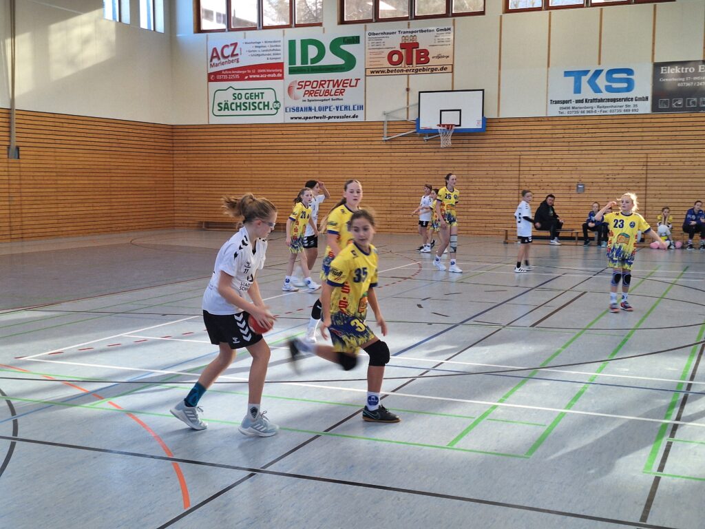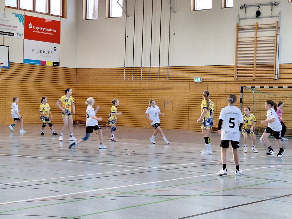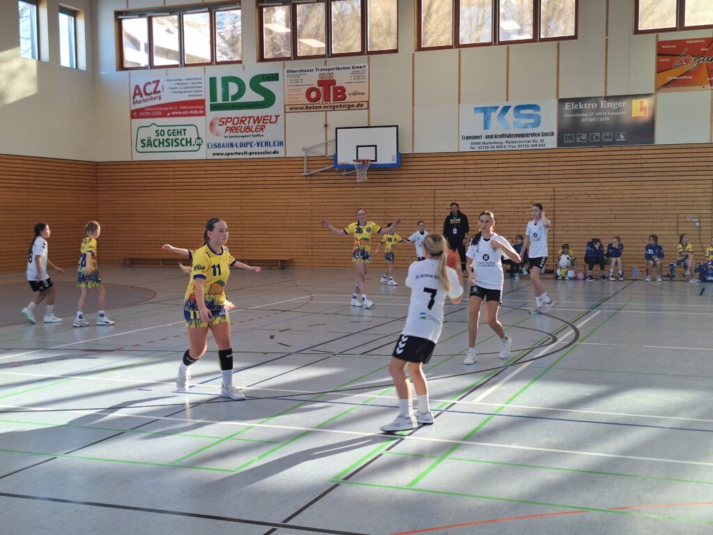 Am vergangenen Samstag ging es für unsere D-Jugend zum Auswärtsspiel in das verschneite Marienberg. Die Partie zwischen dem HSV Marienberg und der SG Zschorlau/Schneeberg entwickelte sich von Beginn an zu einem einseitigen Duell. Während unsere Spielerinnen der SG Zschorlau/Schneeberg konsequent ihre Chancen nutzten und mit präzisen Angriffen punkteten, konnte Marienberg lediglich in einzelnen Phasen Akzente setzen. Am Ende konnten wir einen 11:23 Auswärtssieg feiern.