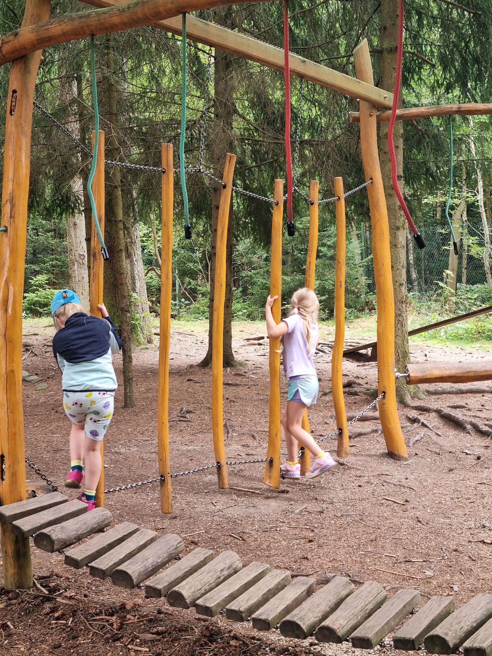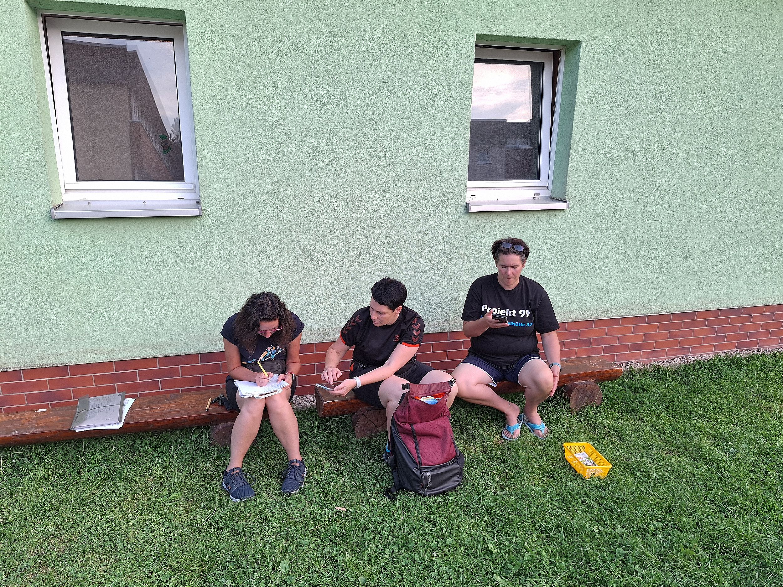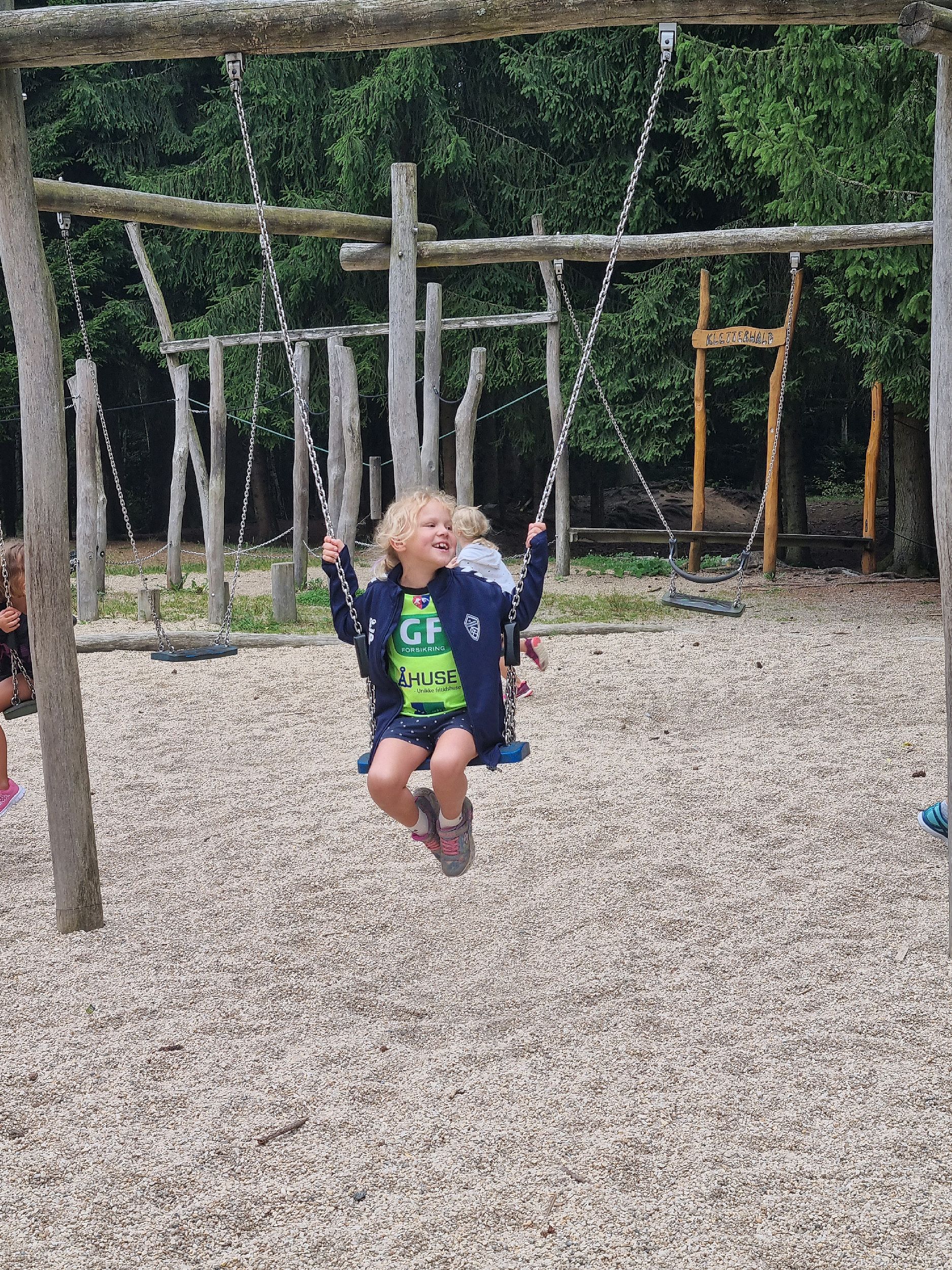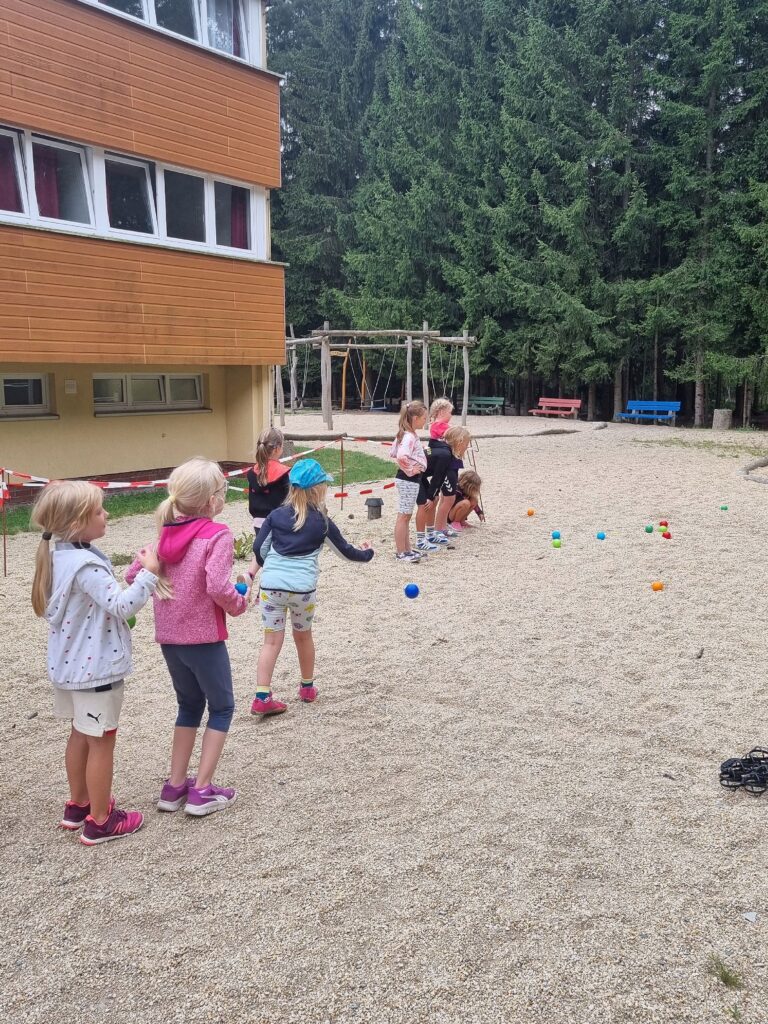 Nach dem gemeinsamen Mittagessen folgte eine kleine Ruhephase mit Meditation und Musik, ehe es erneut sportlich weiterging. Auf dem Außengelände zeigten die Mädchen Mut und Geschick im Kletterparcours, tobten auf dem Spielplatz, spielten Boccia und absolvierten auf dem Sportplatz Sprints, Hürdenläufe sowie Wurfübungen. Am Nachmittag stand zudem Entspannung am Filzteich auf dem Plan: Füße ins Wasser, Sandburgen bauen, Edelsteine sammeln – und wer noch Energie hatte, wagte sich an Slackline und Affenschaukel.