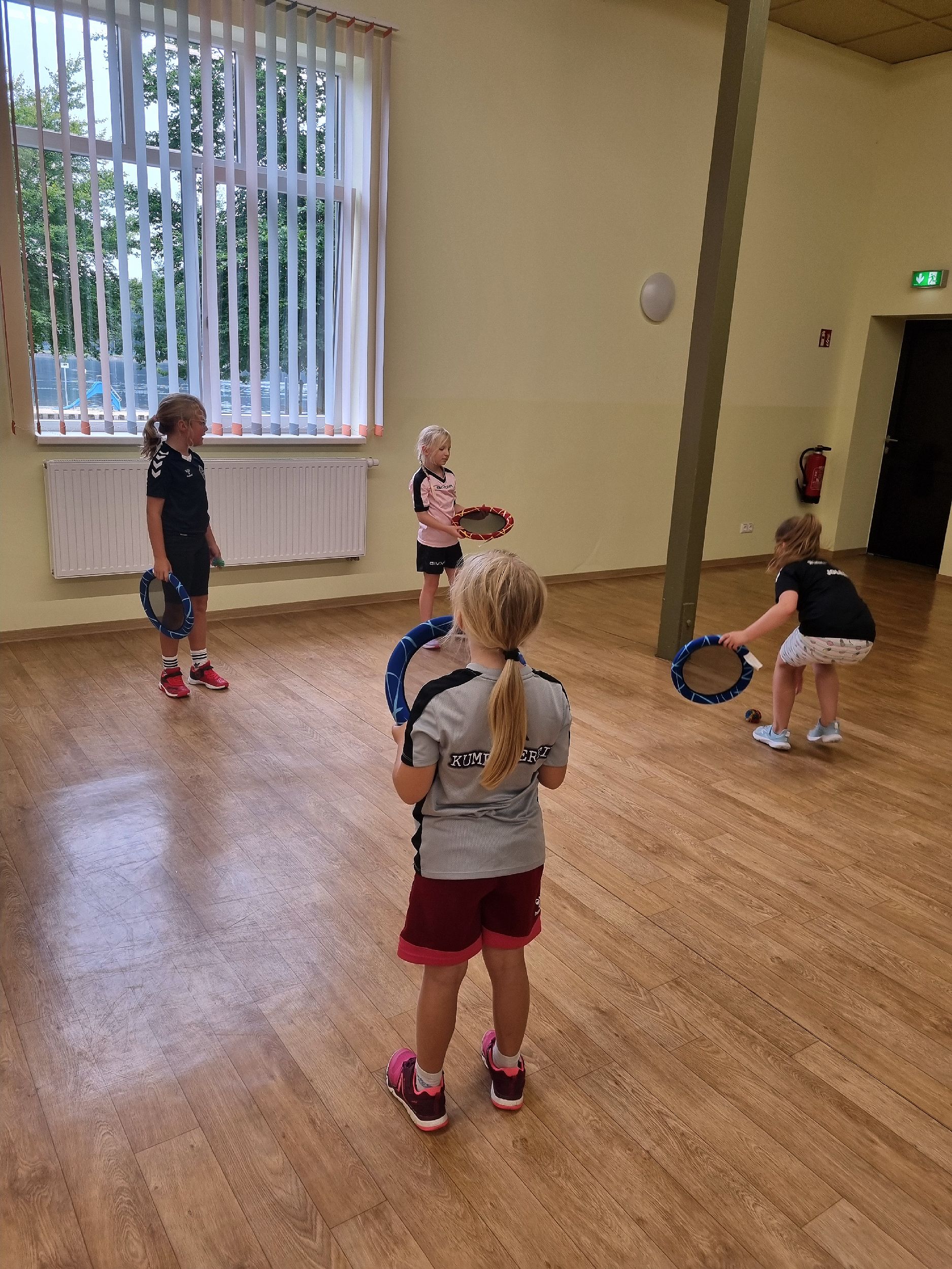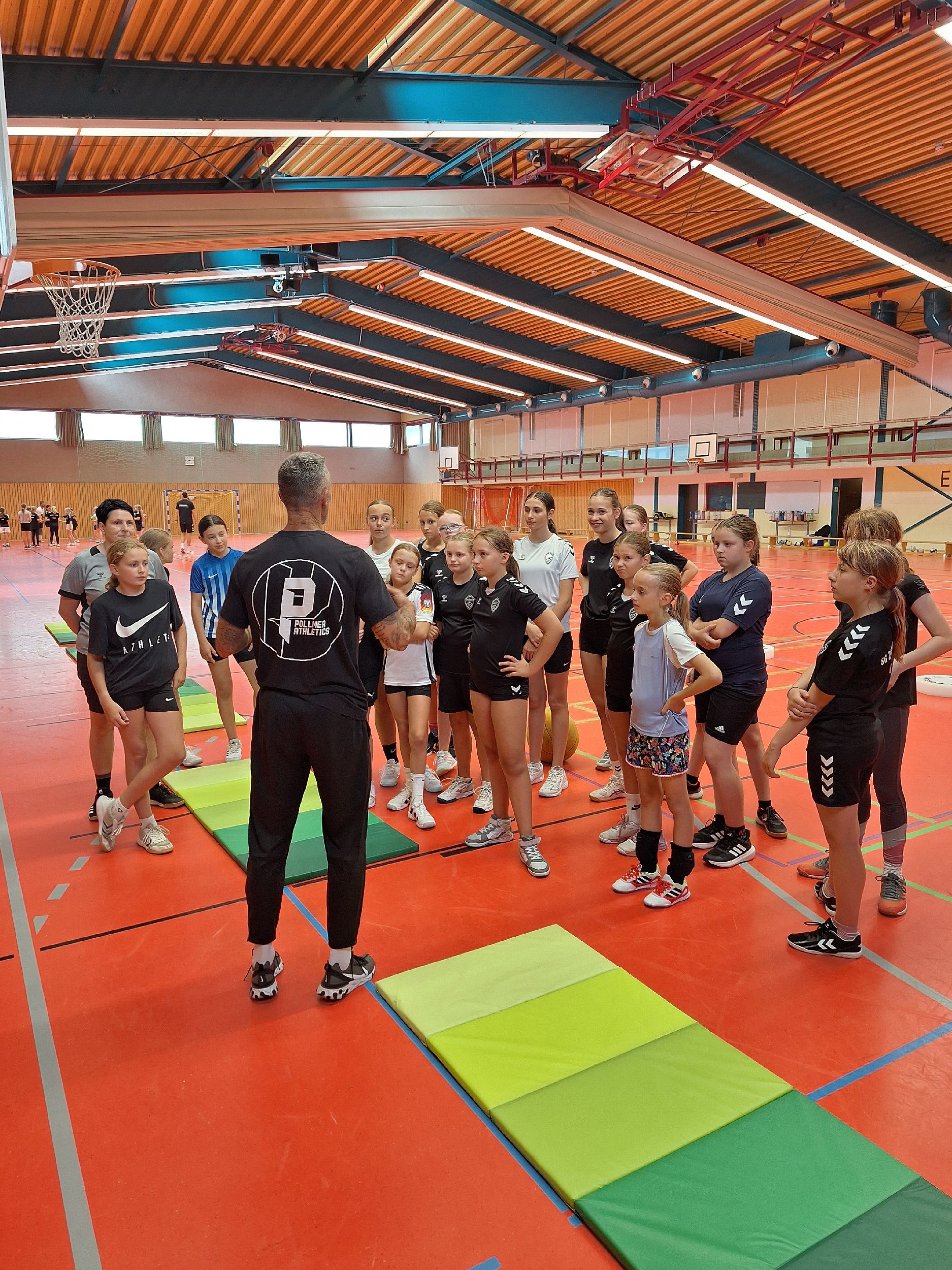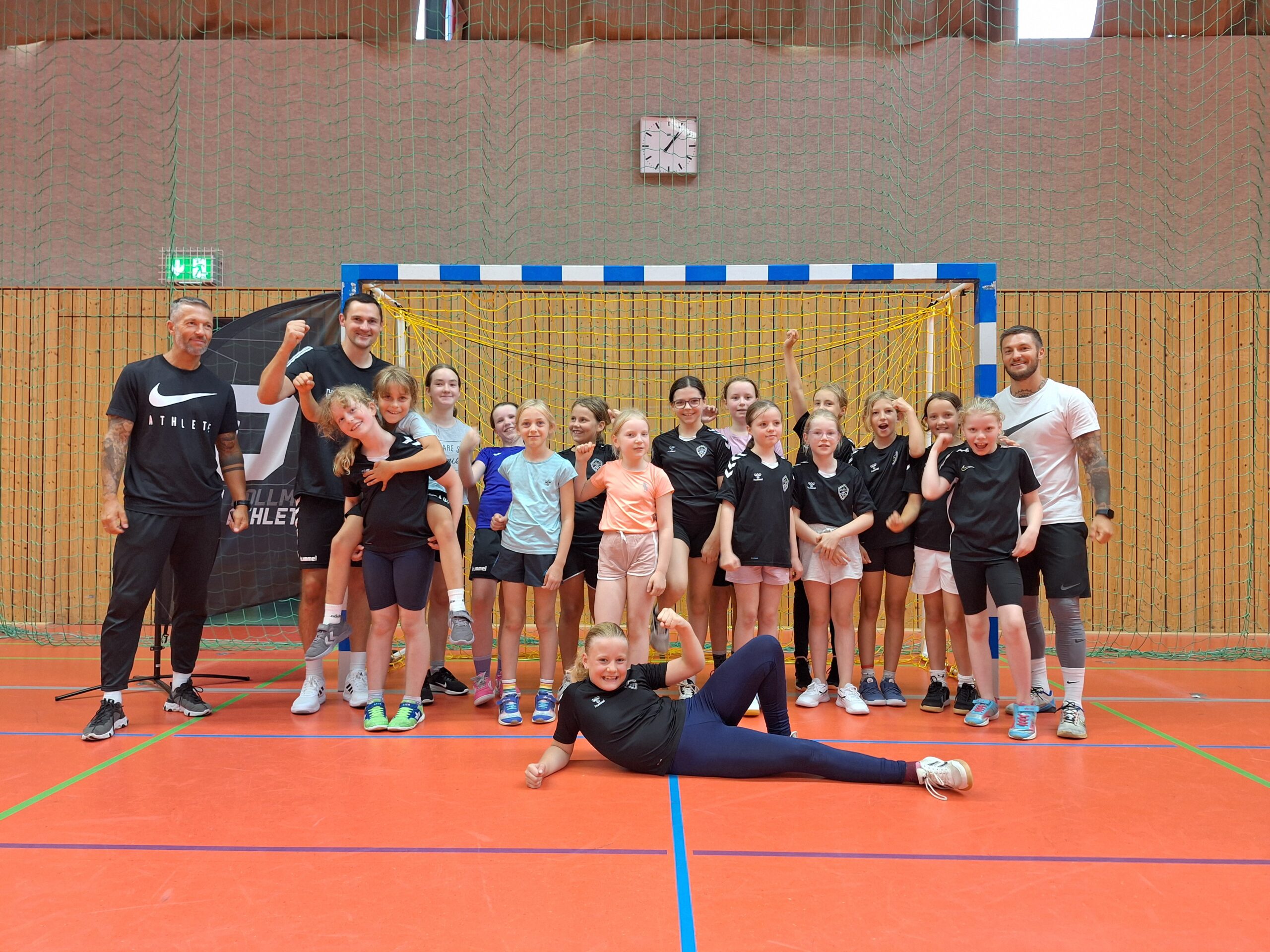 Der Samstag begann mit einer Aufwärmrunde und einem abwechslungsreichen Handballtraining: Zuspiele mit Soft- und Handbällen und Koordinationseinheiten wie Seilspringen. Unterschiedliche Stationen und kleine Spielformen sorgten dafür, dass alle voller Begeisterung dabei waren.