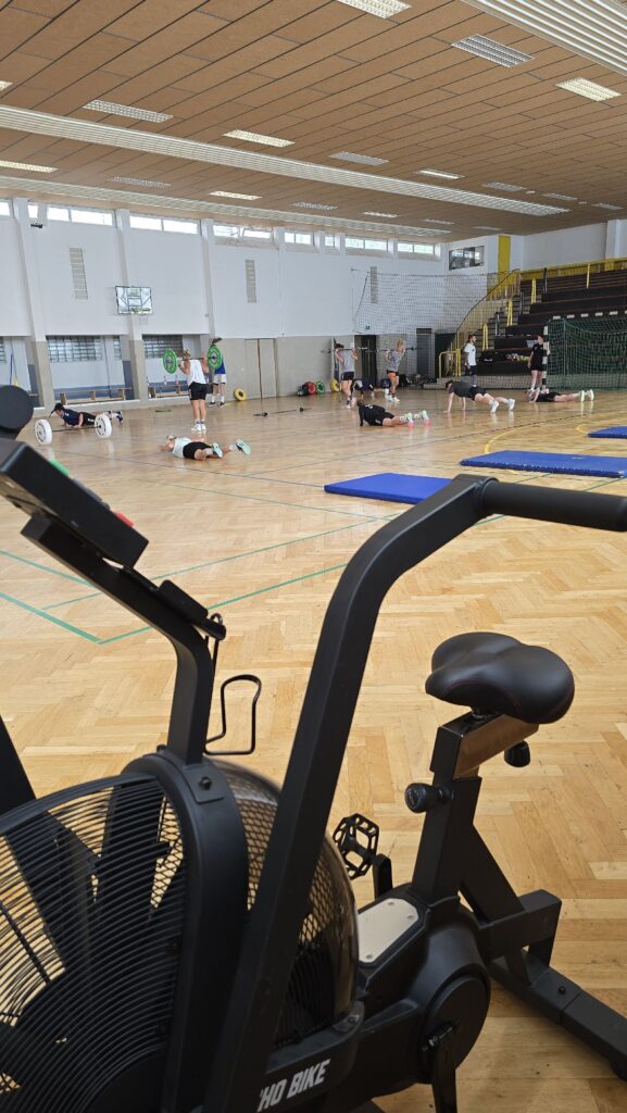 Der Samstag begann für die Frauen mit einer herausfordernden Crossfit-Einheit mit Pollmer Athletics. Unter fachkundiger Anleitung ging es an die Kondition und Kraft: Ob mit Kettlebells, Medizinbällen oder beim Team-Workout, unsere Damen zeigten, was in ihnen steckt. Dieses schweißtreibende Training legte den Grundstein für die körperliche Fitness. Danach folgte eine Halleneinheit, in der sowohl Spielzüge als auch Abwehrarbeit trainiert wurden. Trotz aller Anstrengung kam der Spaß nicht zu kurz, so klang der Samstagabend gemeinsam mit allen Teams am Kiez bei einem Grillabend aus. Unsere Frauen agierten hier nicht nur als Team unter sich, sondern auch als Teil der großen Vereinsgemeinschaft, was schön anzusehen war.