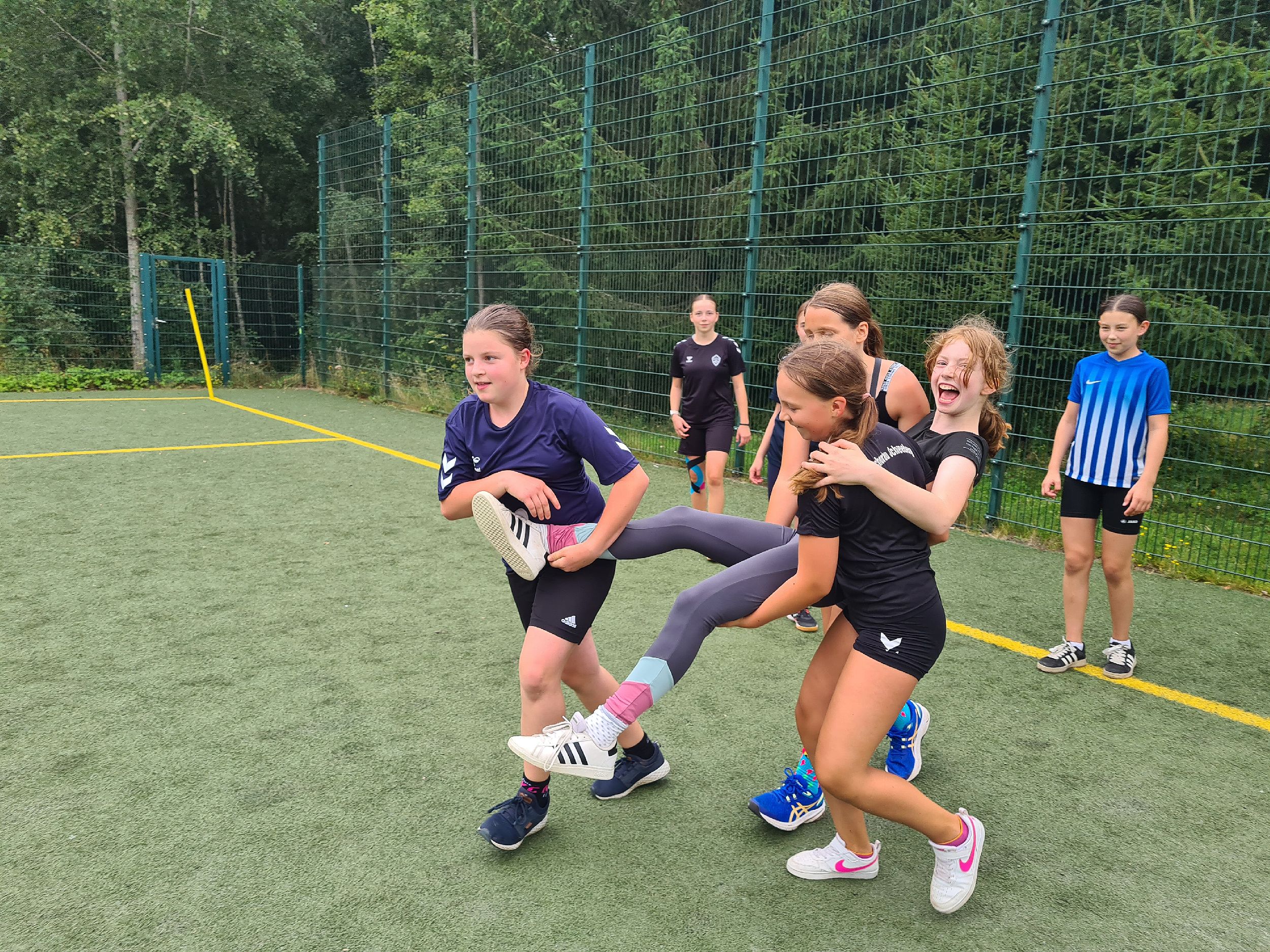 Für die neu formierte B-Jugend startete das Trainingslager bereits am Freitag mit viel Tempo. Gleich zwei intensive Einheiten absolvierten die Jugendlichen an diesem Tag. Dabei kam es auch zu einem besonderen Härtetest: In einem Trainingsspiel gegen unsere Frauenmannschaft durfte sich die B-Jugend messen. Gespielt wurden 3 x 20 Minuten und auch wenn das erfahrene Damenteam in allen drei Durchgängen vorne lag, war es für unsere Mädels wieder einmal ein Mehrwert gegen körperlich überlegene Gegnerinnen zu spielen. Sie zeigten tolle Aktionen, hielten phasenweise sehr gut mit und konnten von der Routine der Frauen viel lernen.