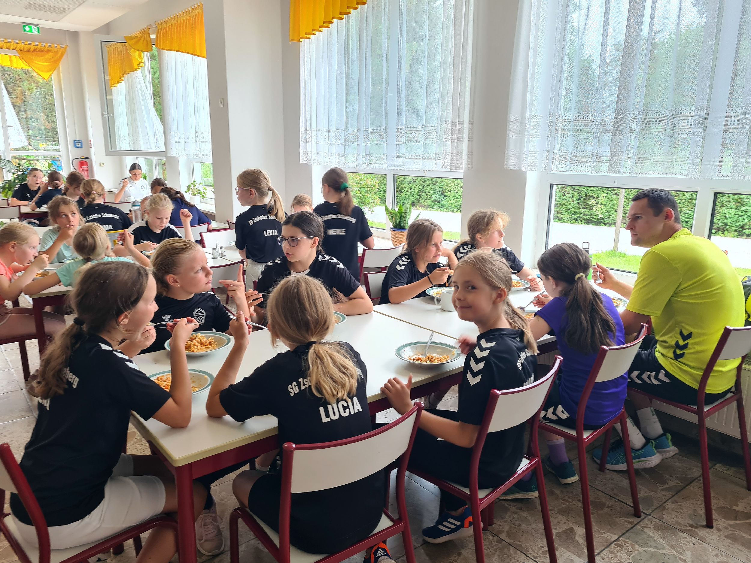 Zum Abschluss des Tages genossen alle ein wohlverdientes Grillen im KiEZ. Mit vollen Tellern, zufriedenen Gesichtern und jeder Menge Geschichten im Gepäck wurden die Kinder von ihren Eltern abgeholt – glücklich, müde und mit noch mehr Lust auf Handball.
