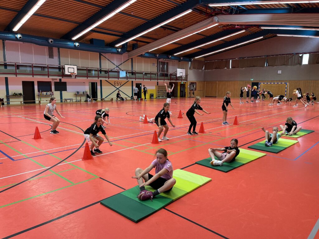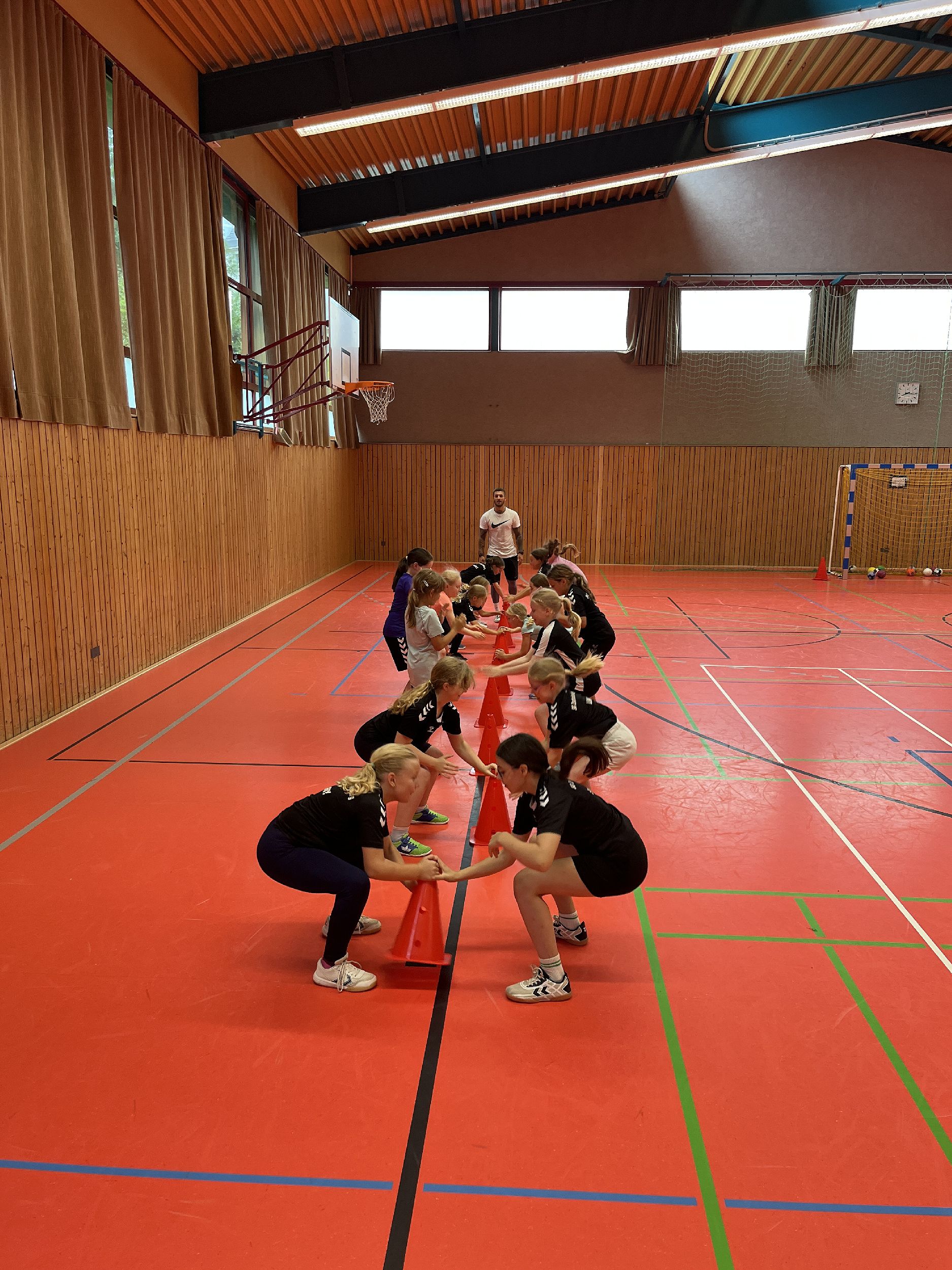 Für die E-Jugend ging es ebenfalls hochmotiviert ans Werk. In ihren Trainingseinheiten lag der Fokus zunächst auf der Athletik: Mit Laufübungen, kleinen Kraftparcours und vielen Bewegungsspielen machten sich die Mädchen fit. Anschließend widmeten sie sich den handballerischen Grundlagen. Passen, Prellen, Werfen – diese Basics wurden mit viel Eifer und in abwechslungsreichen Übungsformen trainiert.
