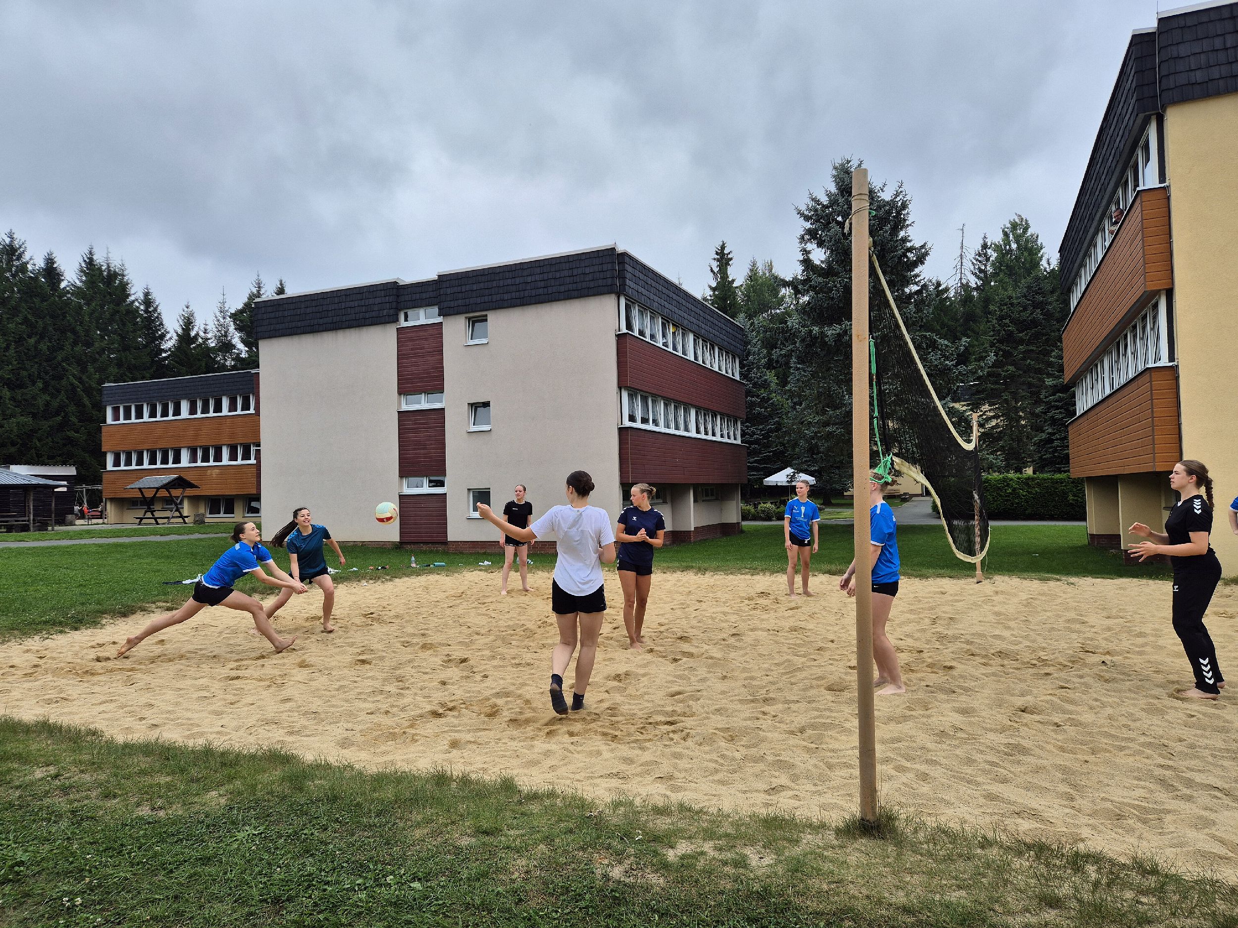 Auch unsere Frauenmannschaft nutzte das Trainingslager intensiv, um sich den Feinschliff für die bevorstehende Saison zu holen – und um als Vorbilder für die Jugend zu wirken. Am Freitagabend stand für die Damen zuerst das Testspiel gegen die B-Jugend auf dem Programm. Es war nicht nur eine Trainingseinheit, sondern auch eine schöne Geste des Miteinanders: Jung gegen Alt, Erfahrung gegen Talent – beide Seiten hatten viel Spaß und der gegenseitige Respekt war deutlich zu spüren.