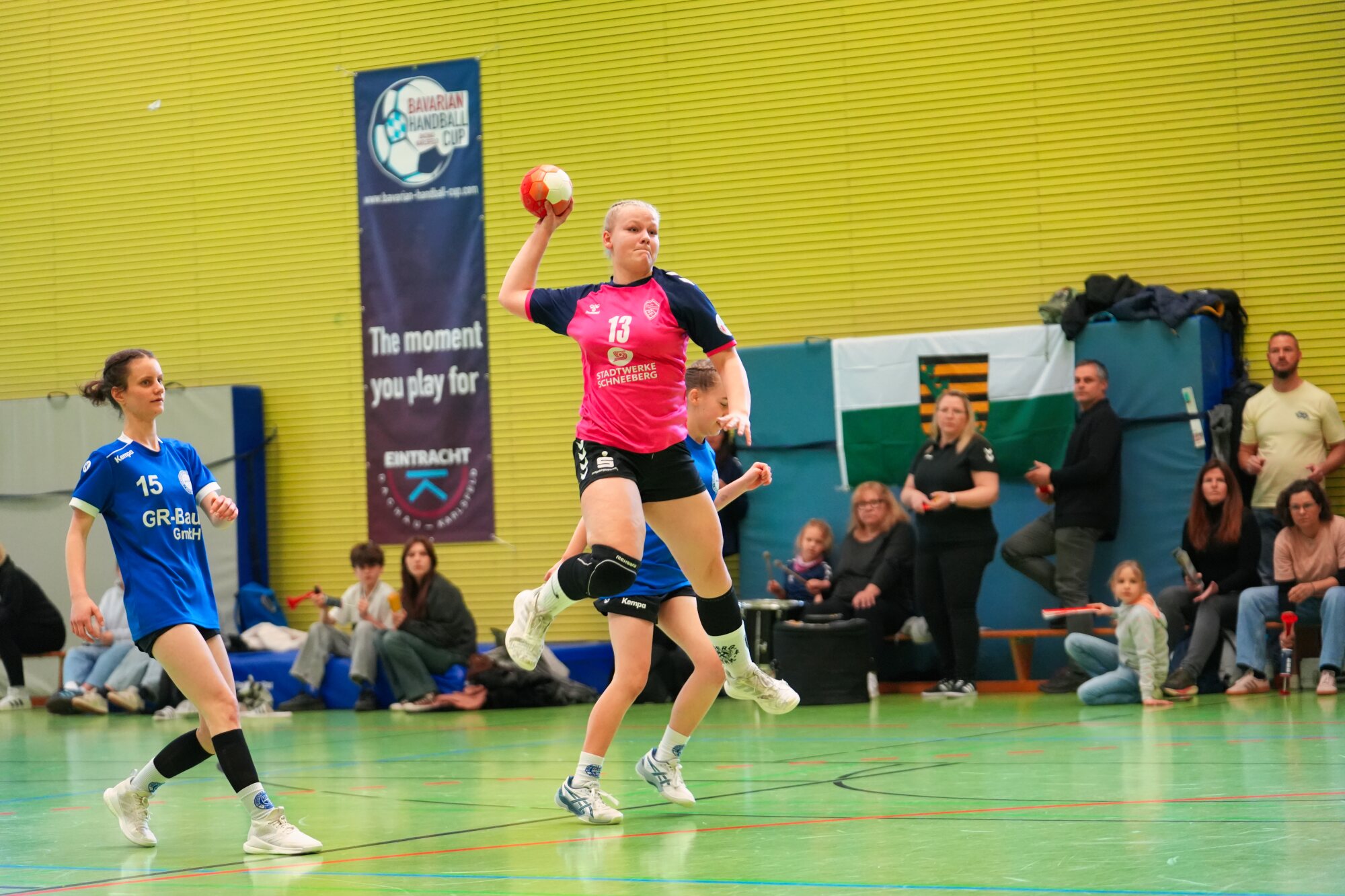 Von Karfreitag bis Ostermontag war unsere SG Zschorlau/Schneeberg mit der D-Jugend in der Altersklasse G13 und der B-Jugend in der G17 in Dachau-Karlsfeld zu Gast, um am Bavarian Handball Cup 2026 teilzunehmen. Schon im Vorfeld war die Vorfreude groß, denn schnell war klar, dass uns über Ostern nicht nur sportlich, sondern auch als große SG-Gemeinschaft ein ganz besonderes Wochenende erwarten würde.