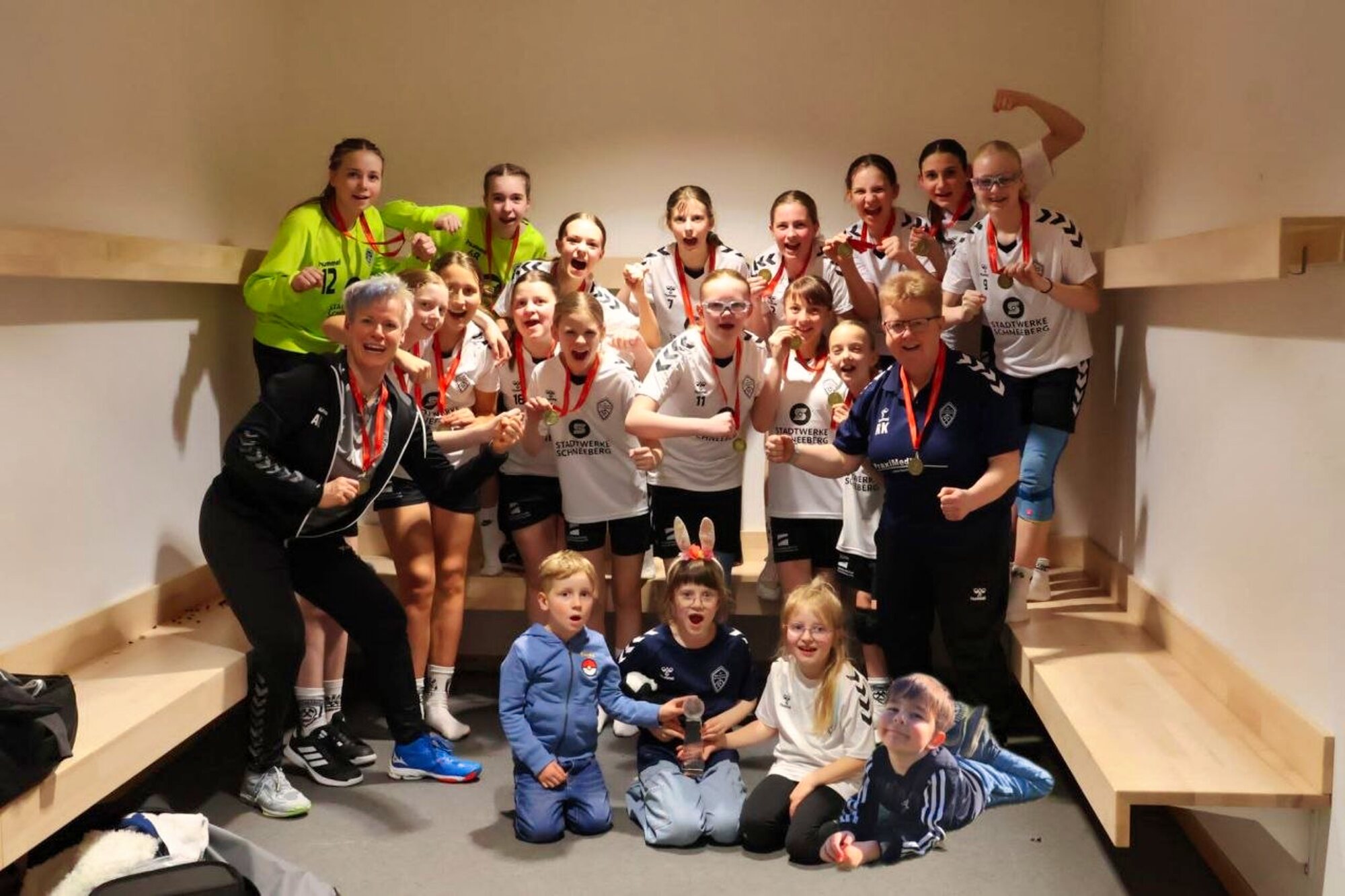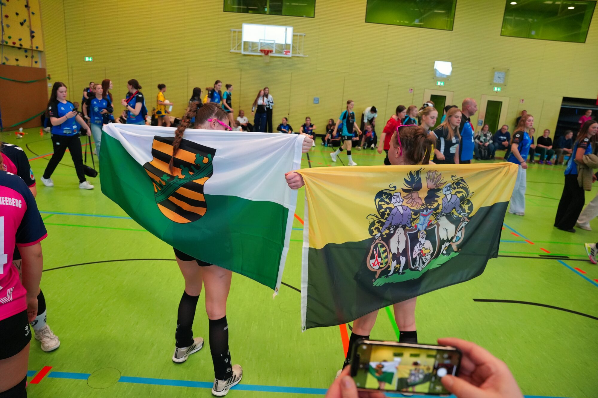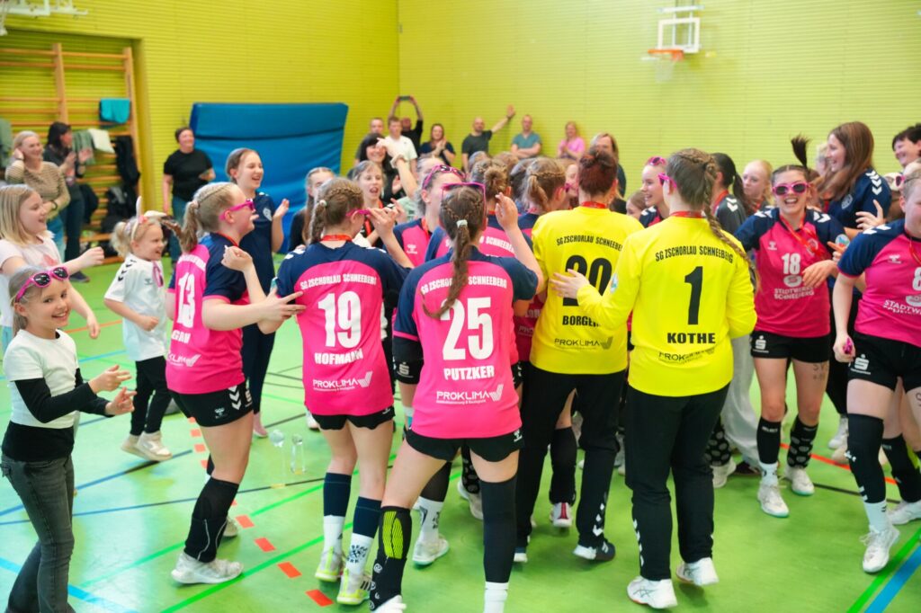 Nach dem Finalsieg und der Siegerehrung wurde noch gemeinsam mit allen Eltern und beiden Mannschaften, also unserer D- und B-Jugend, gefeiert. Die Eltern stimmten gemeinsam das Steigerlied an. Dazu wurden unsere sächsische Fahne und die Fahne unserer Bergstadt Schneeberg, geschwenkt. Es wurde getanzt, gefeiert und ausgiebig gelacht. Dieser Moment war weit mehr als nur ein schöner Turnierabschluss. Er war Ausdruck dessen, was unsere SG ausmacht: Heimatverbundenheit, Zusammenhalt, Stolz und echte Gemeinschaft.