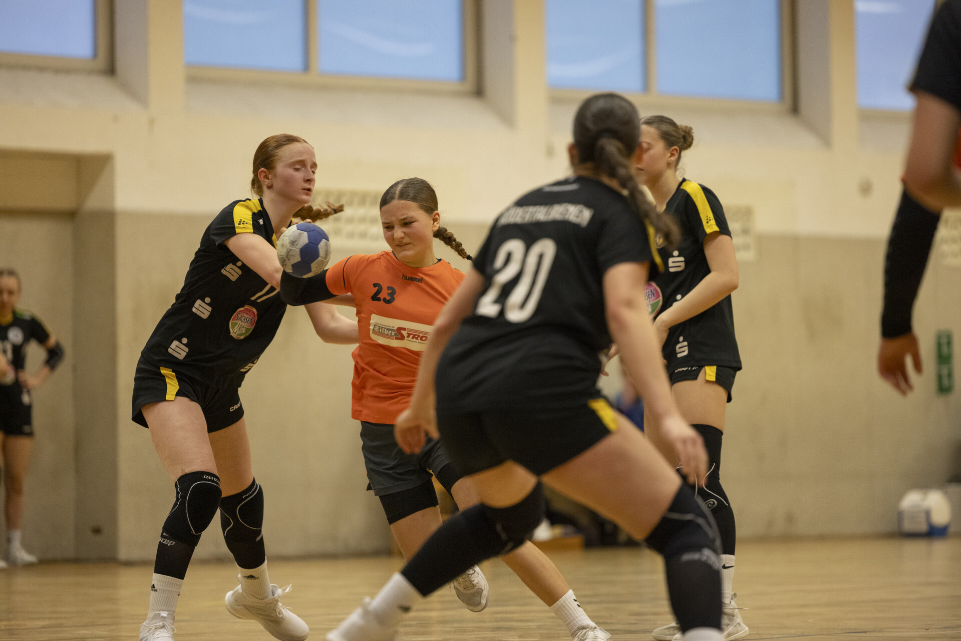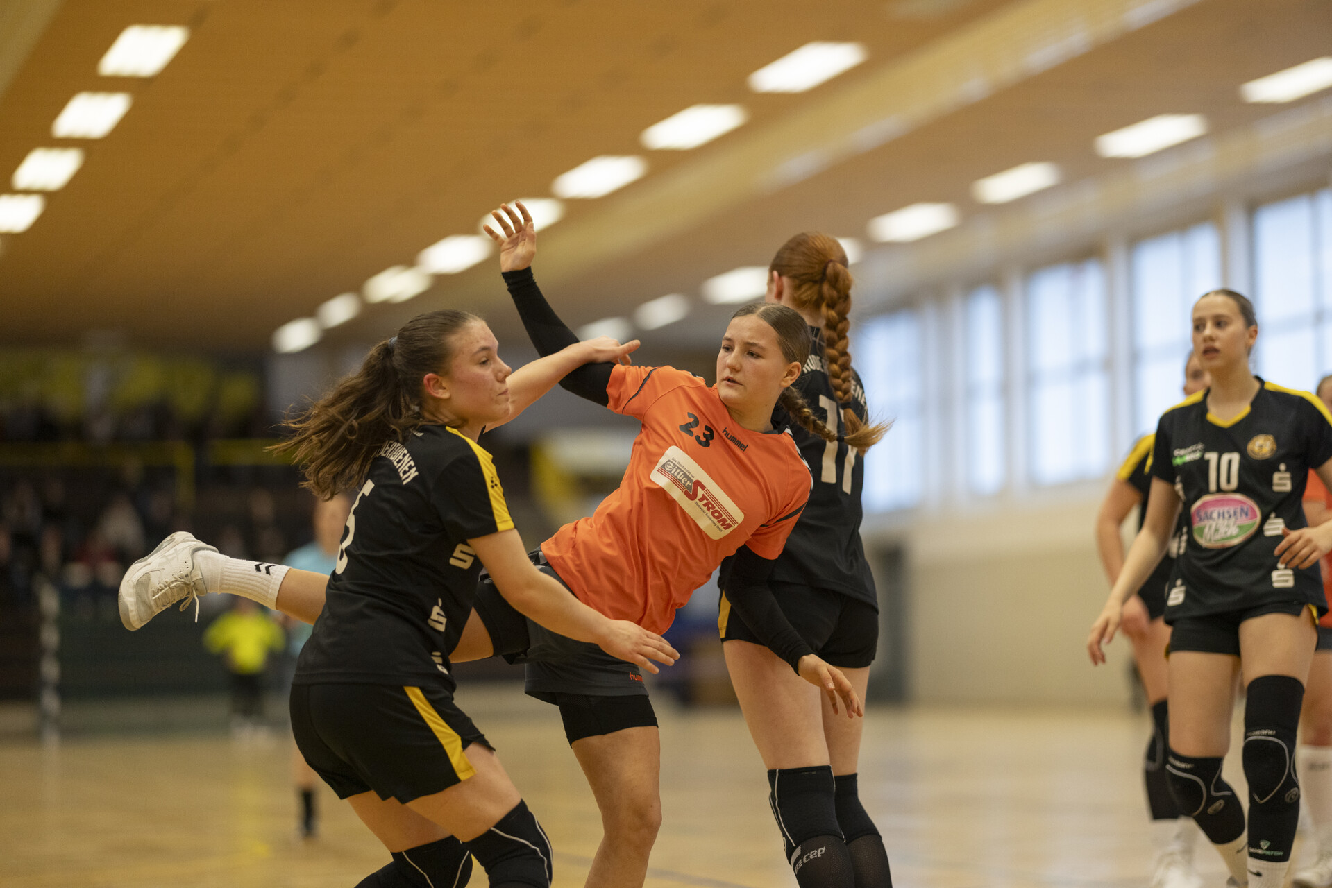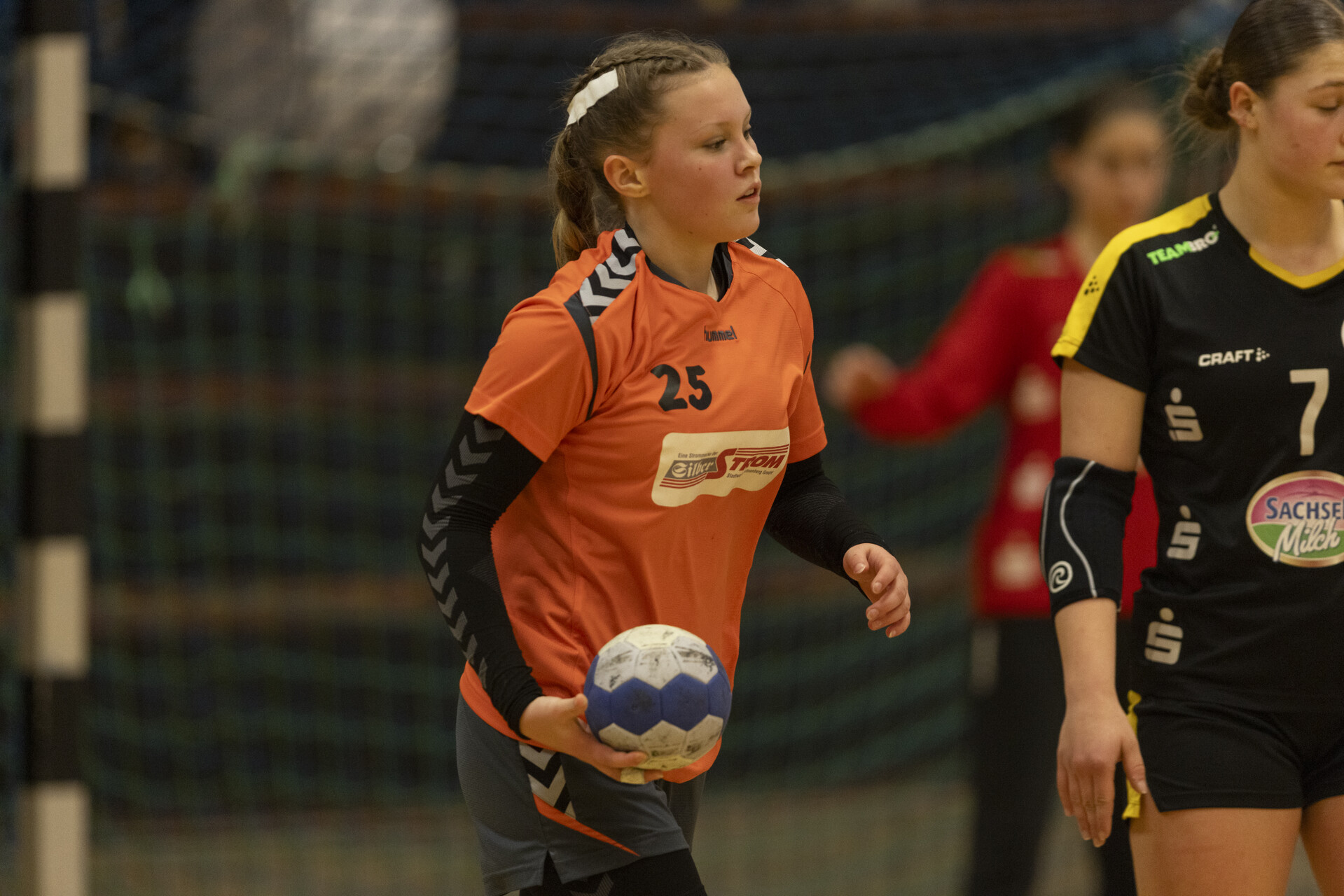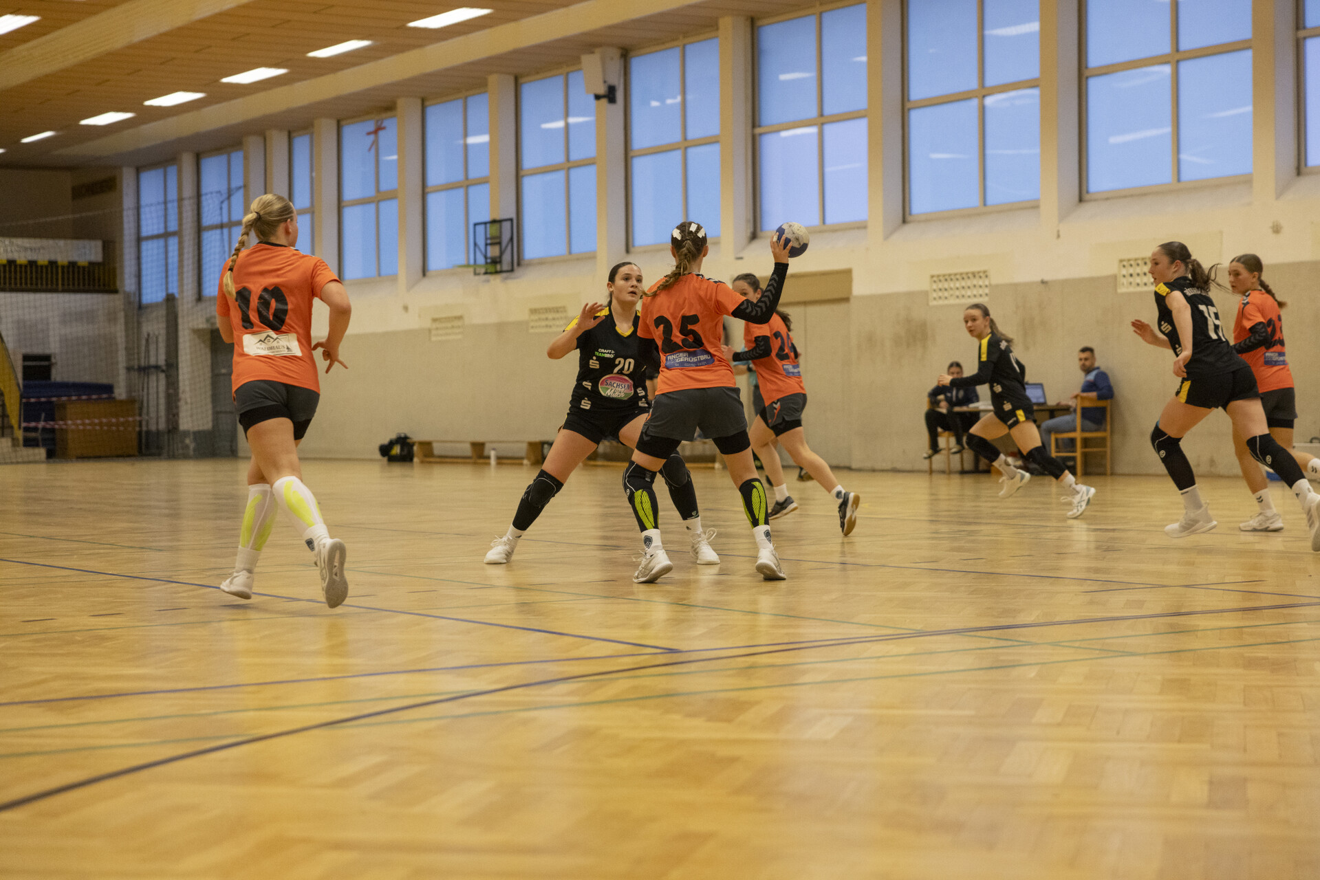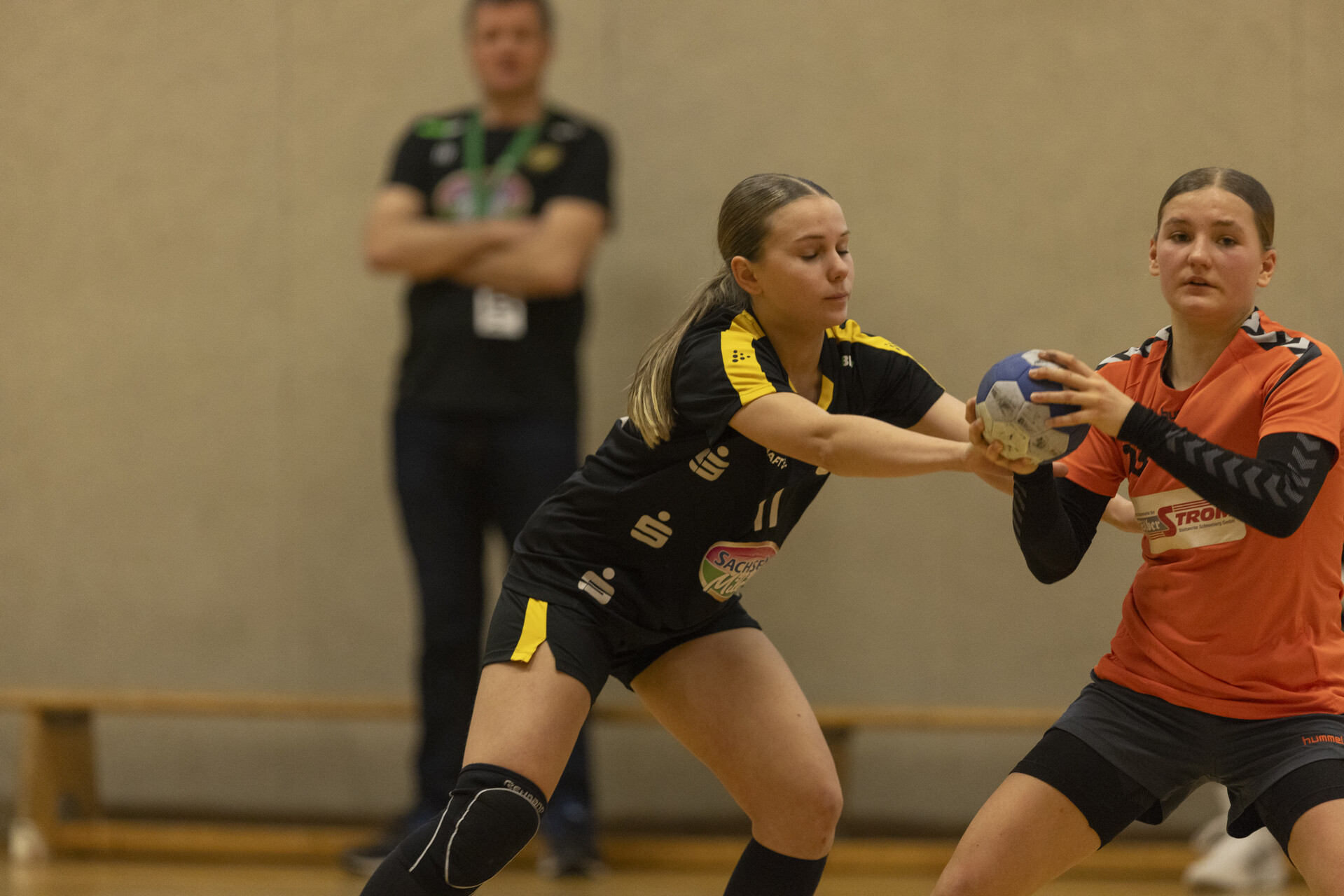 Die 1. Halbzeit begann leider nicht ganz optimal, Rödertal wollte direkt klare Verhältnisse schaffen und zog mit 0:3 davon. Wir verzweifelten anfangs an der gegnerischen Abwehr und fanden erst in der 6. Minute durch einen 7-Meter das Tor. Auch in den darauffolgenden Minuten sah dies nicht besser aus, die durchweg älteren Rödertalbienen waren eine oder zwei Nummern zu groß für unseren jungen Jahrgang. So konnten wir von der 8. Minute (Stand 2:5) bis zur 22. Minute kein Tor erzielen (Stand 3:15). Die restlichen drei Minuten brachten einen verdienten Rückstand – Halbzeit 5:18.