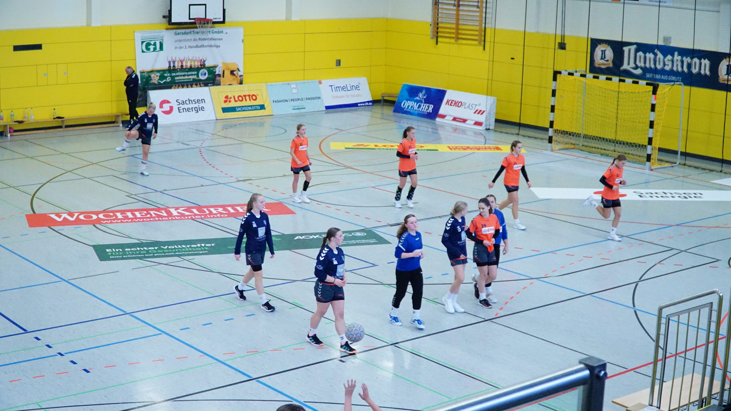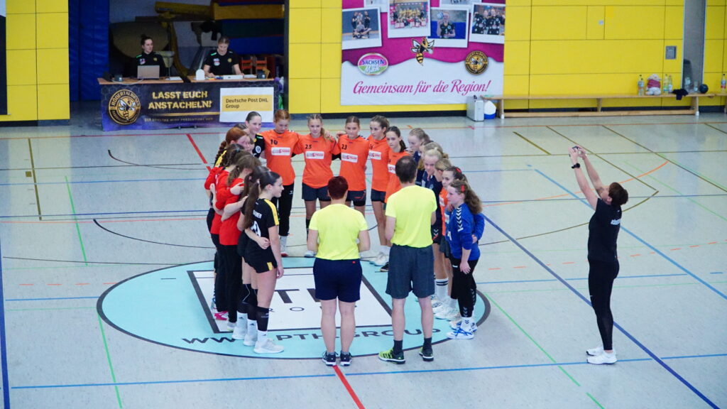 Die Aufregung war doch recht groß, die Rödertalbienen sind neben dem VfB Bischofswerda ein Staffelfavorit. Da man gegen den VfB jedoch gewohnt stark gespielt und nur knapp verloren hatte, waren die Hoffnungen groß, gegen die Rödertalbienen eine Überraschung zu generieren. Dies gelang auch bis zur 5. Minute, wir starteten recht souverän gegen die offensive Deckung und legten direkt mit 0:2 vor. Bis zur genannten 5. Minute konnte man noch den Ausgleich bei 4:4 halten. Danach ging es jedoch stetig bergab, der Angriff war teilweise ideenlos, die geforderte Bewegung und Dynamik kam nie auf und unser Rückzugverhalten war nicht mehr vorhanden. Vorher hat man – im Videostudium – den Weg über Außen oder durch das hinterlaufen der Abwehr angesprochen, doch nichts davon konnte umgesetzt werden. So entwickelte sich bis zur Halbzeit ein klarer Rückstand von 18 zu 9.