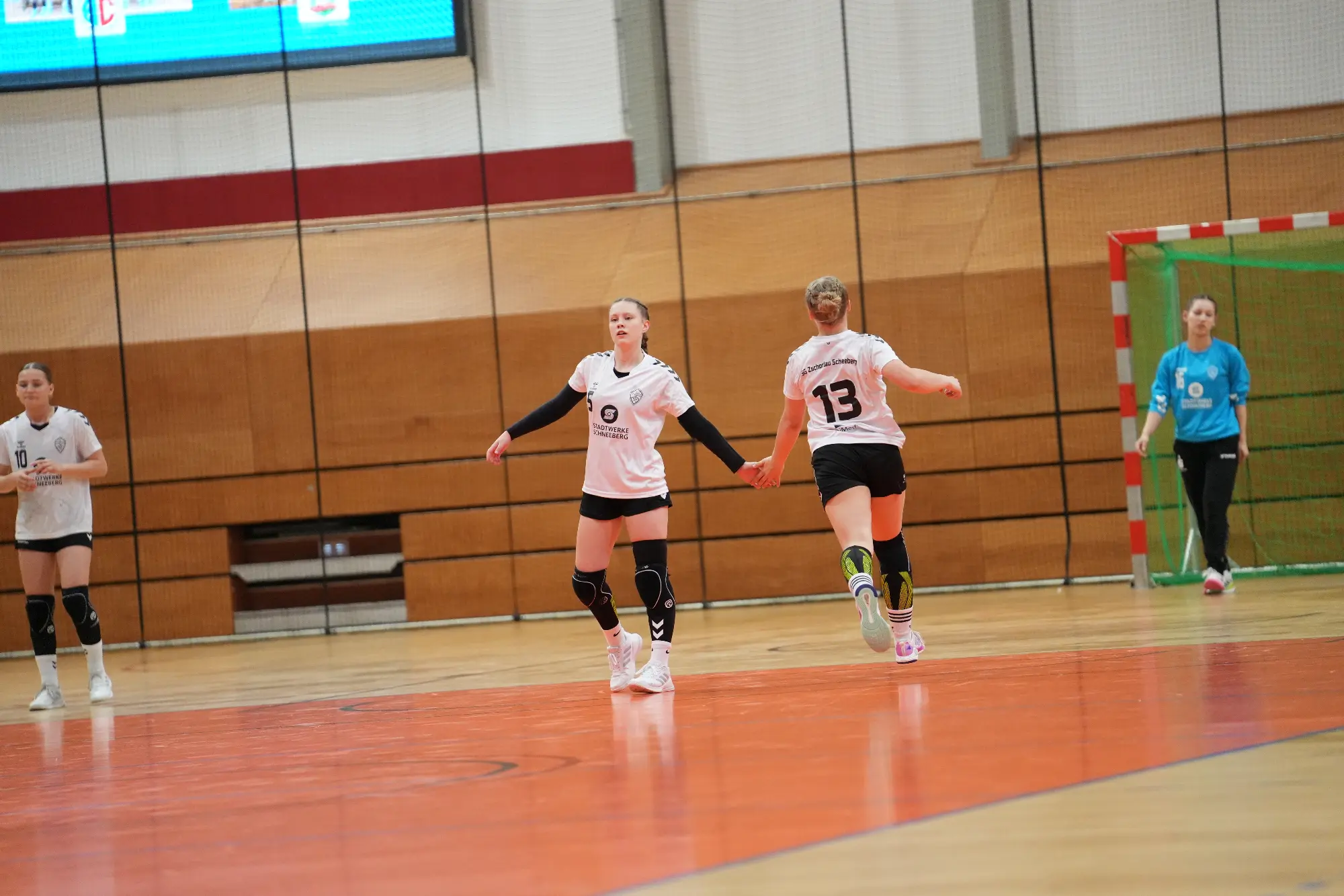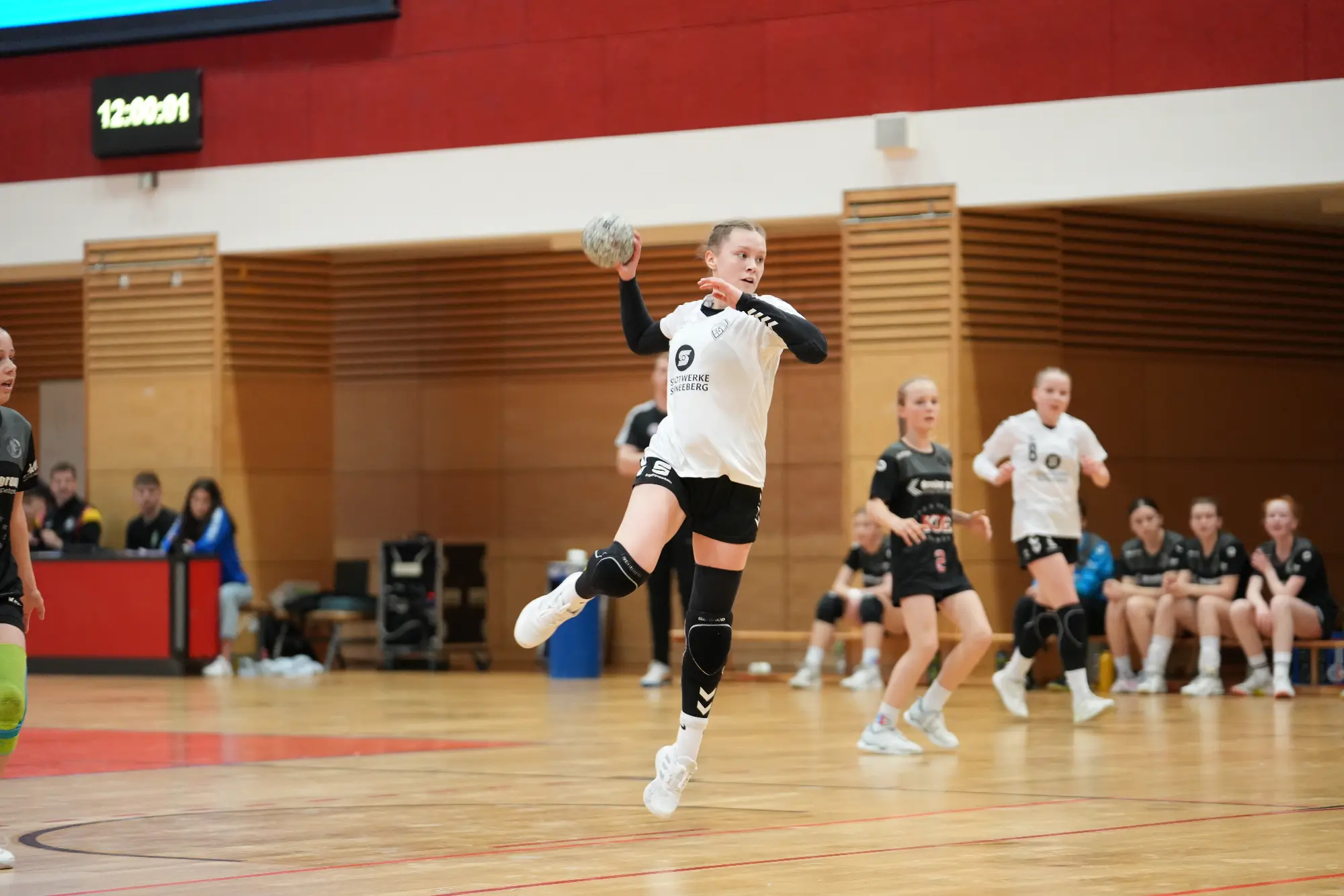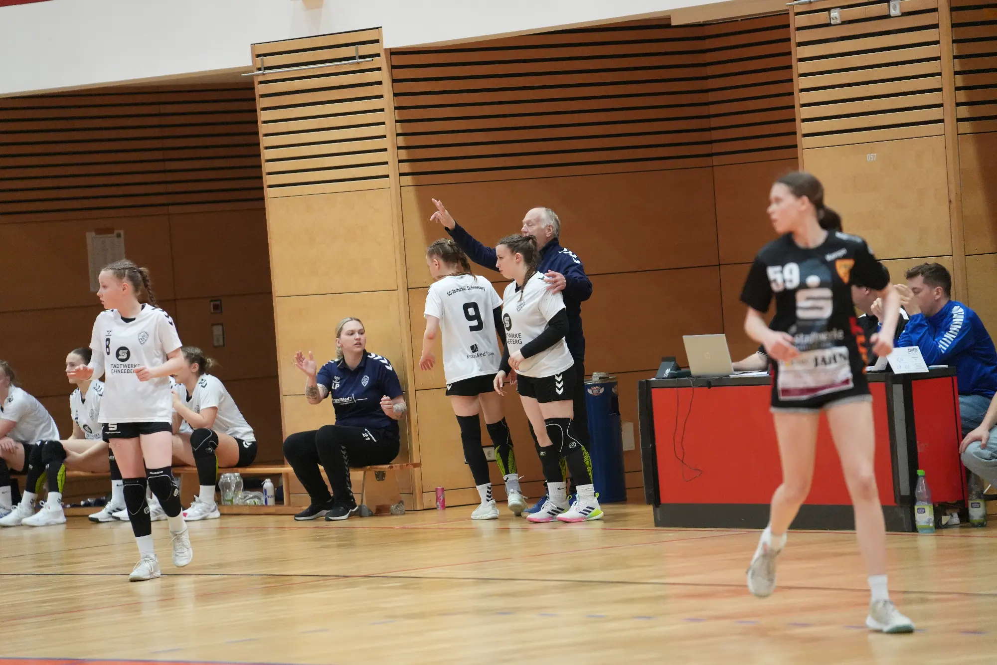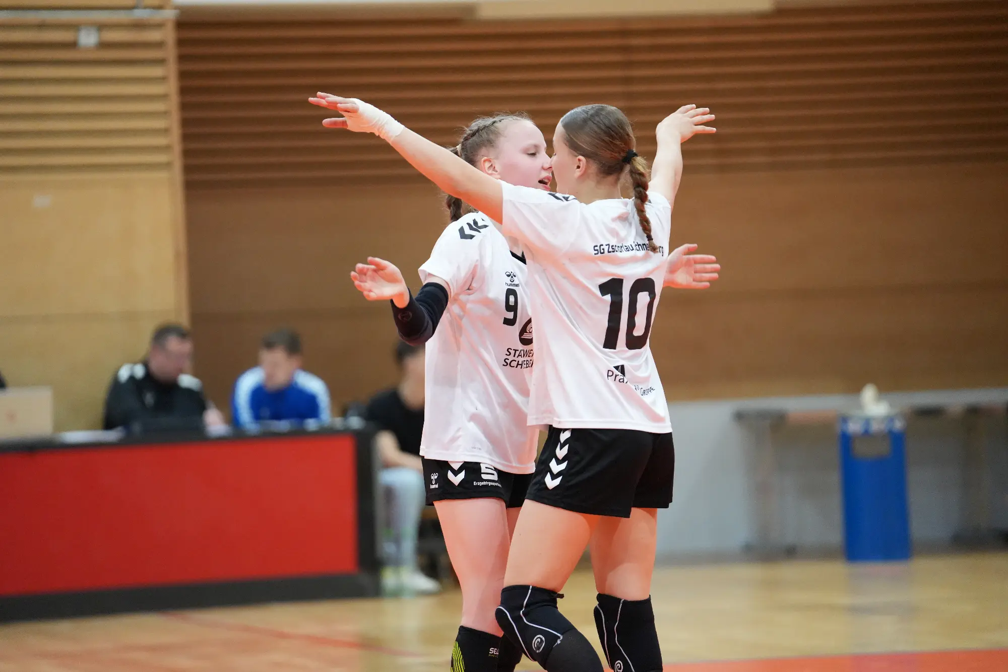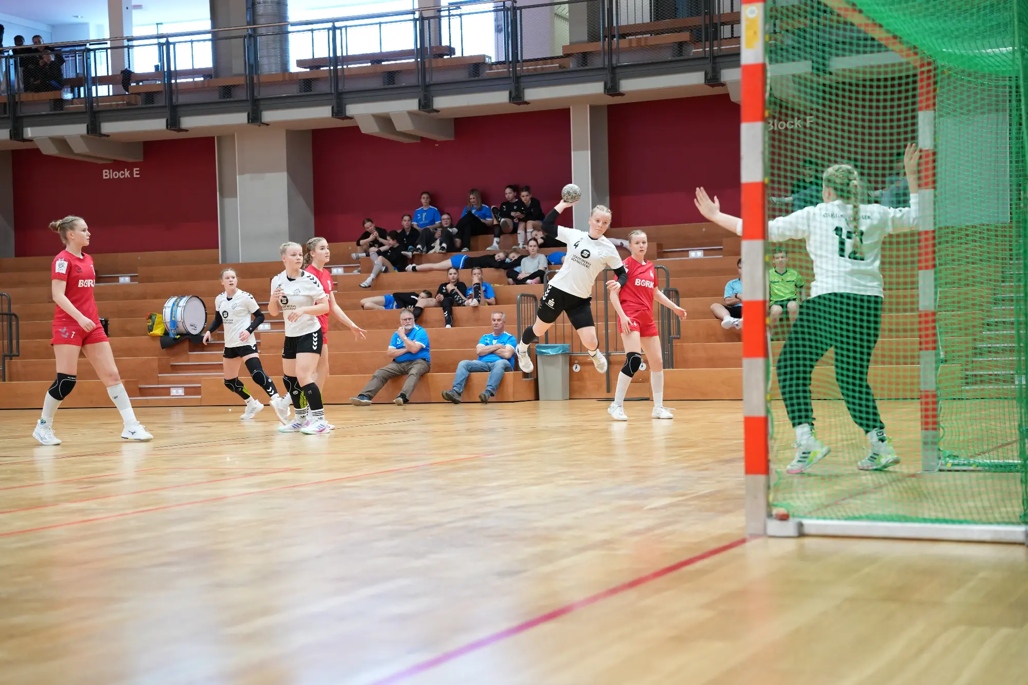 Ausgeruht und neu fokussiert startete unser Team am Mittwochmorgen ins dritte Vorrundenspiel gegen den HC Erlangen. Was folgte, war ein Handball-Krimi auf Augenhöhe. Keine der beiden Mannschaften konnte sich im Verlauf der 25 Minuten entscheidend absetzen. Tore und Führungen wechselten im Minutentakt. In der Schlussphase stand die Halle Kopf: Beim Stand von 14:13 für unser Team warfen die Erlangerinnen noch einmal alles nach vorn. Doch dank einer kämpferischen Abwehrleistung und einer herausragenden Lara Haase im Tor, retteten unsere Mädels den knappen 14:13-Sieg über die Zeit. Der Jubel nach dem Schlusspfiff war riesig – dieser hart erkämpfte Sieg hielt die Halbfinalträume am Leben und zeigte die großartige Moral der Mannschaft.
