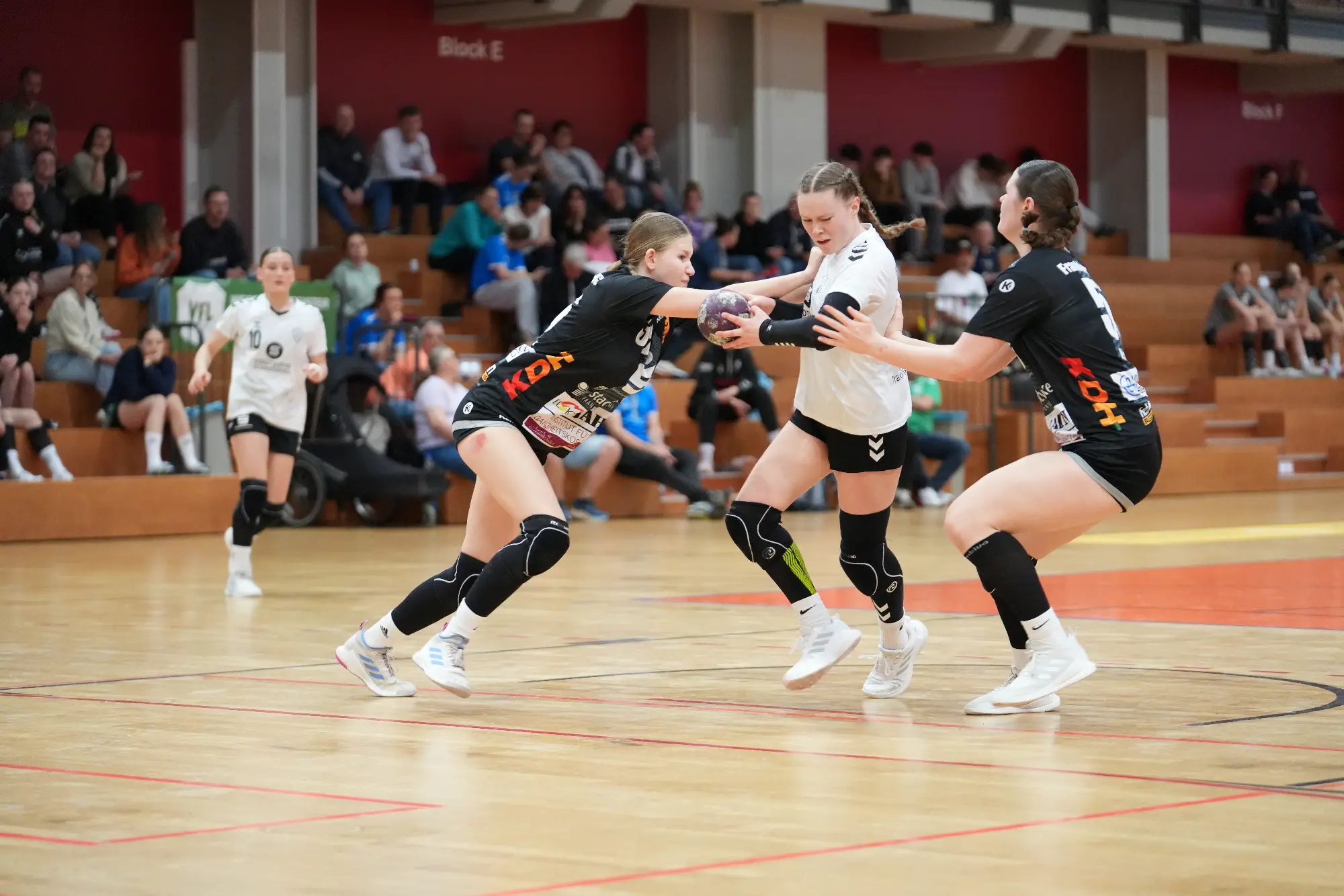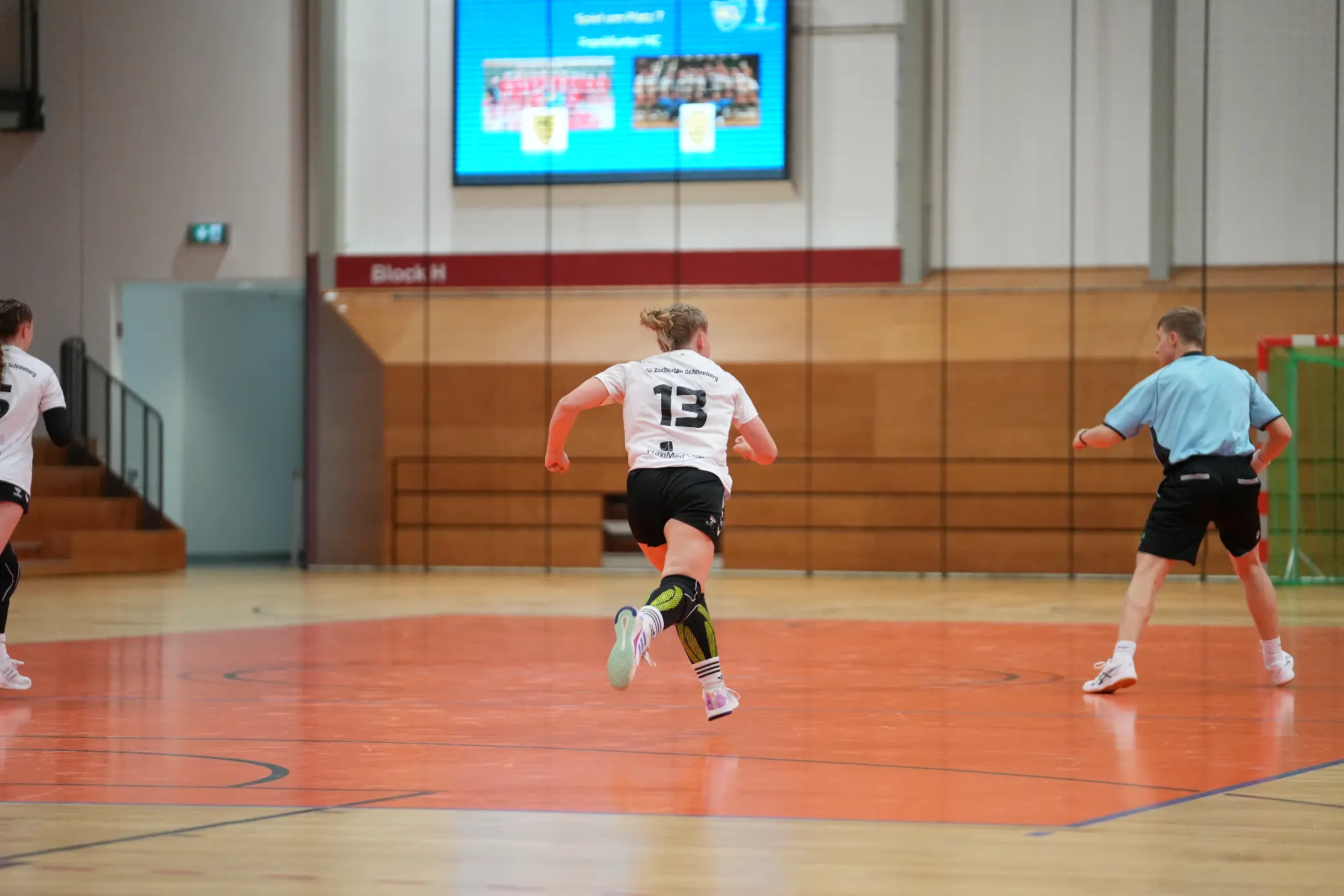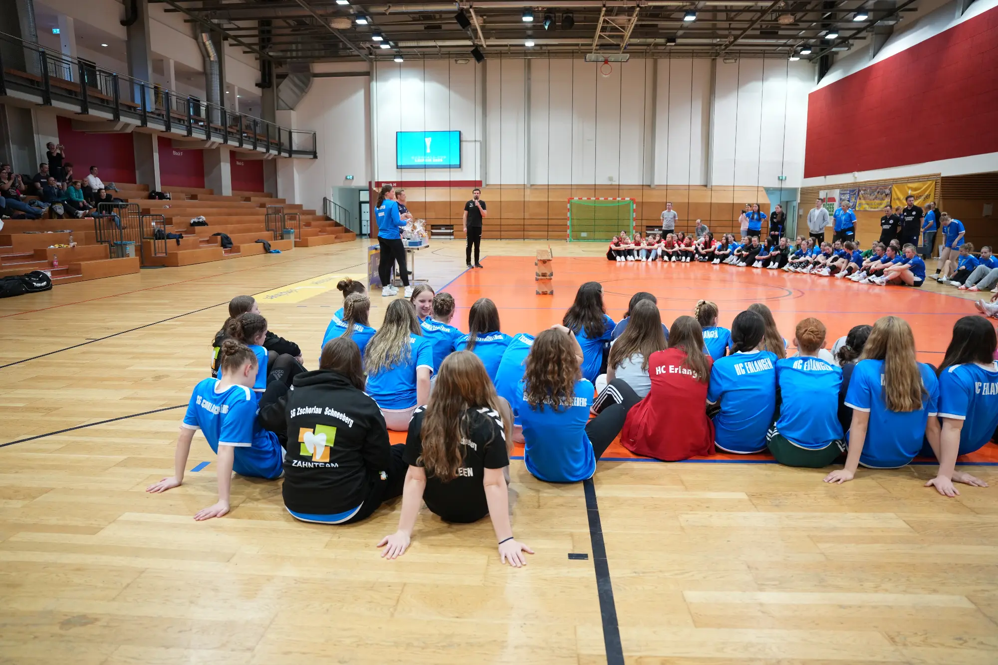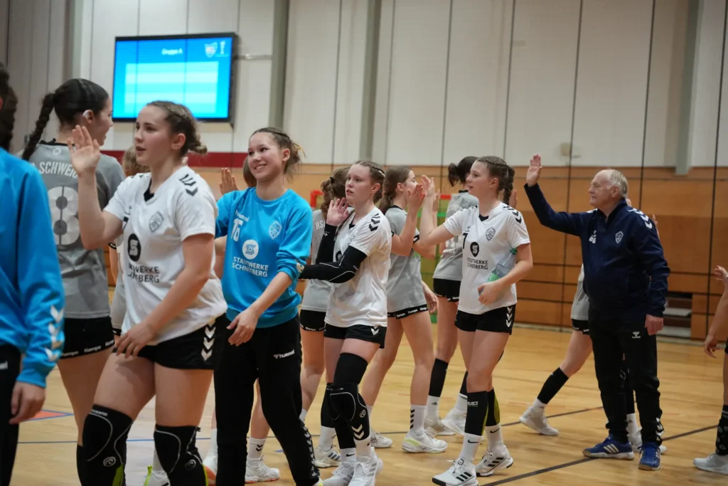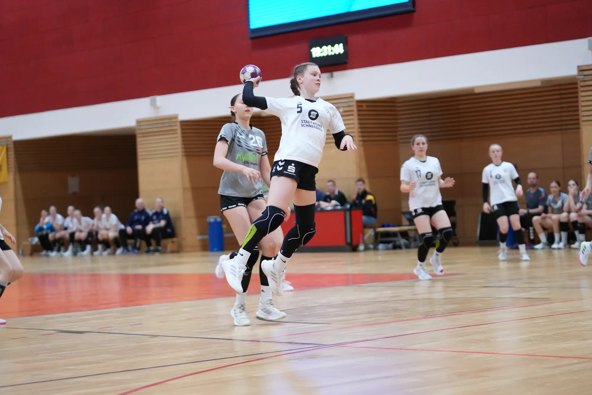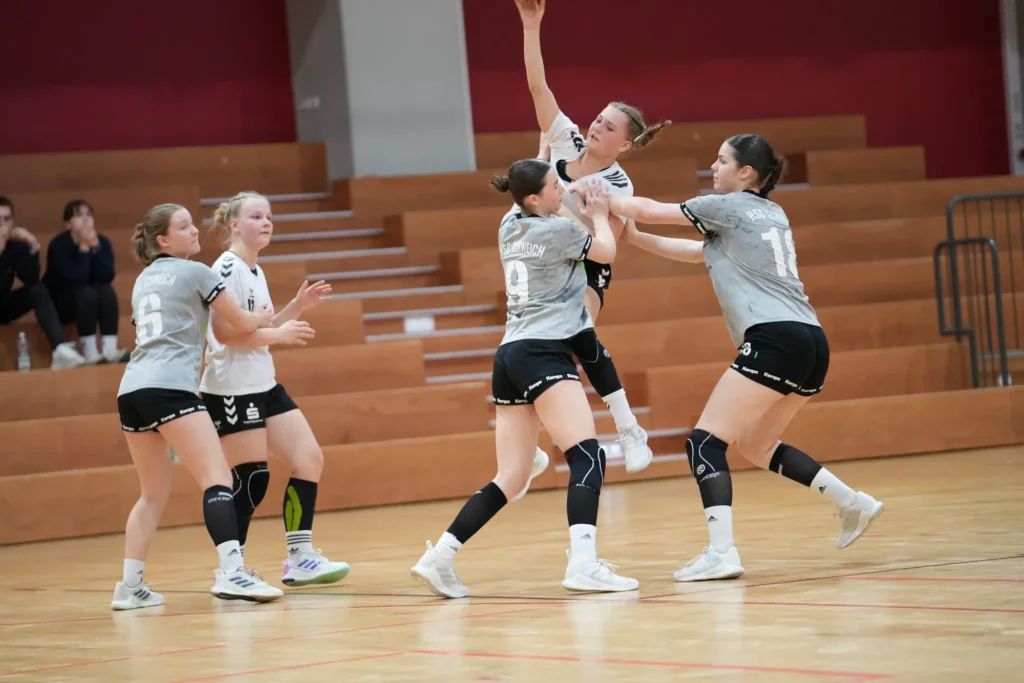Ausgeruht und neu fokussiert startete unser Team am Mittwochmorgen ins dritte Vorrundenspiel gegen den HC Erlangen. Was folgte, war ein Handball-Krimi auf Augenhöhe. Keine der beiden Mannschaften konnte sich im Verlauf der 25 Minuten entscheidend absetzen. Tore und Führungen wechselten im Minutentakt. In der Schlussphase stand die Halle Kopf: Beim Stand von 14:13 für unser Team warfen die Erlangerinnen noch einmal alles nach vorn. Doch dank einer kämpferischen Abwehrleistung und einer herausragenden Lara Haase im Tor, retteten unsere Mädels den knappen 14:13-Sieg über die Zeit. Der Jubel nach dem Schlusspfiff war riesig – dieser hart erkämpfte Sieg hielt die Halbfinalträume am Leben und zeigte die großartige Moral der Mannschaft.