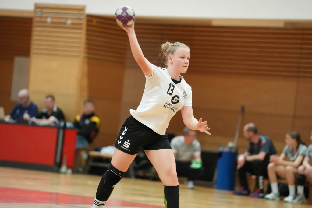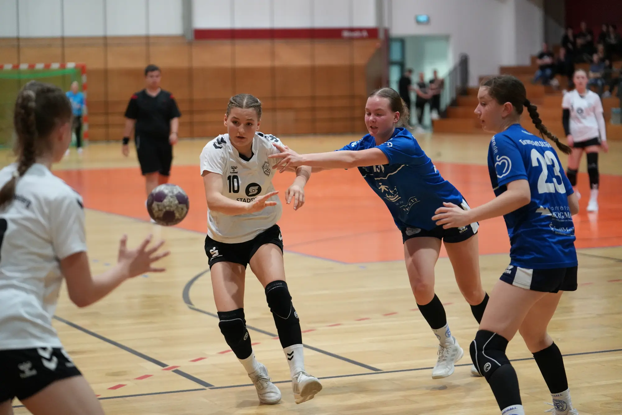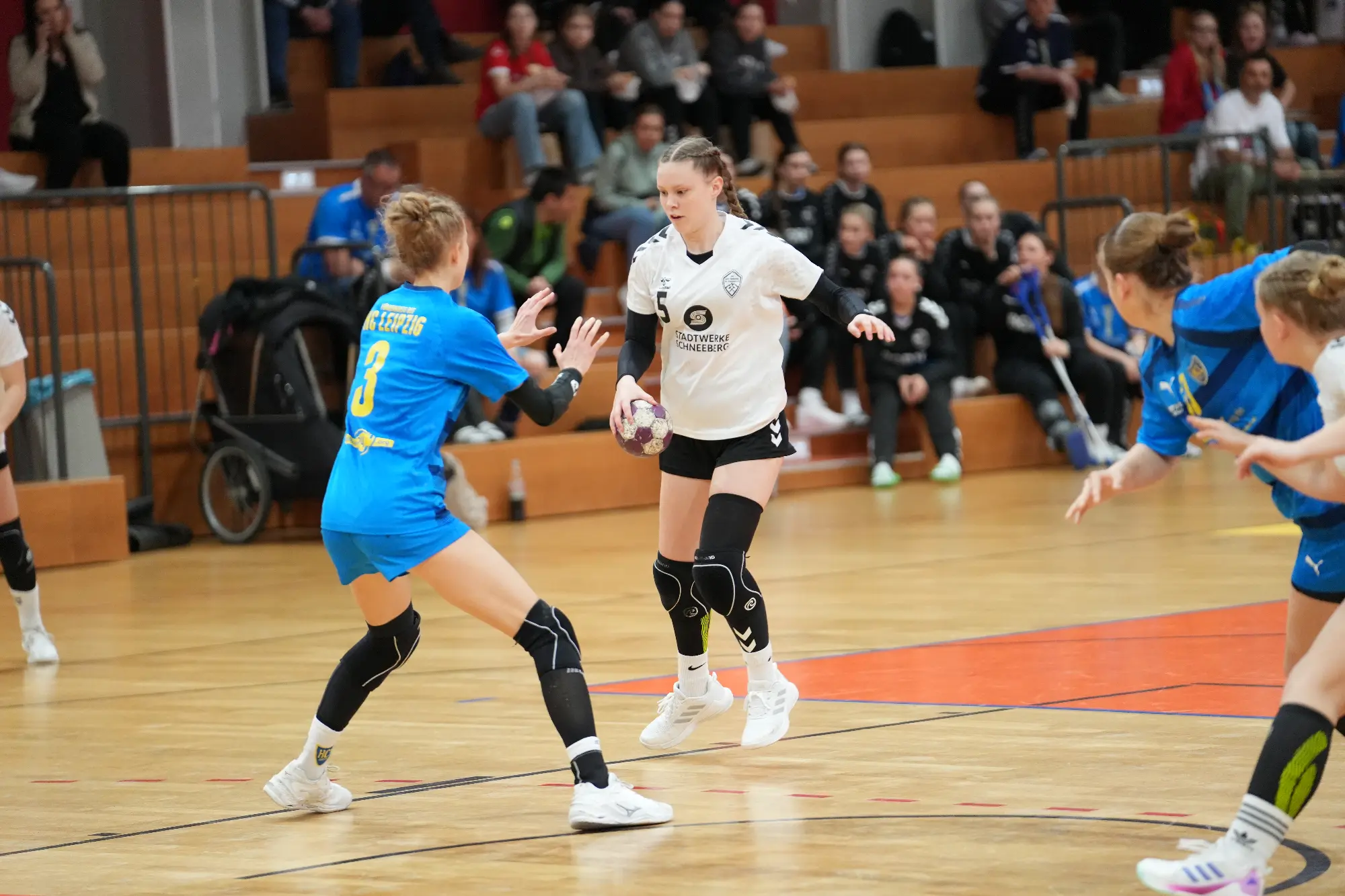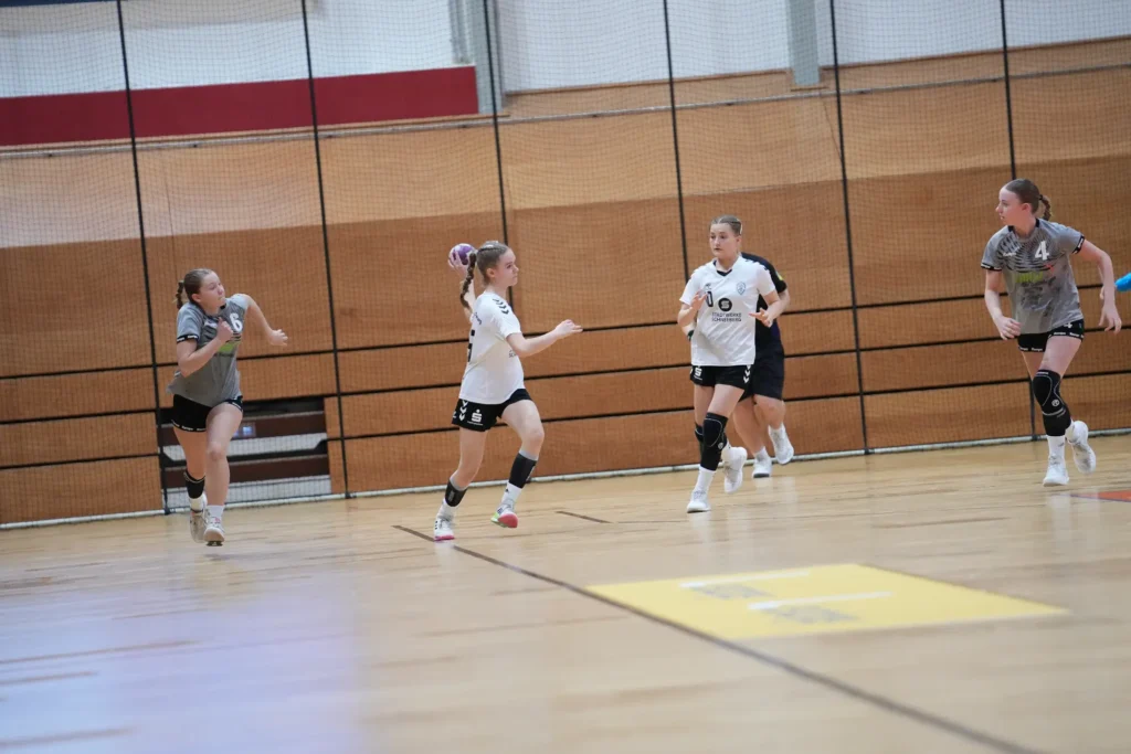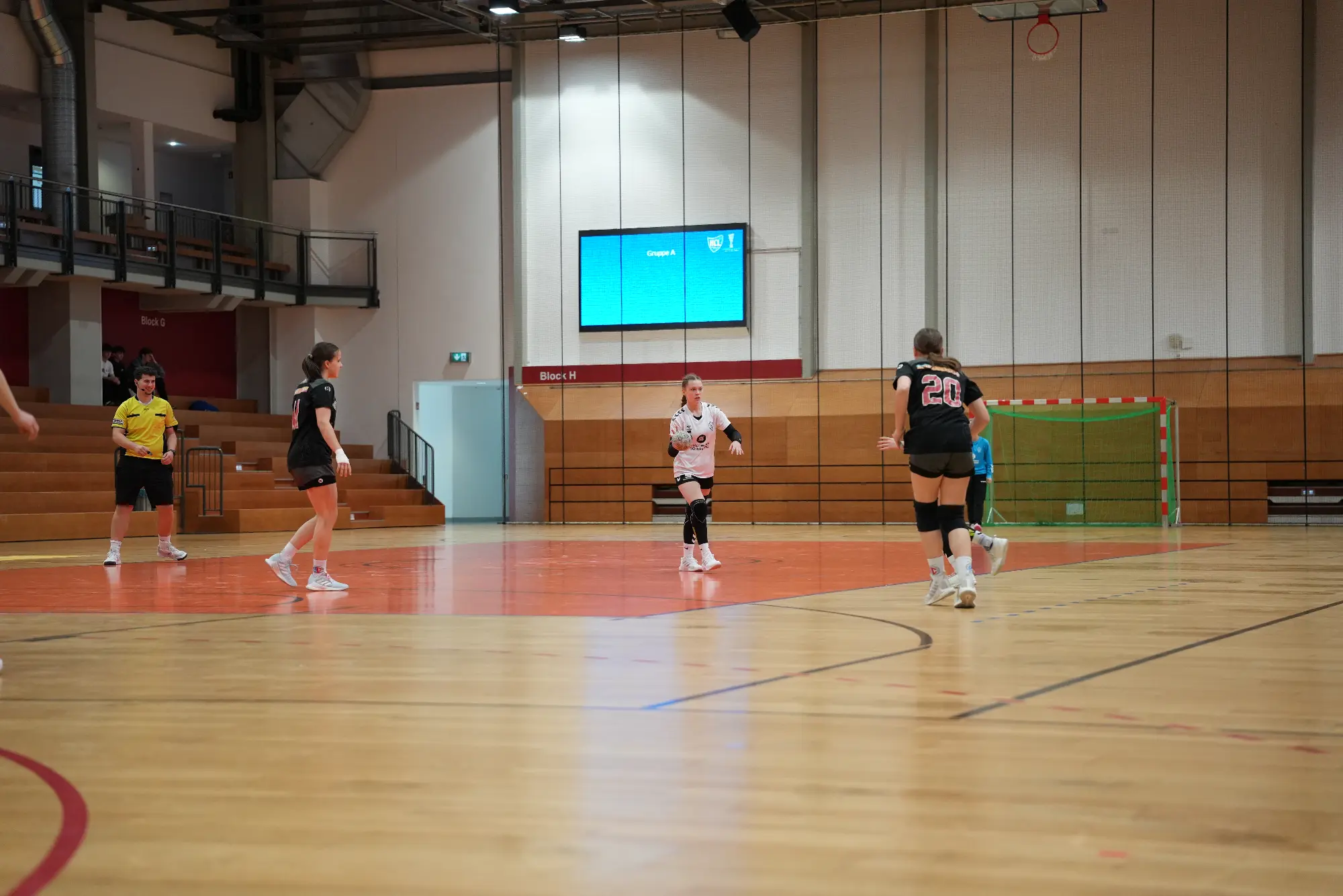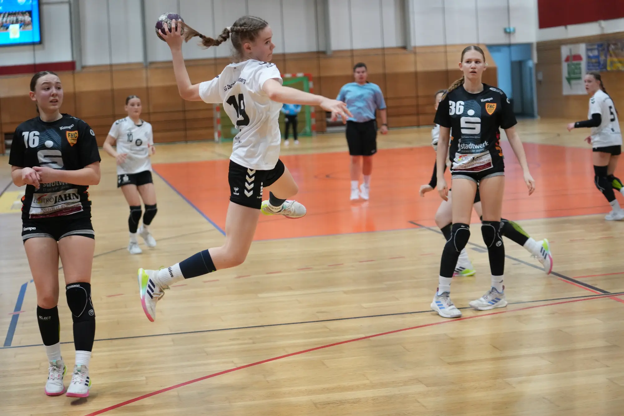 Ausgeruht und neu fokussiert startete unser Team am Mittwochmorgen ins dritte Vorrundenspiel gegen den HC Erlangen. Was folgte, war ein Handball-Krimi auf Augenhöhe. Keine der beiden Mannschaften konnte sich im Verlauf der 25 Minuten entscheidend absetzen. Tore und Führungen wechselten im Minutentakt. In der Schlussphase stand die Halle Kopf: Beim Stand von 14:13 für unser Team warfen die Erlangerinnen noch einmal alles nach vorn. Doch dank einer kämpferischen Abwehrleistung und einer herausragenden Lara Haase im Tor, retteten unsere Mädels den knappen 14:13-Sieg über die Zeit. Der Jubel nach dem Schlusspfiff war riesig – dieser hart erkämpfte Sieg hielt die Halbfinalträume am Leben und zeigte die großartige Moral der Mannschaft.