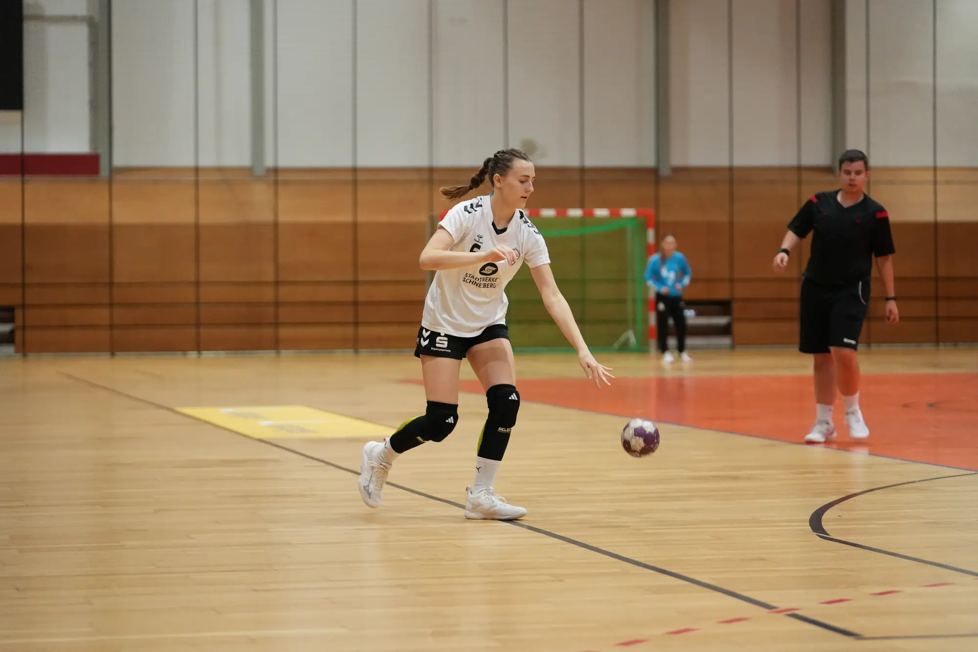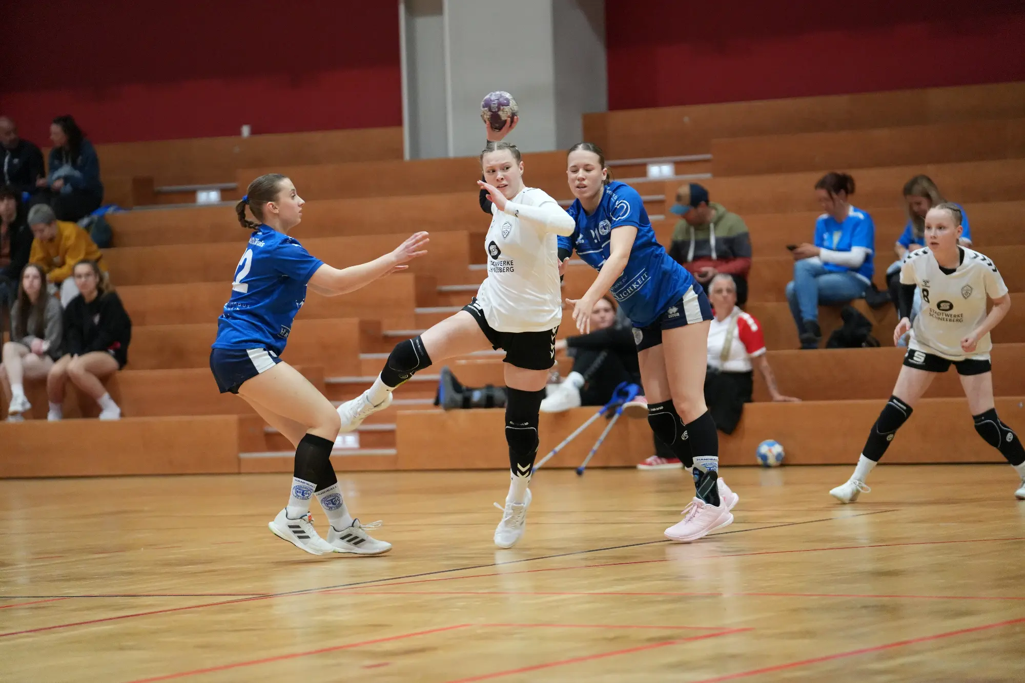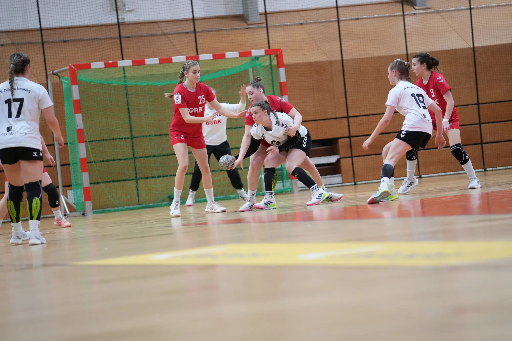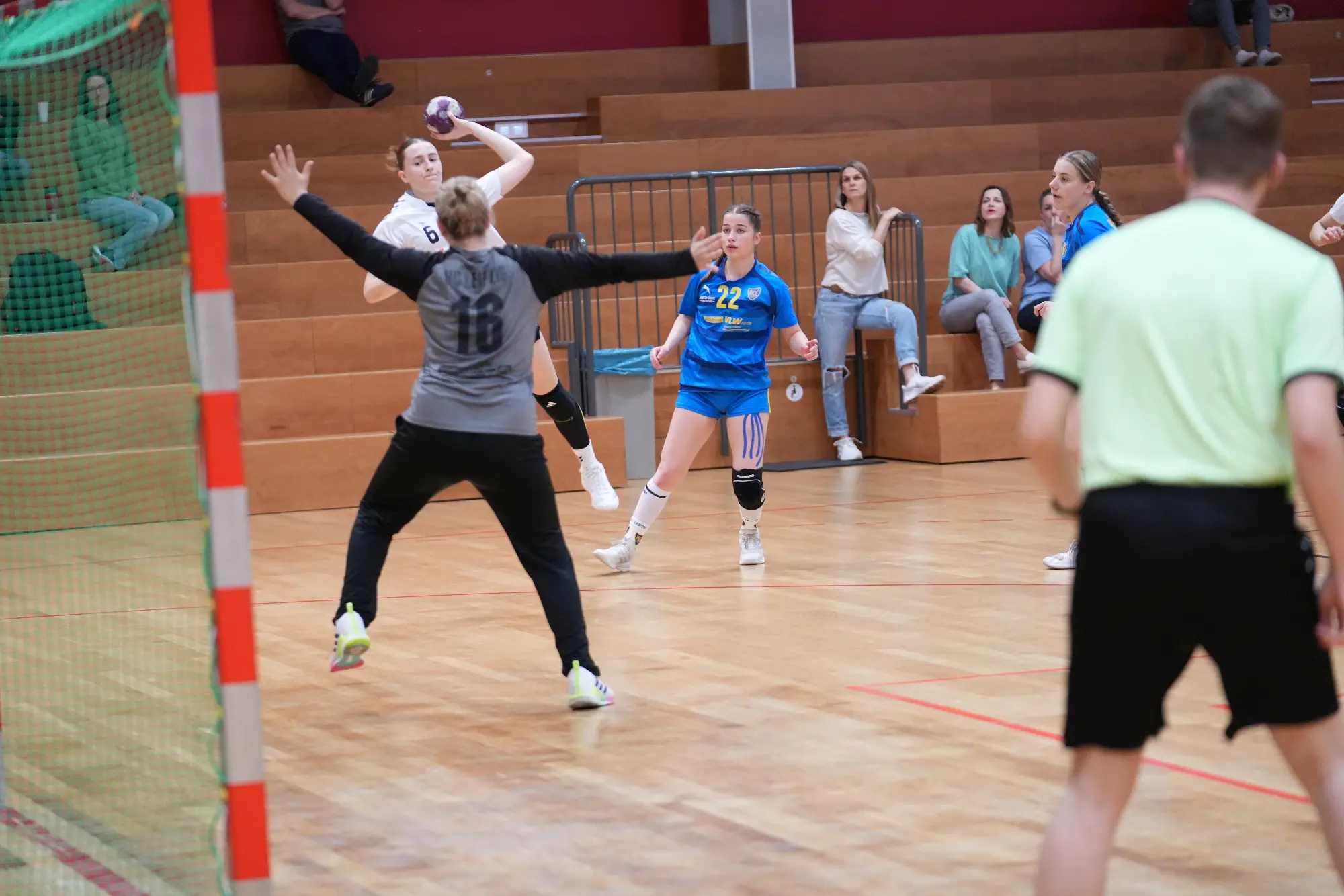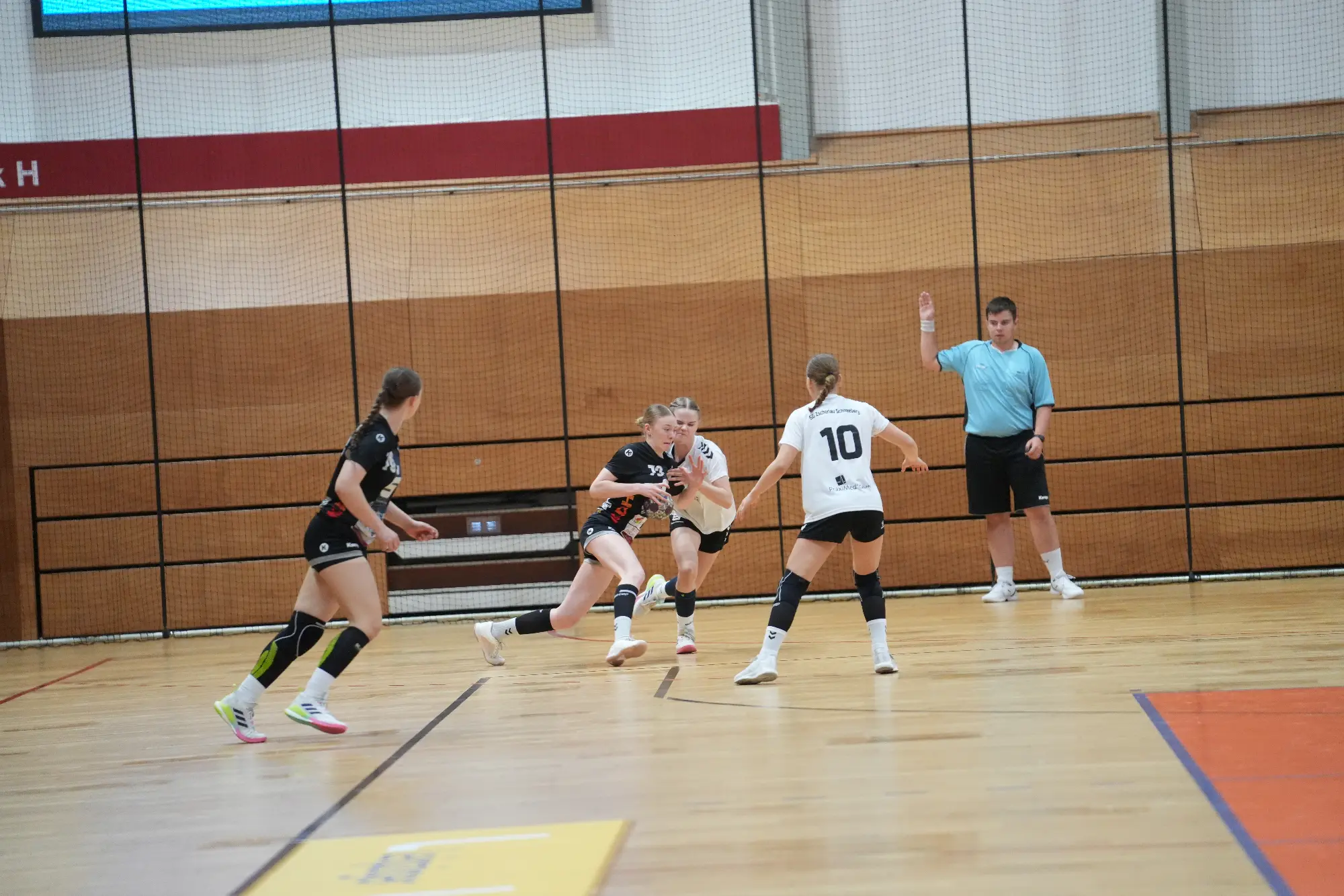 Ausgeruht und neu fokussiert startete unser Team am Mittwochmorgen ins dritte Vorrundenspiel gegen den HC Erlangen. Was folgte, war ein Handball-Krimi auf Augenhöhe. Keine der beiden Mannschaften konnte sich im Verlauf der 25 Minuten entscheidend absetzen. Tore und Führungen wechselten im Minutentakt. In der Schlussphase stand die Halle Kopf: Beim Stand von 14:13 für unser Team warfen die Erlangerinnen noch einmal alles nach vorn. Doch dank einer kämpferischen Abwehrleistung und einer herausragenden Lara Haase im Tor, retteten unsere Mädels den knappen 14:13-Sieg über die Zeit. Der Jubel nach dem Schlusspfiff war riesig – dieser hart erkämpfte Sieg hielt die Halbfinalträume am Leben und zeigte die großartige Moral der Mannschaft.