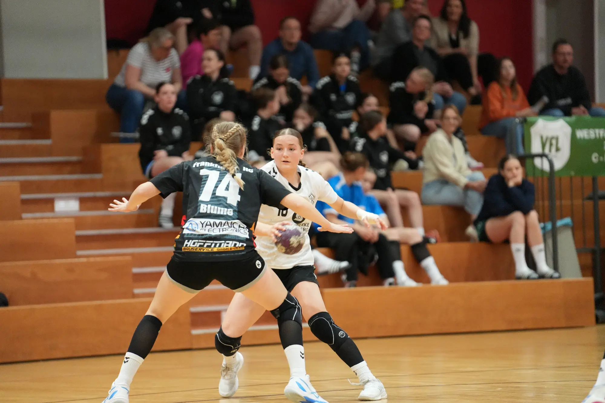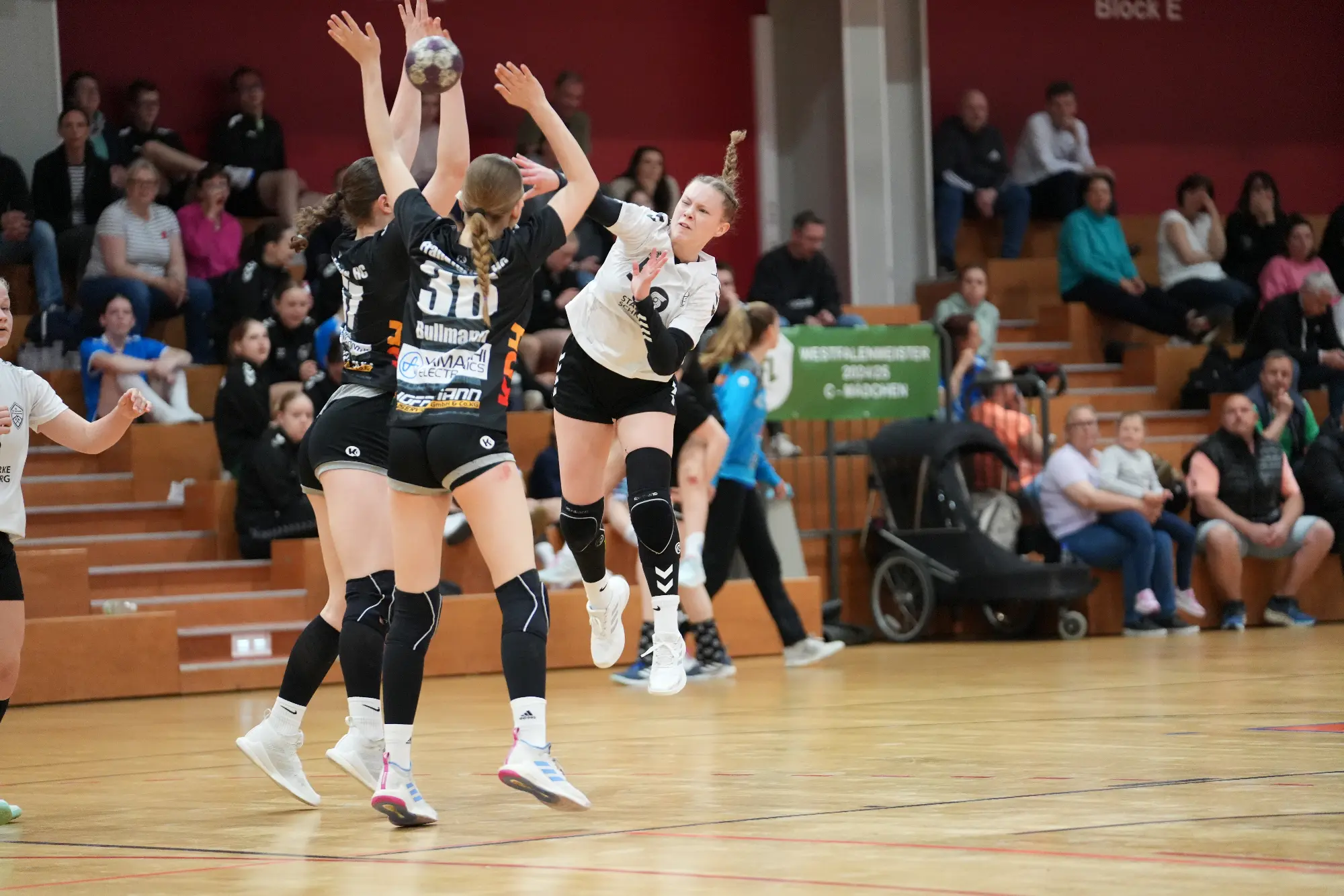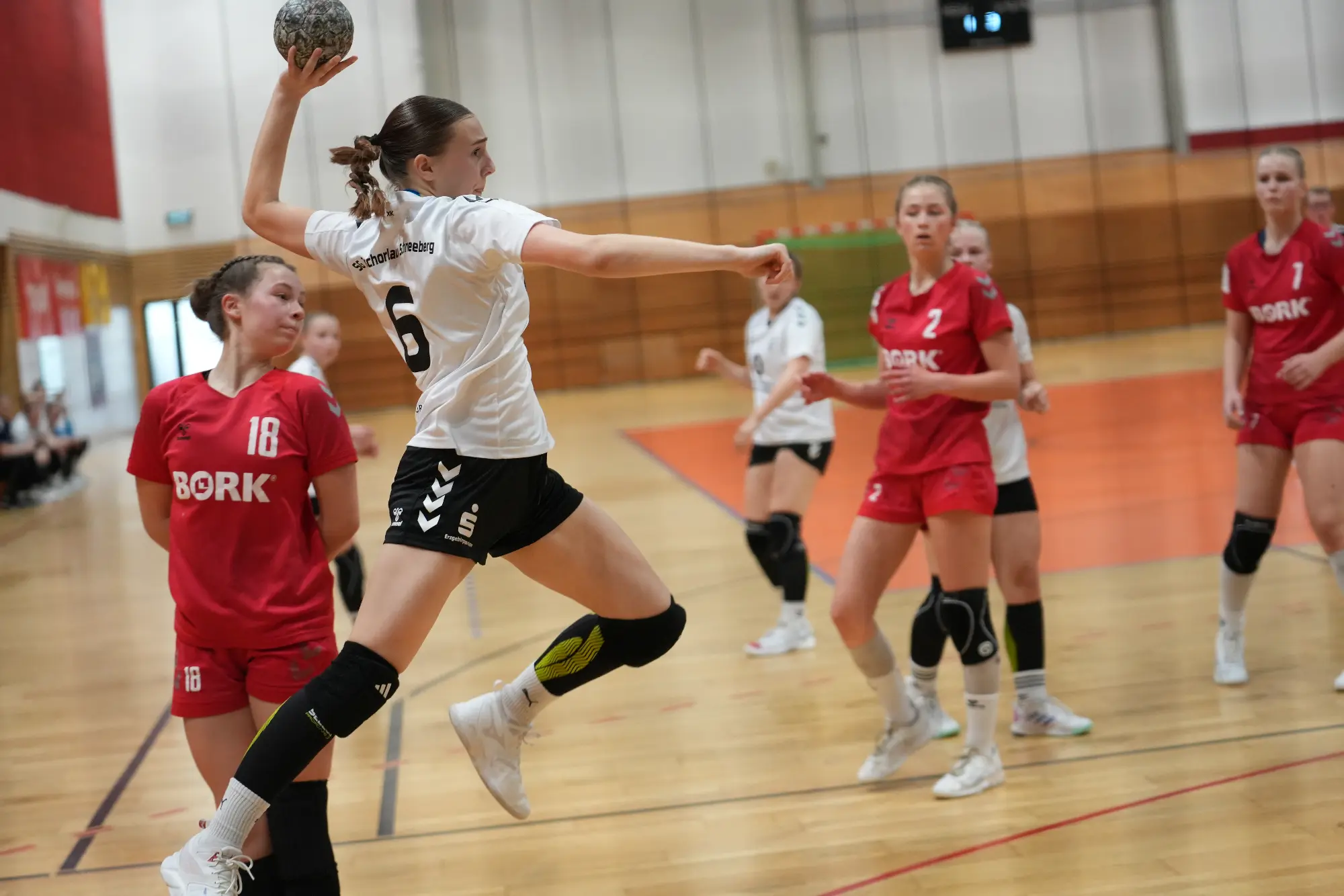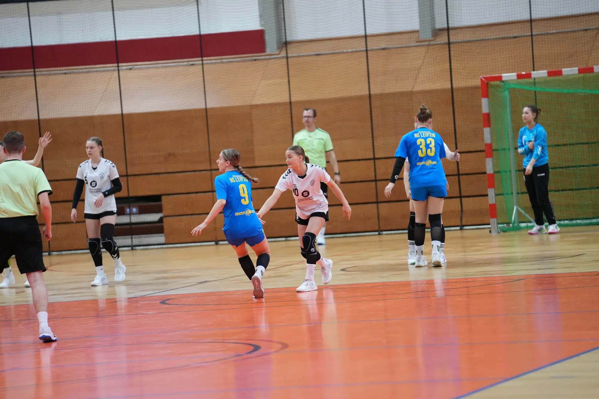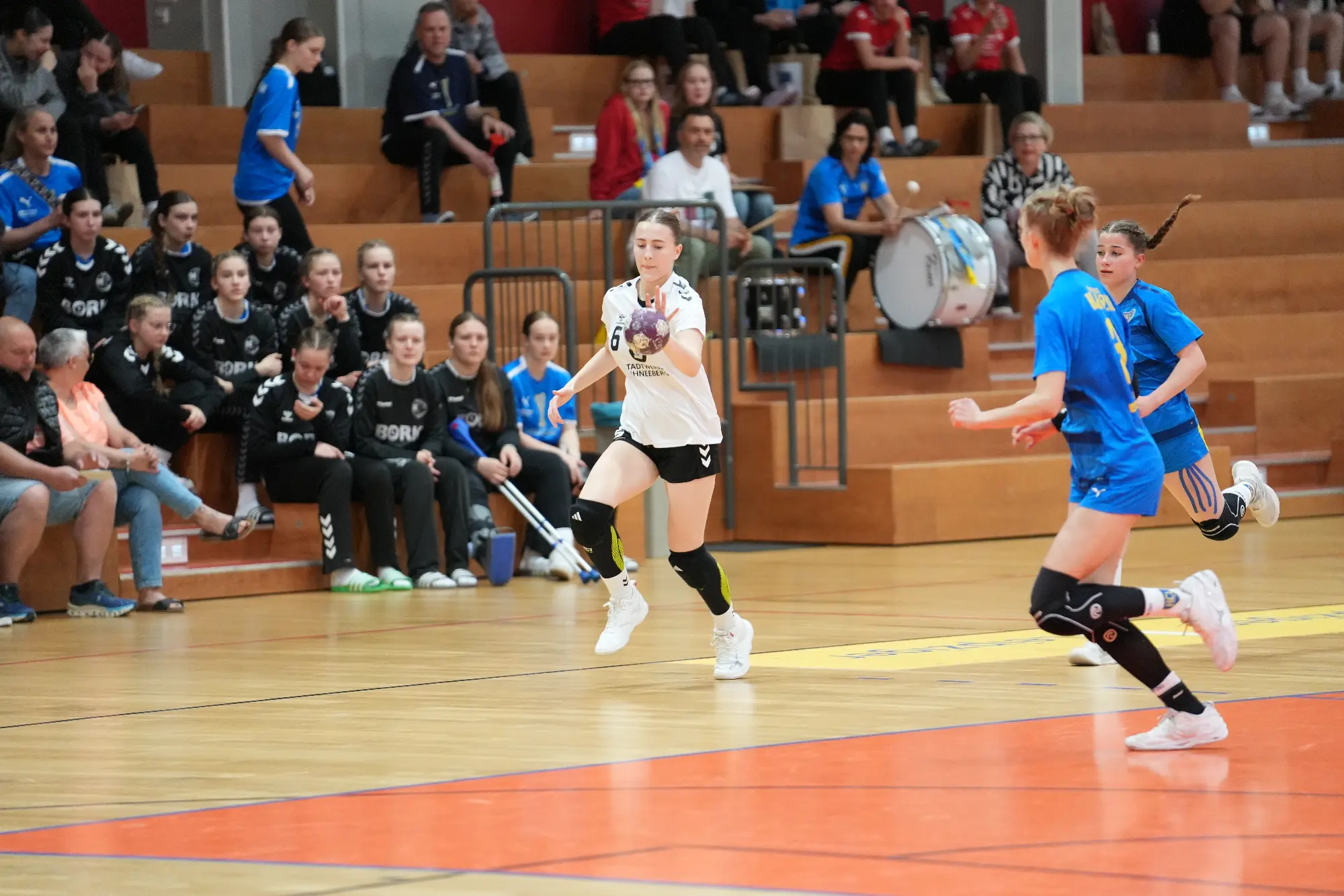 Ausgeruht und neu fokussiert startete unser Team am Mittwochmorgen ins dritte Vorrundenspiel gegen den HC Erlangen. Was folgte, war ein Handball-Krimi auf Augenhöhe. Keine der beiden Mannschaften konnte sich im Verlauf der 25 Minuten entscheidend absetzen. Tore und Führungen wechselten im Minutentakt. In der Schlussphase stand die Halle Kopf: Beim Stand von 14:13 für unser Team warfen die Erlangerinnen noch einmal alles nach vorn. Doch dank einer kämpferischen Abwehrleistung und einer herausragenden Lara Haase im Tor, retteten unsere Mädels den knappen 14:13-Sieg über die Zeit. Der Jubel nach dem Schlusspfiff war riesig – dieser hart erkämpfte Sieg hielt die Halbfinalträume am Leben und zeigte die großartige Moral der Mannschaft.