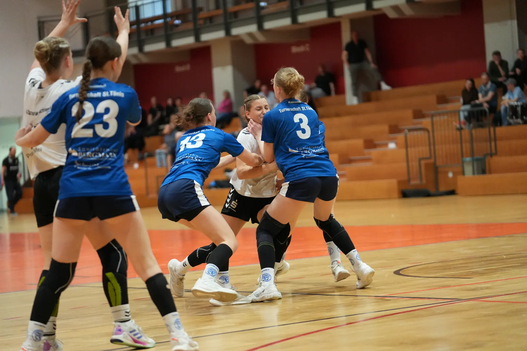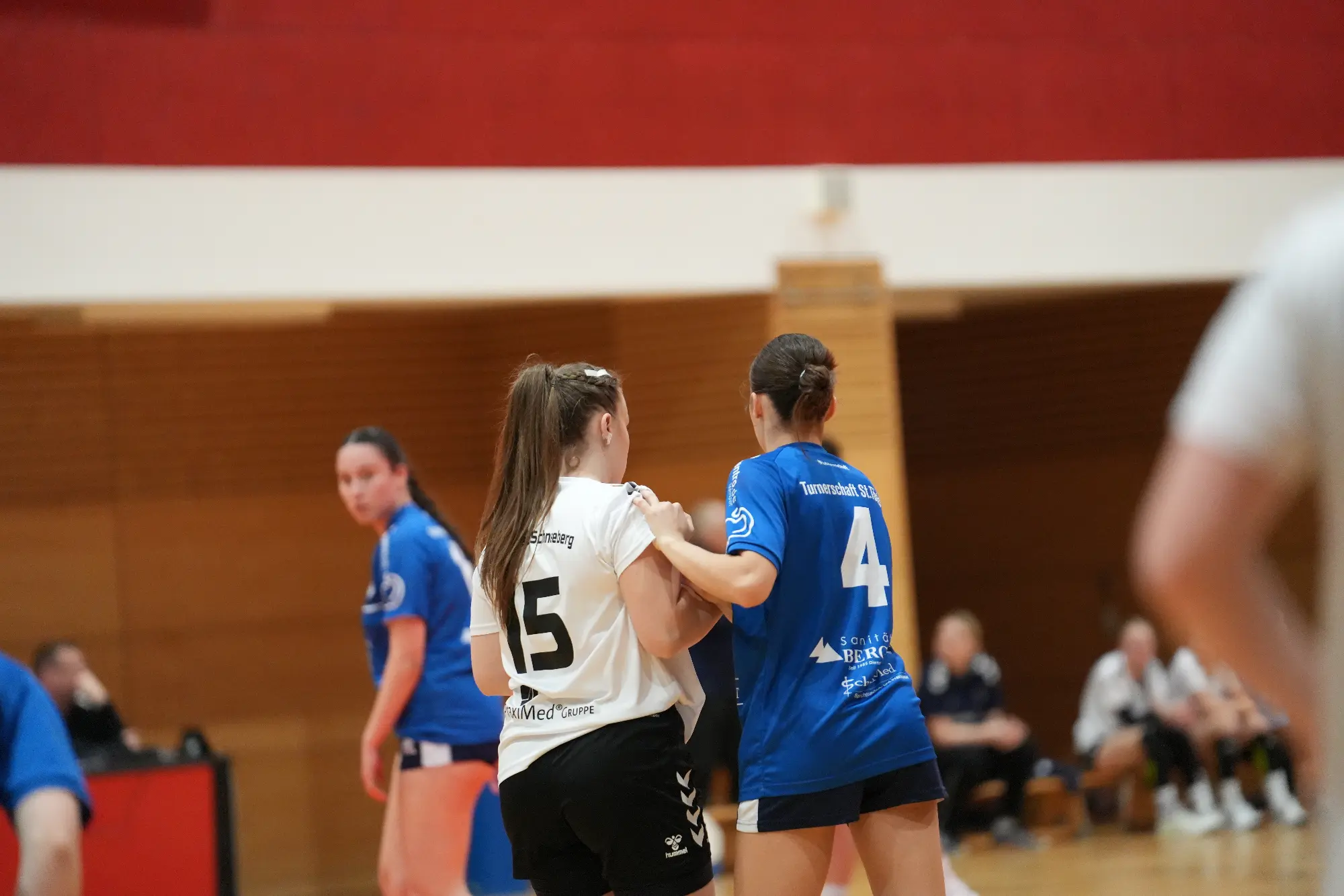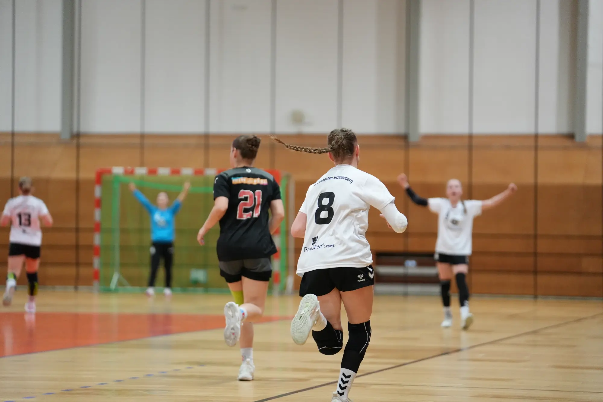 Bereits wenige Stunden später folgte noch am selben Abend das zweite Gruppenspiel gegen die Turnerschaft St. Tönis. Die Rheinländerinnen – der spätere Turniersieger – erwiesen sich als erwartet schwerer Gegner. Schon in der Anfangsphase wurde klar, dass es gegen die robusten Spielerinnen aus St. Tönis schwierig werden würde. Zwar hielt unser Team zunächst energisch dagegen, musste aber schnell einen Rückstand hinnehmen. Im weiteren Spielverlauf nutzte St. Tönis konsequent jede Unaufmerksamkeit und zog Tor um Tor davon. Trotz unermüdlichem Einsatz unserer Mädels ging die Partie schließlich deutlich mit 10:22 verloren. Die Enttäuschung war spürbar, doch es blieb keine Zeit zum hadern – am nächsten Tag warteten bereits die nächsten Aufgaben.