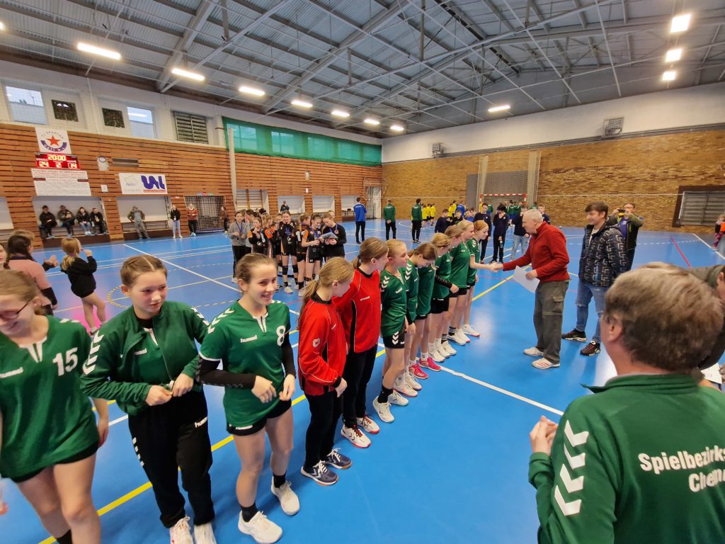 Am 07.01.2023 fand der traditionelle Auslandsstart der Bezirksauswahl Chemnitz in Usti nad Labem statt. Für das Turnier nominierte sich auch unsere Naimi – aufgrund ihrer sehr guten Leistungen im Trainingslager auf dem Rabenberg im Dezember. Auch zum Turniersieg trug sie einen wesentlichen Bestandteil bei. Gespielt wurde 2 x 20min. Im ersten Spiel gegen die Gastgeber von HK Spartak Usti gewannen die BAW-Mädels souverän mit 10:24. Gegen die Nachwuchsmädels des Champions League Teilnehmers DHK Banik Most bot sich den Zuschauern nun ein spannenderes und sehr körperbetontes Spiel. Aber auch hier konnten die BAW-Girls aus einer sicheren Abwehr heraus, vorn gut herausgespielte Treffer sicher im Netz versenken. Sieg gegen Most 24:14. Nele Wimmer vom HC Fraureuth wurde verdient zur besten Spielerin gekürt, sie konnte selbst 10x einnetzen – by the way Naimi 9x. Glückwunsch ans gesamte Team um die Trainerinnen Sarah Pfau und Nelly Hohenhausen für diesen erfolgreichen Auslandsstart.