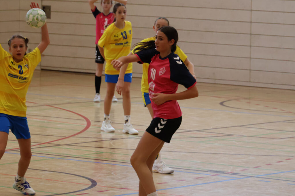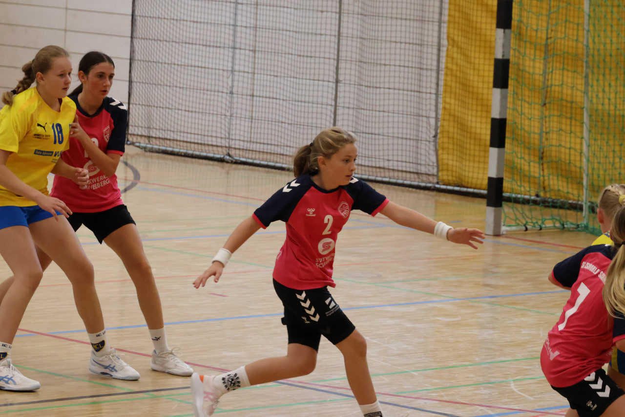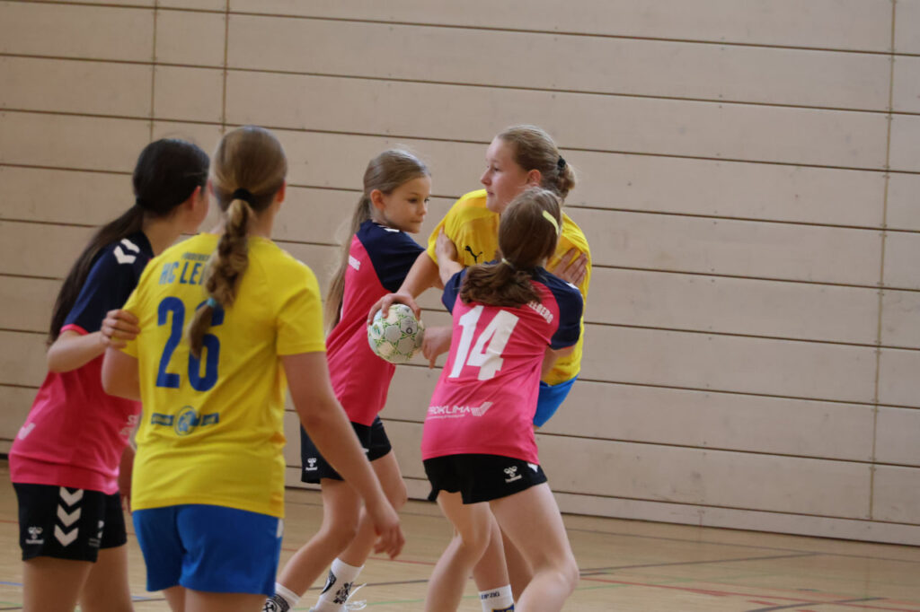 Von Beginn an war zu spüren, dass unsere Mädels mit großem Respekt in die Partie gingen. Die Leipzigerinnen sind als starkes Team bekannt, und diese Nervosität war in den ersten Minuten deutlich sichtbar. Zwar gelang gleich zu Beginn ein schöner Treffer zur 0:1-Führung, doch anstatt Sicherheit zu geben, wirkte der Gegner dadurch noch wacher. Leipzig übernahm schnell das Kommando und nutzte jede Unsicherheit konsequent aus. Unsere Mannschaft tat sich schwer, in der Abwehr Zugriff zu bekommen, und ließ den Gastgeberinnen zu viel Raum für ihr schnelles Spiel. Auch im Angriff war der Druck des Gegners spürbar, sodass einfache Fehler entstanden, die sofort bestraft wurden. Trotz der Schwierigkeiten gaben die Mädchen nicht auf: Mit viel Laufbereitschaft und einzelnen gelungenen Aktionen im Angriff konnten sie immer wieder Nadelstiche setzen und schöne Tore erzielen. Doch Leipzig war in dieser Phase zu stark und baute den Vorsprung Tor um Tor aus. Zur Halbzeit stand es 18:8 – ein deutlicher Rückstand, der auch dem großen Respekt vor dem Gegner geschuldet war.