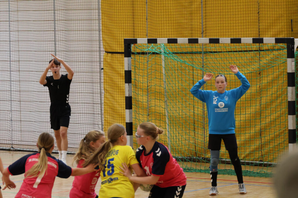Nach der Pause wollten unsere Mädels noch einmal alles geben. Und genau das war auf dem Feld zu sehen: Mit großem Kampfgeist suchte die SG Zschorlau/Schneeberg mutig den Weg zum Tor und erzielte sehenswerte Treffer. Trotz der starken Leipziger Abwehr fanden die Mädchen immer wieder Lösungen, um durchzubrechen oder über den Rückraum abzuschließen. Leipzig nutzte jedoch nahezu jede kleine Unaufmerksamkeit konsequent aus. Unsere Mannschaft stellte sich mit viel Einsatz dagegen, half sich gegenseitig und ließ auch nach klarer Führung des Gegners die Köpfe nicht hängen. Bis zum Schlusspfiff wurde um jeden Ball gekämpft. Am Ende hieß es 29:14 für den HC Leipzig, doch der Wille und die Einstellung unserer Mannschaft blieben bis zur letzten Sekunde ungebrochen.