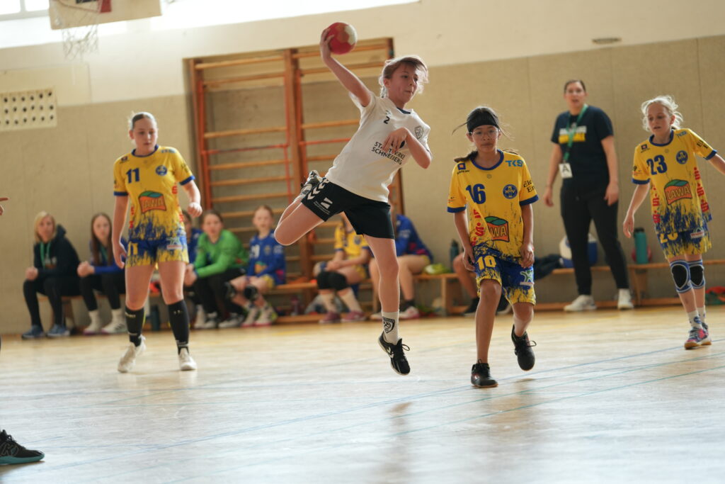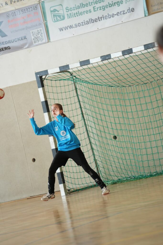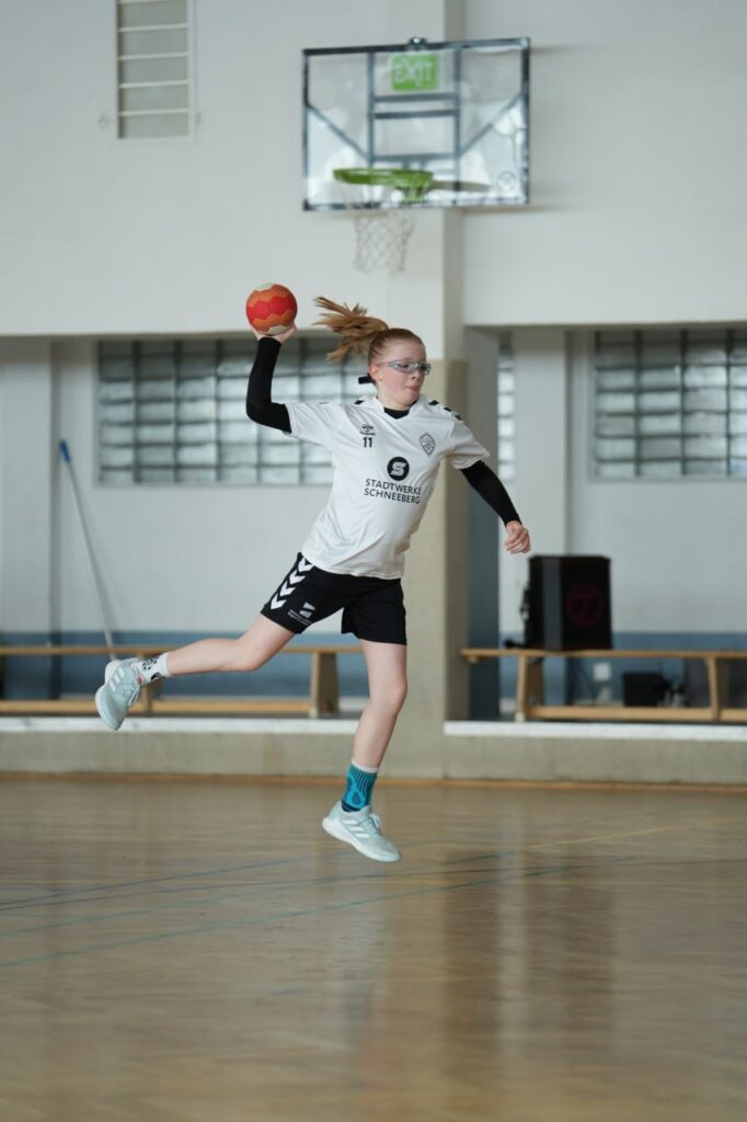Trotz eines etwas nervösen Beginns mit einer frühen Führung durch die Gäste aus Marienberg ließ sich die SG Zschorlau/Schneeberg nicht aus der Ruhe bringen, denn diese sollte gleichzeitig auch der einzige Moment sein, in dem der HSV in Führung lag. Nur wenige Sekunden später glichen unsere Mädels aus – und starteten damit eine regelrechte Angriffswelle der Gastgeberinnen. Mit klarem Kopf und viel Tempo rollte ein Angriff nach dem anderen auf das Marienberger Tor zu. Unsere Maggie Teichmann präsentierte sich in absoluter Topform, traf dreimal in Folge und war Dreh- und Angelpunkt im Angriff. Wir nutzten immer wieder geschickt entstehende Lücken und erzielten weitere Treffer. Die Mannschaft agierte geschlossen, aufmerksam und mit viel Übersicht – jede Spielerin war bereit, Verantwortung zu übernehmen. Auch taktisch zeigten unsere Mädels, dass sie auf den Punkt vorbereitet waren: Zwei Auszeiten – eine auf beiden Seiten – änderten nichts am Spielverlauf. Wir blieben konzentriert, nutzten nahezu jede sich bietende Chance und somit konnte sich auch unsere Emily Lühr endlich mit ihrem ersten Tor belohnen. In der Schlussphase der ersten Halbzeit bauten wir mit drei Treffern in drei Minuten die Führung weiter aus. Auch wenn Marienberg kurz vor der Pause noch etwas Ergebniskosmetik betreiben konnte, gingen wir mit einer verdienten 14:5-Führung in die Kabine – zur Freude der Fans und mit viel Applaus auf dem Weg in die Halbzeitpause.