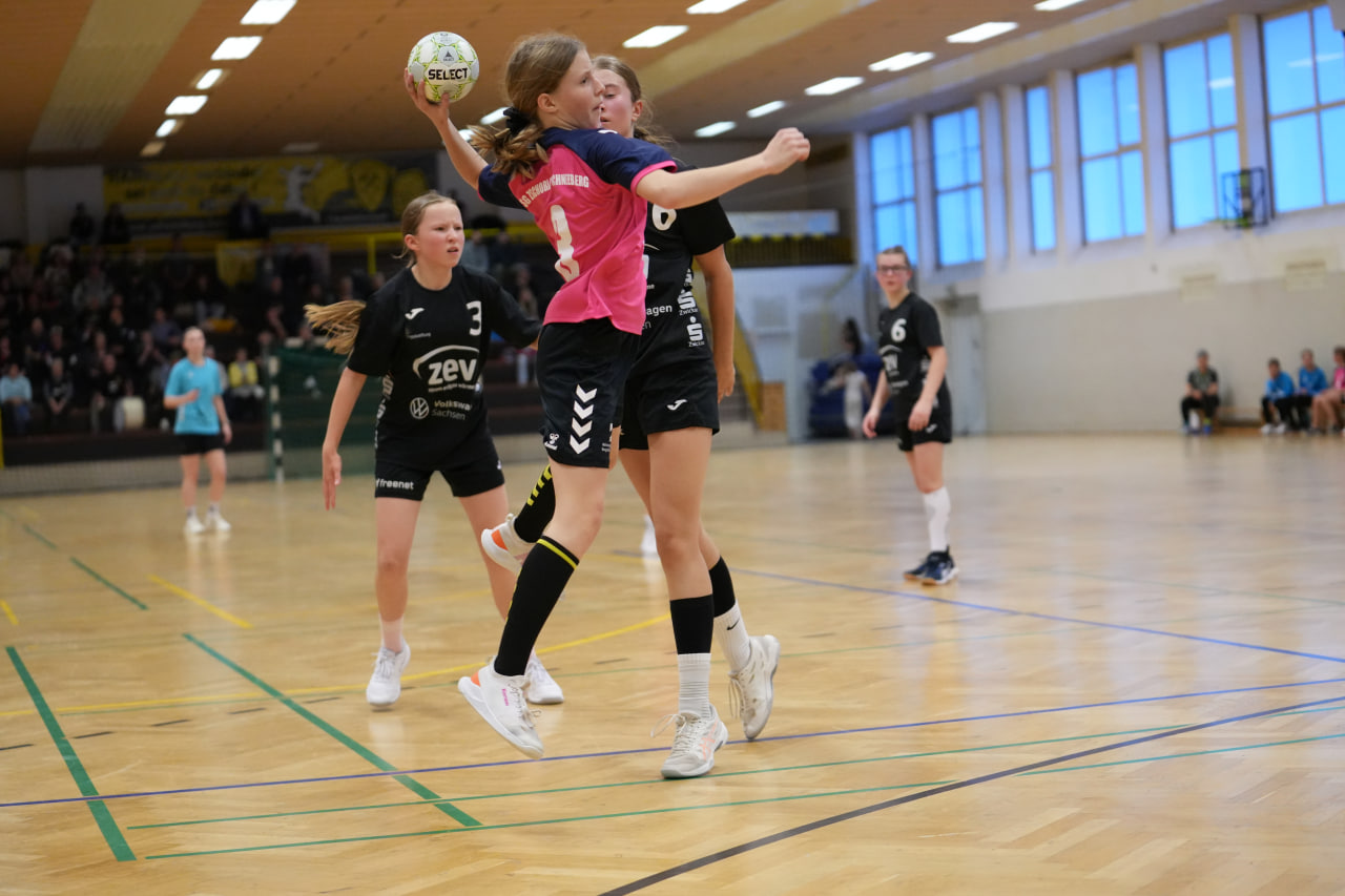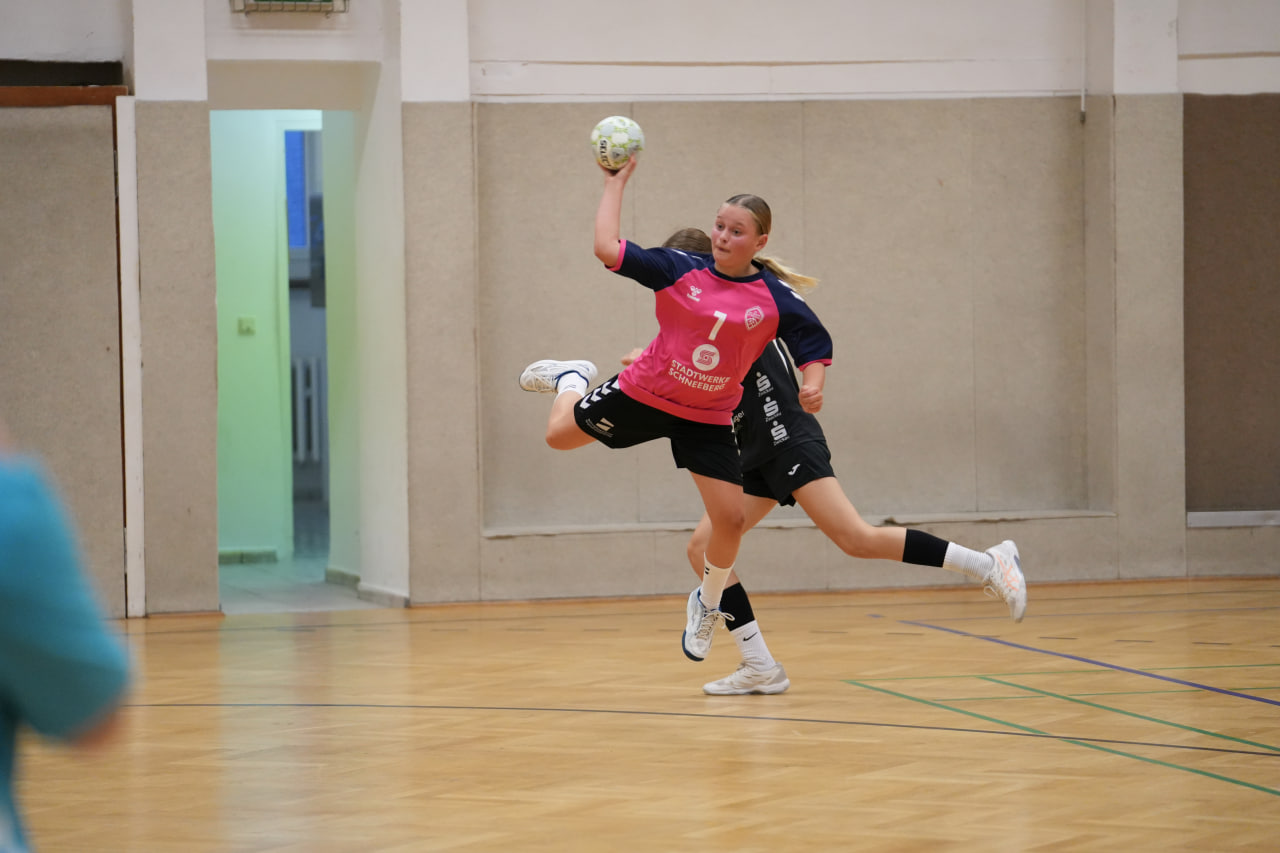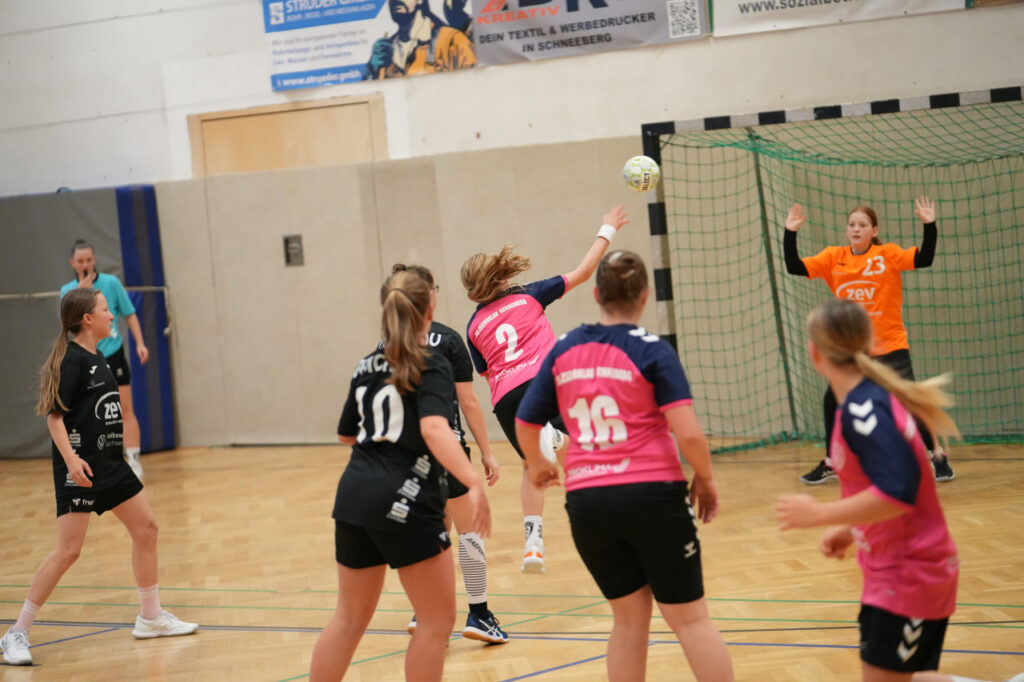 Die SG Zschorlau/Schneeberg startete konzentriert und hoch motiviert in die Partie gegen den Tabellenersten. Beide Mannschaften lieferten sich zunächst ein ausgeglichenes Duell, in dem sich keine klaren Vorteile abzeichneten. Mit hoher Laufbereitschaft und engagierter Abwehrarbeit hielten unsere Mädels die Zwickauerinnen in Schach und kamen selbst zu gut herausgespielten Torchancen. Besonders in dieser Anfangsphase überzeugte die Mannschaft durch variable Angriffe und ein sicheres Kombinationsspiel. Immer wieder gelang es, die Lücken in der gegnerischen Abwehr zu finden und konsequent abzuschließen. Nach etwa 20 Minuten erspielten sich die Mädels einen kleinen Vorsprung, den sie mit großem Einsatz verteidigten. Die Gäste aus Zwickau wirkten phasenweise überrascht von der Entschlossenheit und der starken Körpersprache unserer Mädels. Mehrfach scheiterten sie an der kompakten Abwehr oder der gut aufgelegten Torhüterin. Kurz vor der Pause bauten wir die Führung weiter aus und gingen mit einem verdienten und für alle überraschenden 12:9 in die Halbzeitpause.