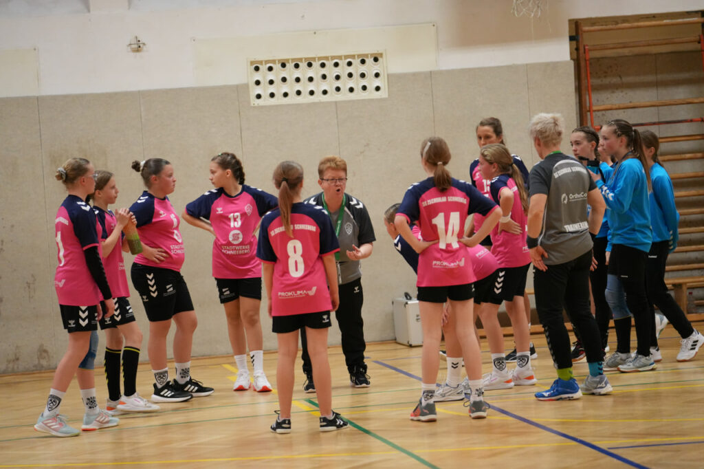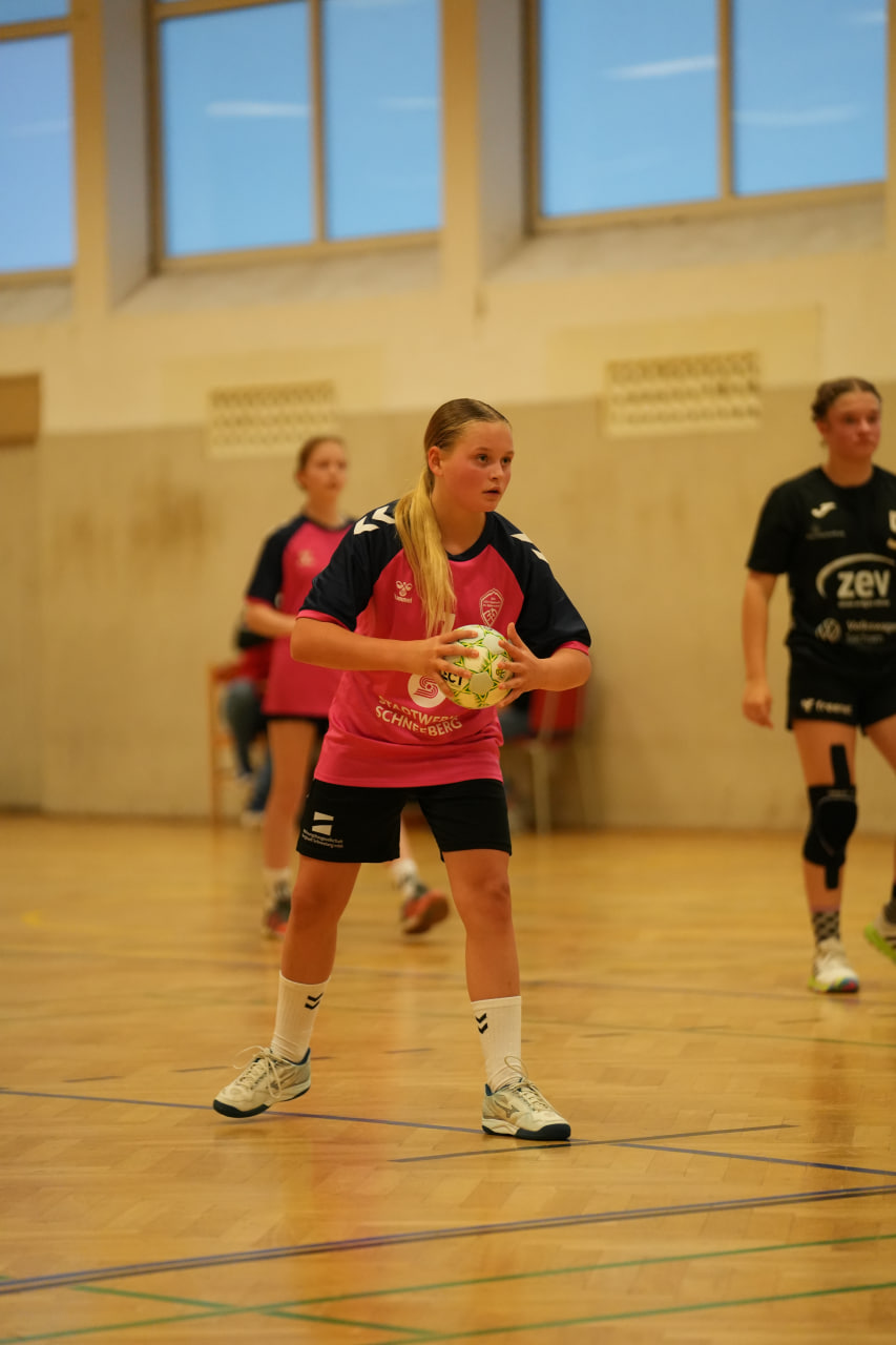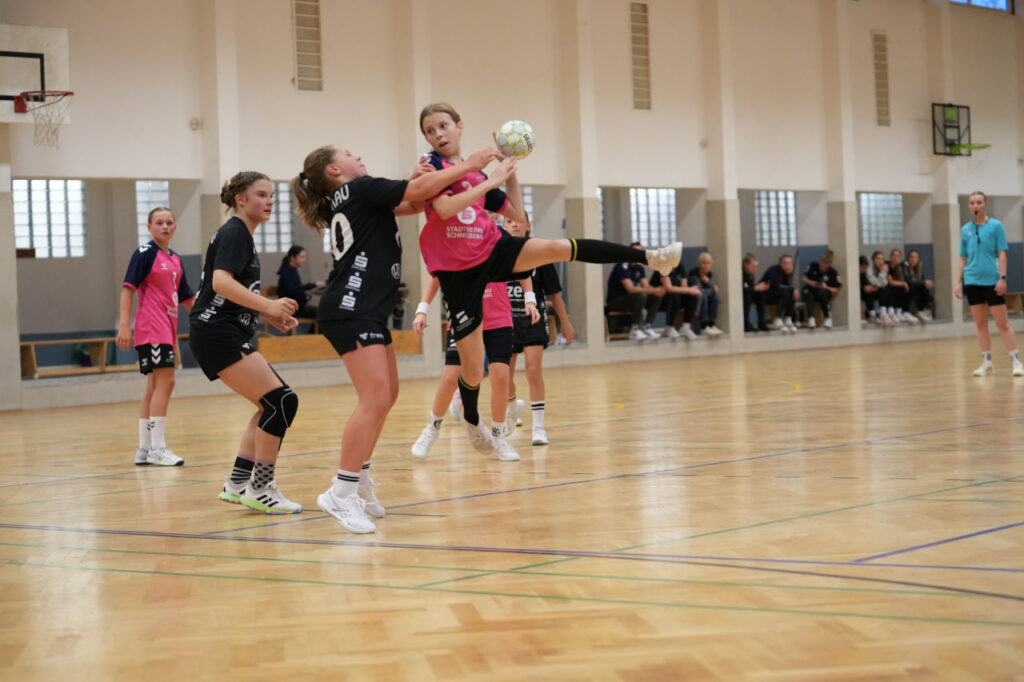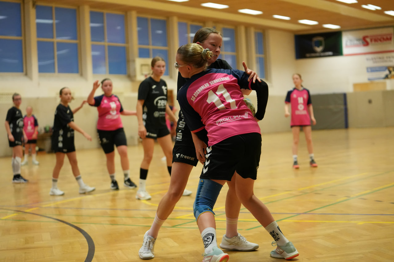 Die SG Zschorlau/Schneeberg startete konzentriert und hoch motiviert in die Partie gegen den Tabellenersten. Beide Mannschaften lieferten sich zunächst ein ausgeglichenes Duell, in dem sich keine klaren Vorteile abzeichneten. Mit hoher Laufbereitschaft und engagierter Abwehrarbeit hielten unsere Mädels die Zwickauerinnen in Schach und kamen selbst zu gut herausgespielten Torchancen. Besonders in dieser Anfangsphase überzeugte die Mannschaft durch variable Angriffe und ein sicheres Kombinationsspiel. Immer wieder gelang es, die Lücken in der gegnerischen Abwehr zu finden und konsequent abzuschließen. Nach etwa 20 Minuten erspielten sich die Mädels einen kleinen Vorsprung, den sie mit großem Einsatz verteidigten. Die Gäste aus Zwickau wirkten phasenweise überrascht von der Entschlossenheit und der starken Körpersprache unserer Mädels. Mehrfach scheiterten sie an der kompakten Abwehr oder der gut aufgelegten Torhüterin. Kurz vor der Pause bauten wir die Führung weiter aus und gingen mit einem verdienten und für alle überraschenden 12:9 in die Halbzeitpause.