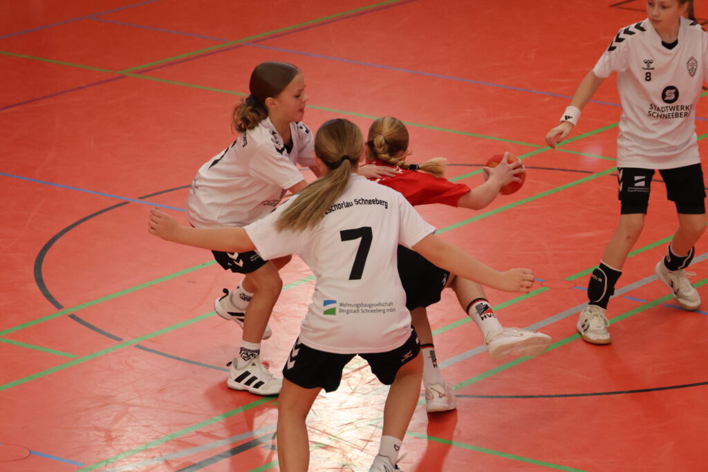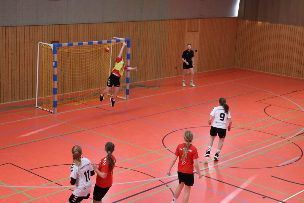 Das Spiel begann mit einem schnellen Führungstreffer durch den HV Chemnitz nach nur 12 Sekunden. Bereits in der Anfangsphase zeichnete sich eine konsequente Defensivleistung und starke Angriffe der Gastmannschaft ab, die ihren Vorsprung kontinuierlich ausbaute. Trotz Bemühungen auf Seiten der Gastgeberinnen konnte die SG Zschorlau/Schneeberg in den ersten 20 Minuten nur sehr schwer ins Spiel finden. Zwei Zeitstrafen für unsere Mannschaft erschwerten den Spielaufbau zusätzlich. Der HV Chemnitz nutzte diese Situationen und erzielte wichtige Tore. So gingen unsere Mädels mit einem Rückstand von 6:11 in die Halbzeitpause.