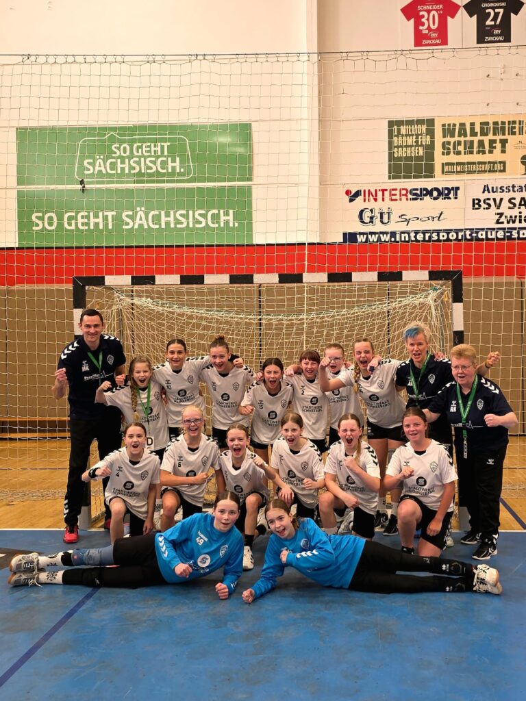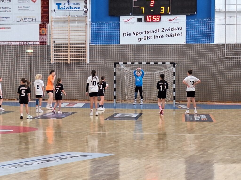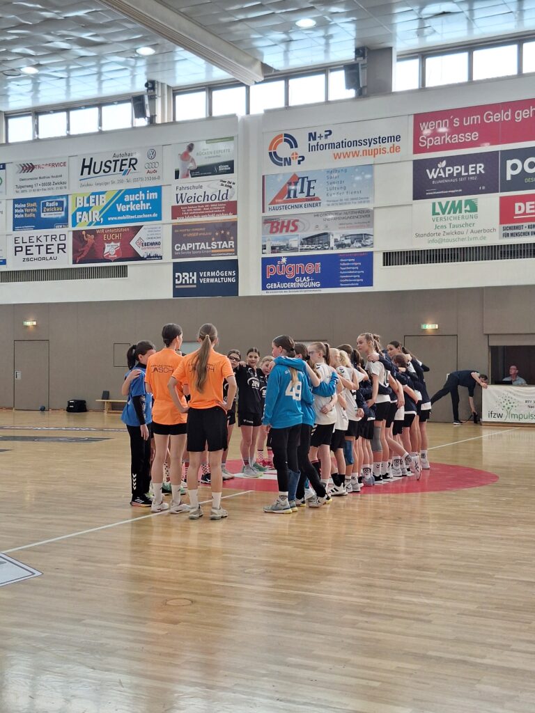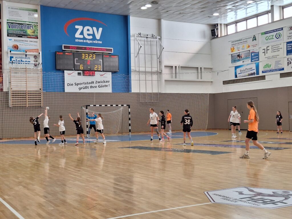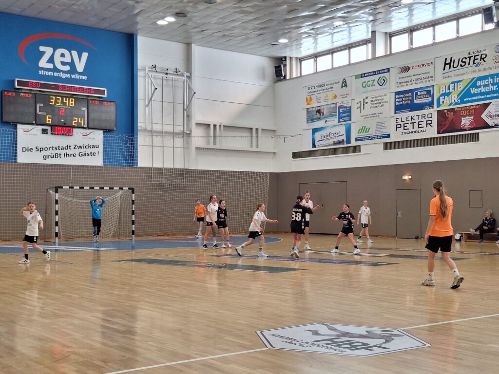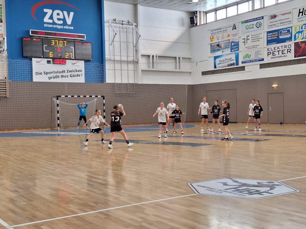 Nach der Pause fanden die Mädels SG Zschorlau/Schneeberg etwas schwieriger ins Spiel. Ein Weckruf von der Trainerbank erfolgte, wir spielten wieder mit hoher Intensität weiter und bauten unseren Vorsprung kontinuierlich aus. Der BSV Zwickau III kämpfte tapfer und konnte einige Tore erzielen, doch die Gäste ließen sich nicht aus der Ruhe bringen. Trotz mehrerer Auszeiten und taktischer Anpassungen fanden die Gastgeber kein Mittel gegen die konsequente Abwehr und das schnelle Umschaltspiel der SG Zschorlau/Schneeberg. Bis zum Schlusspfiff blieb die Überlegenheit der Gäste bestehen, und wir beendeten das Spiel mit einem souveränen 8:36-Auswärtssieg. Besonders freuen wir uns mit Lillemor, die in der Schlussminute ihr erstes Tor erzielte.