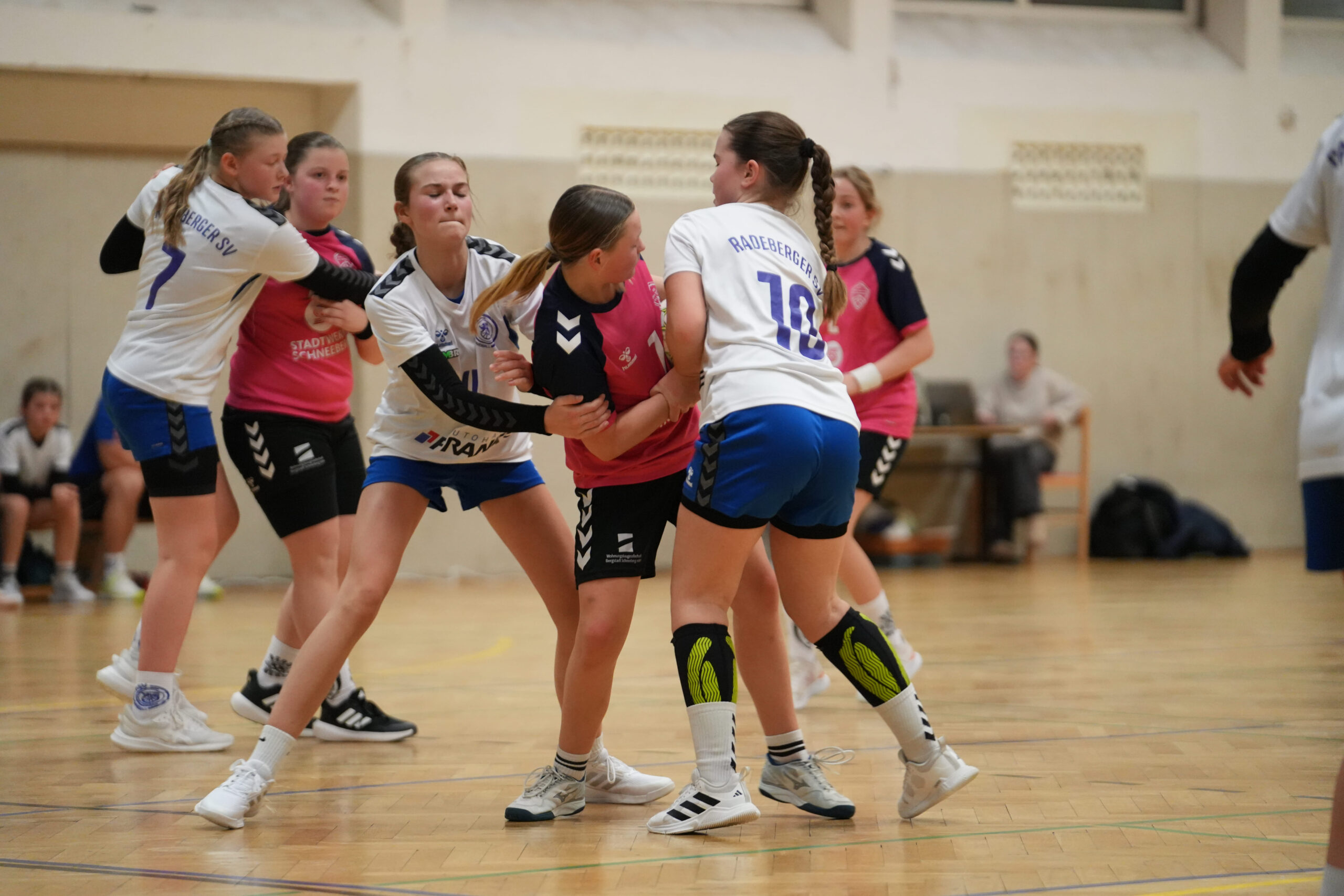 Unsere Mädels starteten hoch konzentriert und mit viel Spielfreude in die Partie. Durch schnelles Umschaltspiel und gute Abstimmung im Angriff gelang früh eine Führung. Die Abwehr stand in den Anfangsminuten stabil, sodass wir uns bis zur Mitte der ersten Halbzeit einen kleinen Vorsprung erarbeiten konnten. Auch im Torabschluss zeigte sich die Mannschaft sicher und variabel. Die Gäste aus Radeberg gaben sich jedoch nicht auf und nutzten kleinere Unkonzentriertheiten, um den Rückstand zwischenzeitlich zu verkürzen. Nach einer Auszeit der Gäste wurde das Spiel etwas hektischer, wobei es auf beiden Seiten zu vergebenen Strafwürfen kam. Unsere Mannschaft behielt dennoch die Ruhe, fand immer wieder Lösungen im Angriff und setzte sich erneut leicht ab. Kurz vor der Pause gelang es dem Radeberger SV noch, den Abstand zu verkürzen, sodass es mit einer 12:10-Führung für unsere Mädels in die Kabine ging.