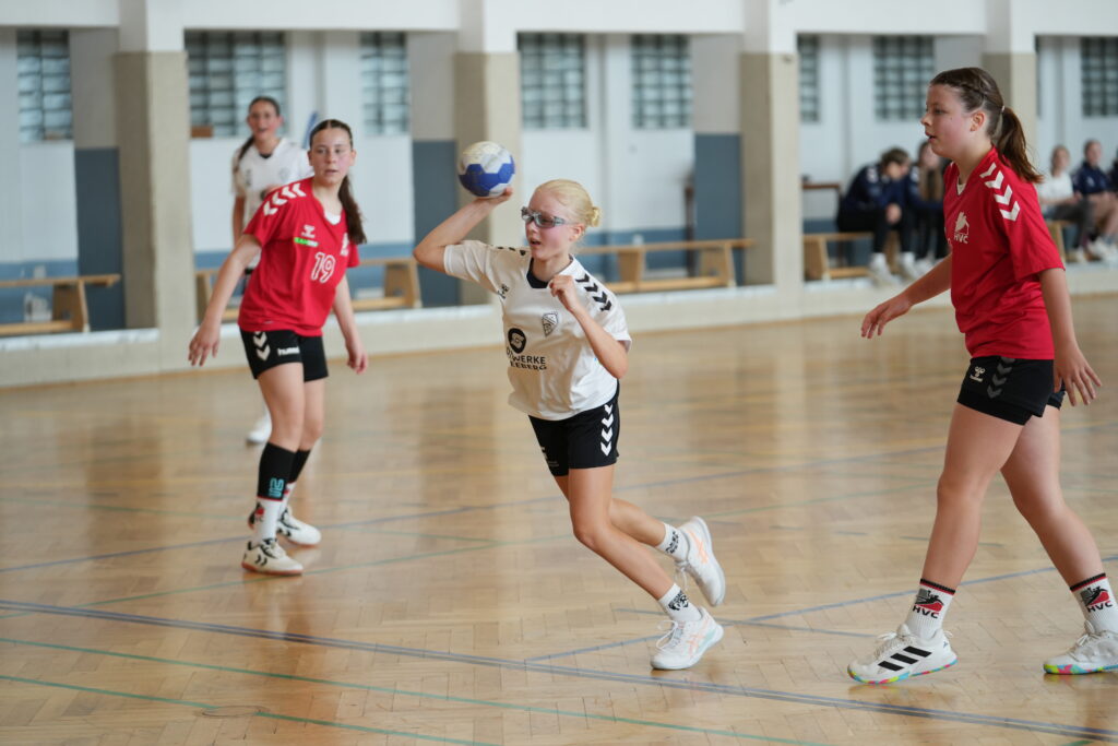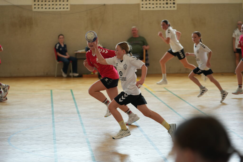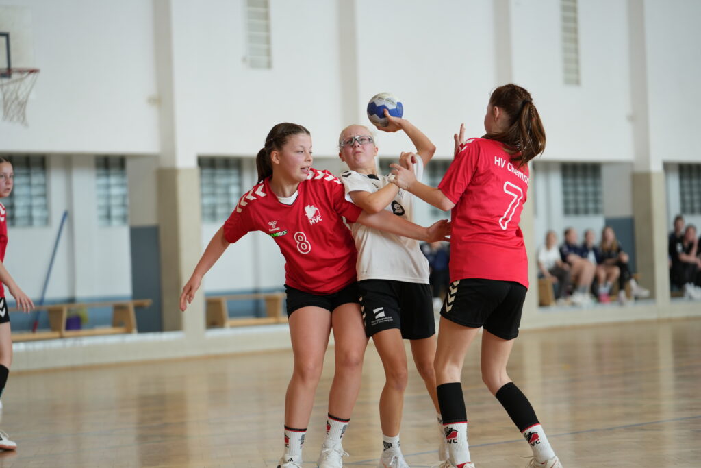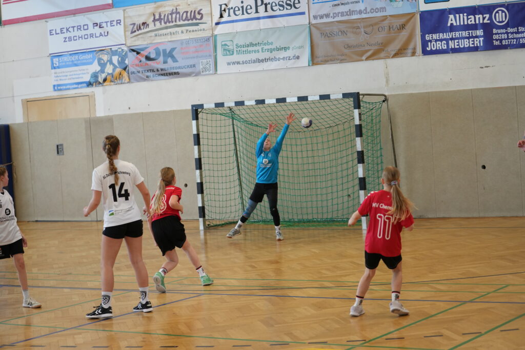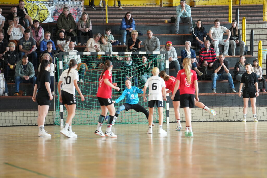 Die Partie begann zunächst nervös aus Sicht unserer Mannschaft. Bereits nach drei Minuten lag der HV Chemnitz mit 0:3 in Führung. Die Gäste präsentierten sich konzentriert, nutzten kleine Unaufmerksamkeiten in unserer Abwehr und schienen den besseren Start erwischt zu haben. Doch was folgte, war ein Paradebeispiel für Teamgeist und Moral: Unsere Mädels arbeiteten sich zurück ins Spiel und ließen sich auch von weiteren Treffern der Chemnitzerinnen nicht aus dem Konzept bringen. Ab der 9. Minute entwickelte sich ein packender Schlagabtausch. Mit cleveren Spielzügen, guter Übersicht und starkem Zusammenspiel holte sich die SG Zschorlau/Schneeberg Tor für Tor den Ausgleich und ging kurz vor der Pause erstmals mit 9:8 in Führung. Zwei weitere Treffer sorgten schließlich für den 11:9-Halbzeitstand – ein kleiner, aber wichtiger Vorsprung zur Pause.