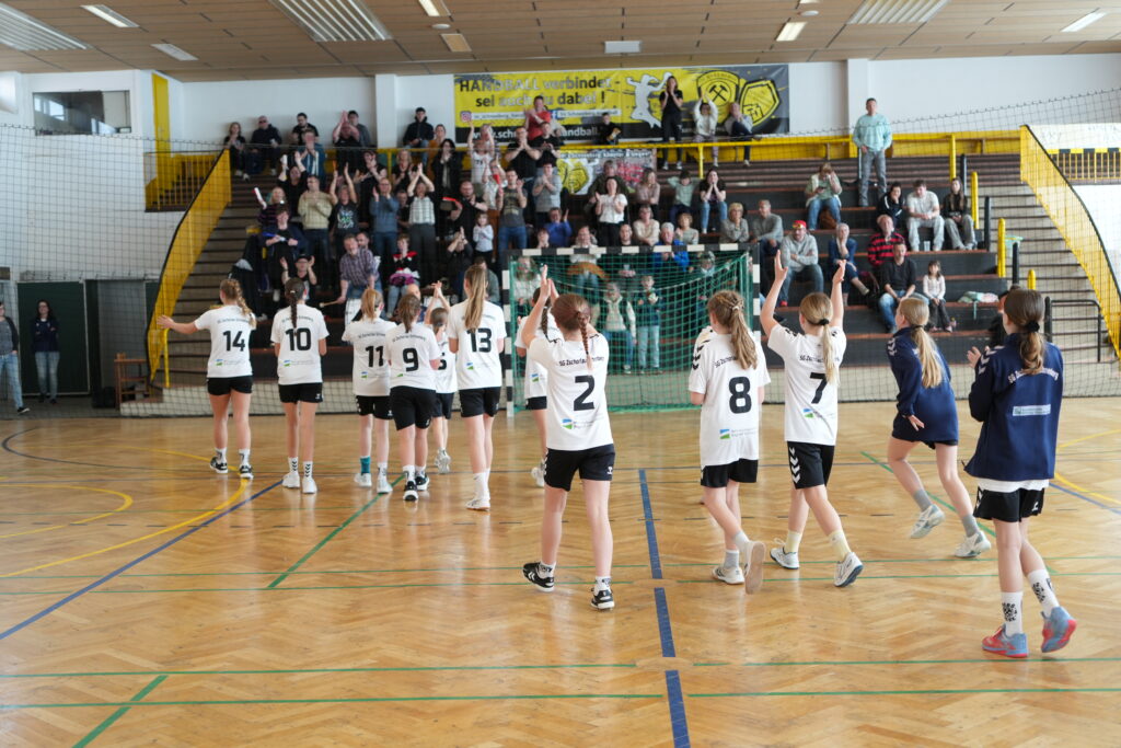 Die D-Jugend der SG Zschorlau/Schneeberg hat es geschafft: Mit einem starken 25:17-Heimsieg gegen den direkten Verfolger HV Chemnitz sicherte sich das Team nicht nur eine gelungene Revanche für die letzten zwei Niederlagen, sondern gleichzeitig auch die vorzeitige Meisterschaft in der Regionsoberliga. Vor heimischer Kulisse zeigte das Team eine beeindruckende Leistung.