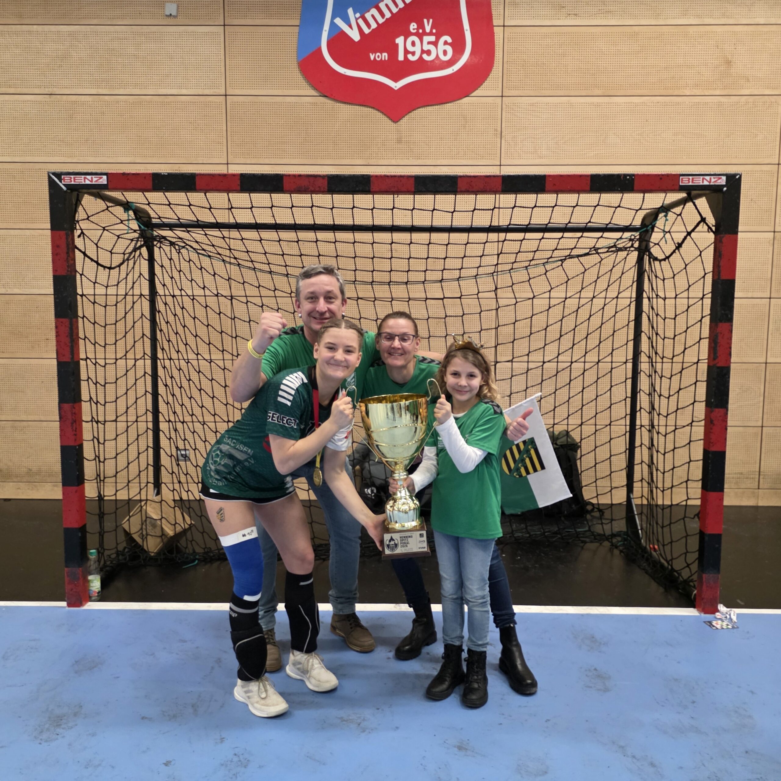 Mit dabei war auch Venezia Groh von unserer SG Zschorlau Schneeberg. Kurz vor Turnierbeginn erhielt sie den undankbaren Status als Ergänzungsspielerin, wodurch ihr ein aktiver Einsatz auf dem Spielfeld verwehrt blieb. Dennoch stellte sie sich voll in den Dienst der Mannschaft, unterstützte das Team des HV Sachsen vor Ort und von der Bank aus mit hoher Präsenz und Einsatzbereitschaft. Dieses Verhalten verdient besondere Anerkennung und spricht für ihren sportlichen Charakter sowie ihre Teamorientierung.