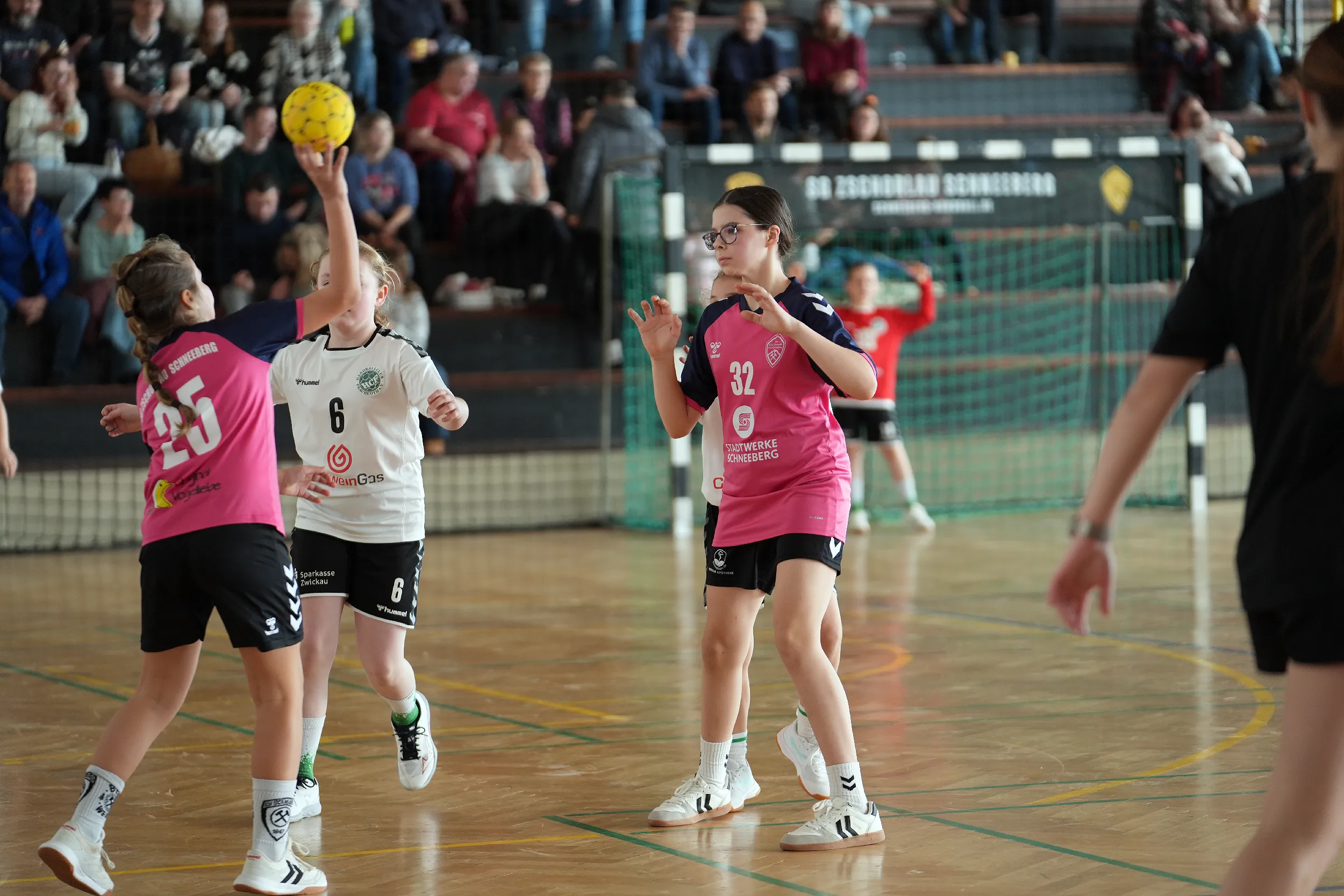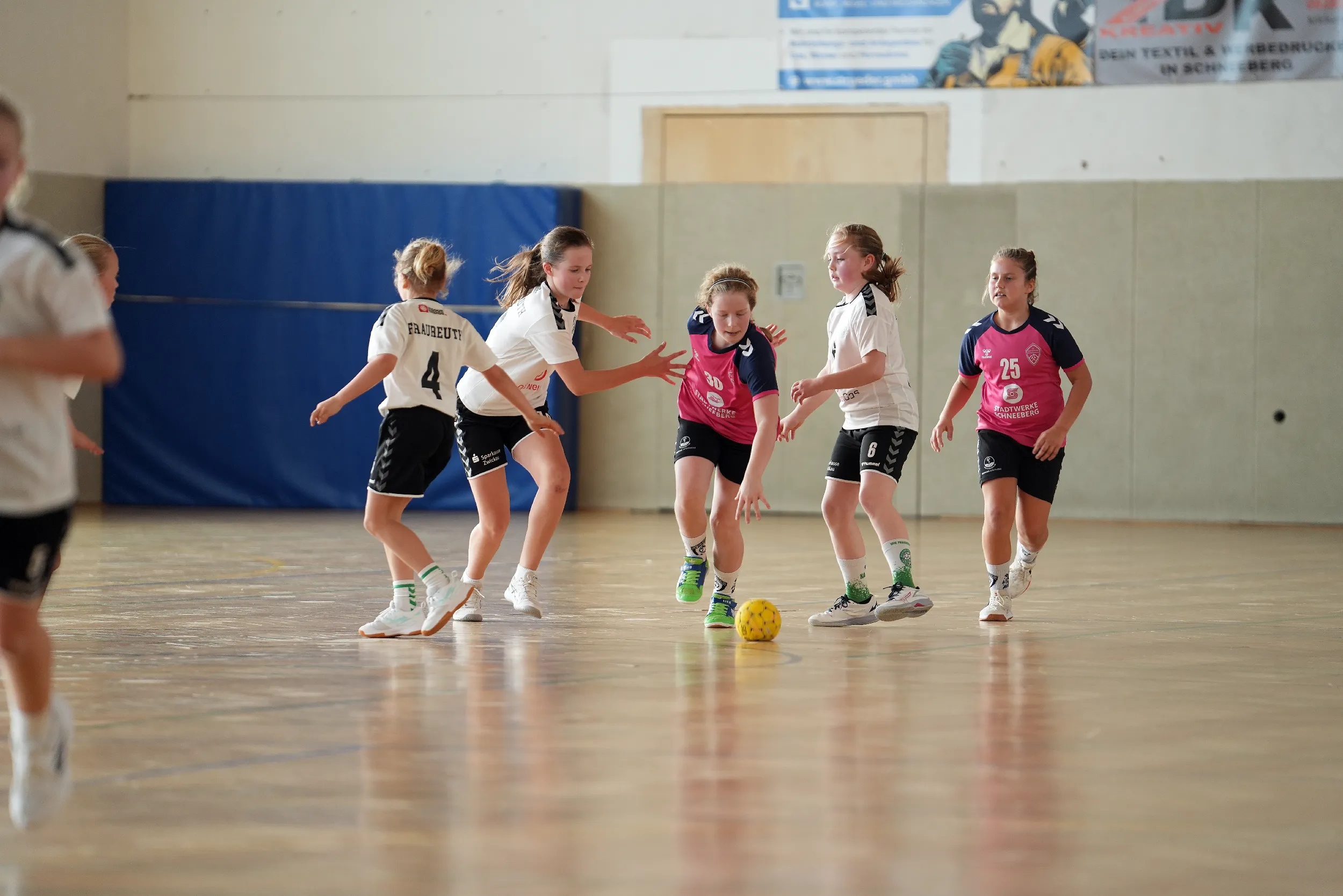 Im ersten Spiel gegen Fraureuth fanden wir nur schwer in die Partie. Im Angriff fehlte die letzte Konsequenz, zu viele Torwürfe fanden nicht ihr Ziel. Trotz einer stabilen Abwehr ging es mit einem deutlichen Rückstand von 3:11 in die Halbzeitpause. Doch Aufgeben war keine Option. In der zweiten Hälfte zeigten unsere Mädels, was in ihnen steckt: mehr Mut, mehr Einsatz, mehr Wille. Das Spiel verlief nun ausgeglichen und auf Augenhöhe, auch wenn der Rückstand nicht mehr aufzuholen war.