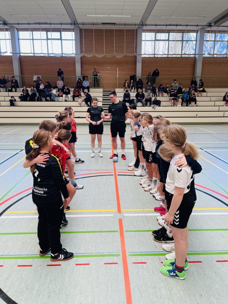 Unsere Mannschaft zeigte im ersten Spiel eine beeindruckend konzentrierte und spielfreudige Leistung. Von Beginn an waren wir wach und legten mit einem 7:0 Lauf den Grundstein für den späteren Erfolg. Aus einer aufmerksamen Abwehr heraus konnten immer wieder Bälle erobert und durch schnelles Umschalten in einfache Tore umgewandelt werden. Zur Halbzeit stand daher bereits ein klarer 12:2-Vorsprung auf der Anzeigetafel. Auch nach dem Seitenwechsel ließen unsere Mädels nicht nach. Wir wechselten munter durch, ohne das der Spielfluss darunter litt. Besonders überzeugten das Zusammenspiel, viele sauber herausgespielte Torchancen und eine großartige Torhüterleistung.