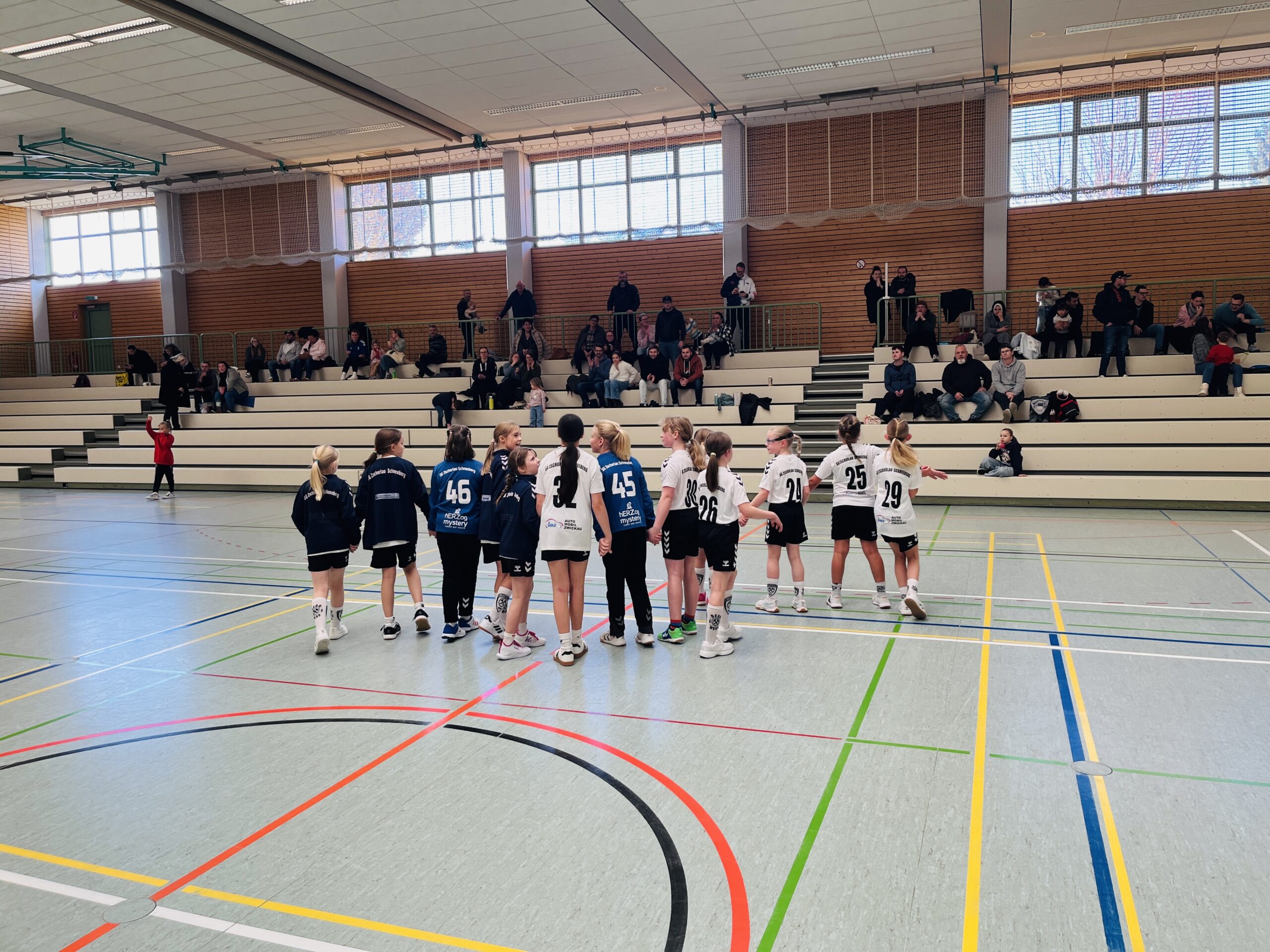 Direkt nach dem Spiel gegen Glauchau/Meerane ging es gegen unseren Tabellennachbarn, den SV Plauen/Oberlosa, eine Mannschaft auf Augenhöhe. In den ersten 15 Minuten boten unsere Mädels den Zuschauern und uns Trainern die beste Halbzeitleistung der Saison 🤩. In der Abwehr packten alle entschlossen zu, unterbanden viele Angriffsversuche der Plauener Mädchen frühzeitig und setzten immer wieder schnelle Gegenstöße. Im Angriff lief der Ball flüssig, sodass zahlreiche schön herausgespielte Tore fielen. Der Lohn: eine deutliche 14:6-Führung zur Pause. Die Energie der ersten Hälfte konnten wir dann allerdings nicht in die zweite Halbzeit übertragen. Spielerwechsel und langsam schwindende Kräfte führten zu unkonzentrierten Aktionen im Angriff und auch die Zuordnung in der Abwehr passte so gar nicht mehr. Durch eine starke Torhüterleistung und Einzelaktionen im Angriff konnten wir den zweiten Tagessieg dennoch sicher über die Zeit bringen.