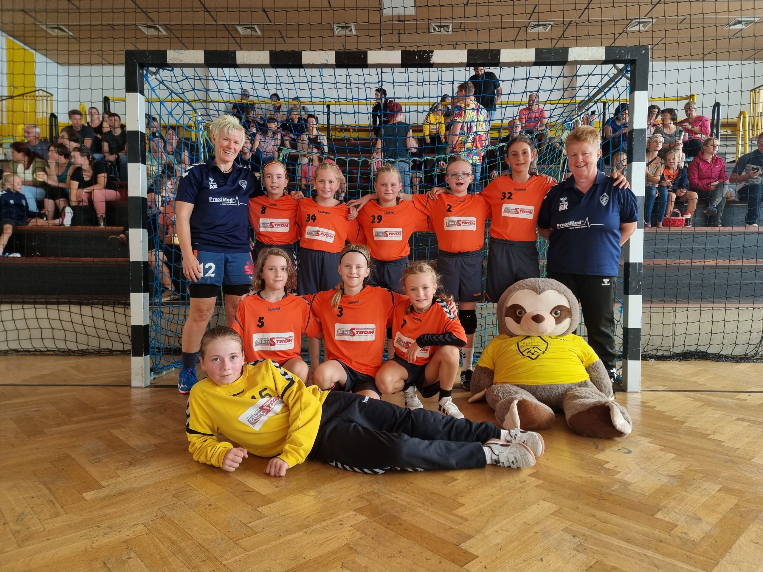 Zuerst traten sie gegen die Mannschaft des HV Chemnitz an. Nachdem den Mädels der Start in die Partie sichtlich schwerfiel, stand es in der 4. Minute bereits 3 zu 0 für die Gäste. Das Trainerteam zog die grüne Karte, stimmte die Mannschaft nochmal ein und dann zeigten die Schneeberger Mädels was sie in den letzten Wochen gelernt und trainiert haben. So konnten sie am Schluss die Partie mit einem klaren 26:7 für sich entscheiden.