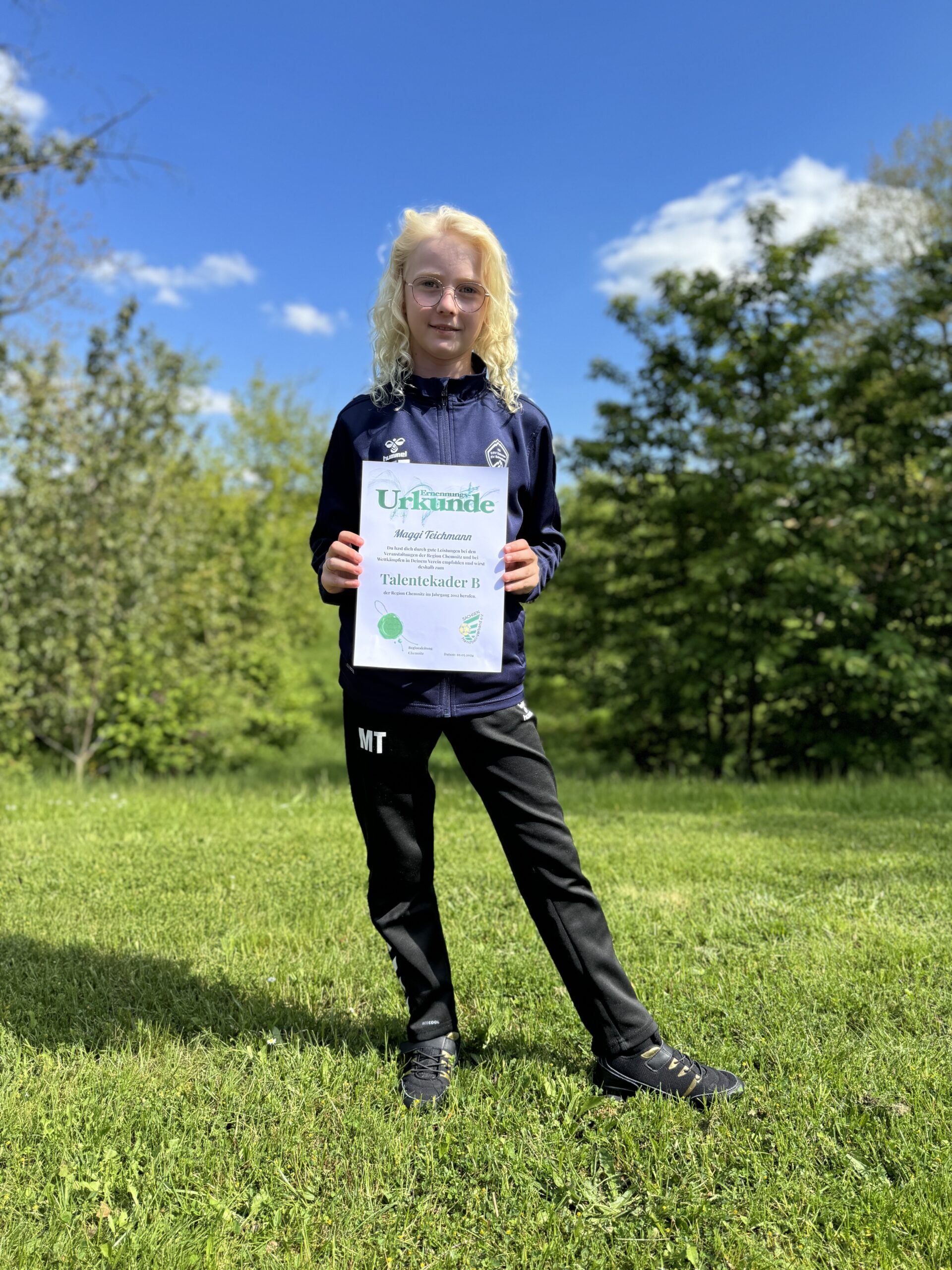 Am 10. Mai 2024 fand in Neuplanitz der Talentetrainingstag der Region Chemnitz (ehemals Bezirksauswahlsichtung) für den Jahrgang 2012 der weiblichen Jugend im Handball statt. Ziel dieser Veranstaltung war es, vielversprechende Talente zu entdecken und zu fördern, um den Nachwuchshandball in der Region zu stärken. Unter den Teilnehmern konnte sich unsere Maggie Teichmann erfolgreich durchsetzen und wurde für weitere Maßnahmen nominiert. Maggie hatte sich bereits zuvor durch ihre tollen Leistungen beim CampDay am 1. Mai 2024 für dieses Event empfohlen. Ihre Leistung und ihr Engagement während des Camps zeigten deutlich, dass sie über das Potenzial und die Motivation verfügt, um auf weiteren Maßnahmen zu bestehen. Der Talentetrainingstag bot den jungen Handballerinnen eine Plattform, ihr Können unter Beweis zu stellen. Unter den Augen der Auswahltrainer präsentierten die Spielerinnen ihre Fähigkeiten in verschiedenen Übungen und Spielsituationen, in denen auch Maggie überzeugte. Die Nominierung von Maggie Teichmann ist eine großartige Anerkennung für ihr Talent, ihren Einsatz und unserer Nachwuchsarbeit.