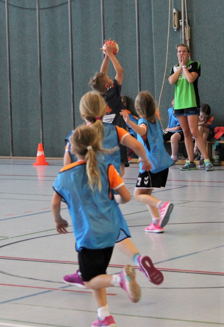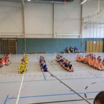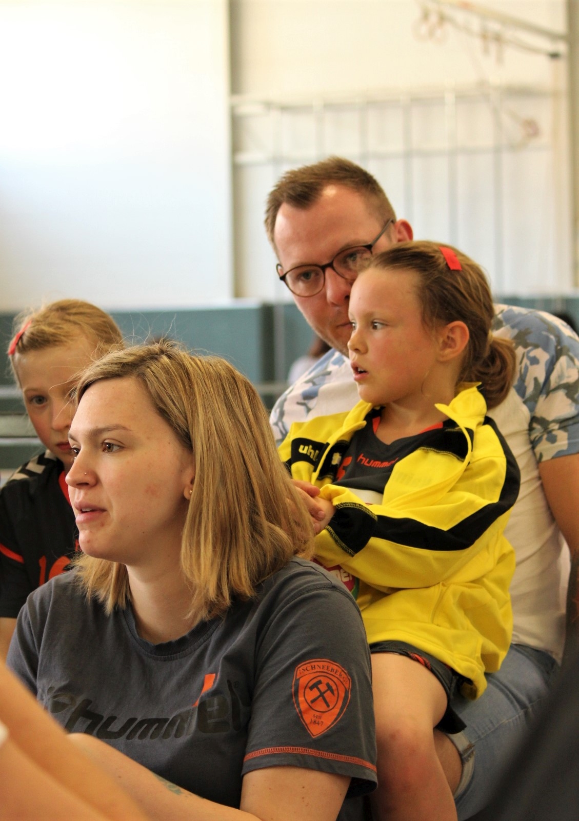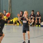 Aufgeteilt wurde das Spielfest in zwei Turniere, im ersten wurde Aufsetzerball gespielt und im zweiten Minihandball. Wir starteten also mit der Vorrunde im Aufsetzerball. Im ersten Spiel trafen wir auf einen unbekannten Gegner aus Limbach-Oberfrohna. Wir hielten gut gegen die flinken Jungs mit, ließen ihnen aber noch zu viel Platz, da wir teilweise zu spät in den Rückwärtsgang schalteten und verloren so knapp das Spiel. Nach kurzer Pause trafen wir auf die uns bekannten Mädels vom HC Fraureuth. Unsere Kinder ackerten diesmal in der Defensive und somit kamen weniger Torwürfe für die Gegner zustande und wir konnten das Spiel knapp gewinnen. Als Zweitplatzierter in der Gruppe mussten wir somit gegen den Ersten der anderen Staffel ran – SG Nickelhütte Aue. Gegen die Jungs sahen wir leider keinen Stich und mussten uns geschlagen geben. Aber ein Spiel stand noch vor uns, das Spiel um Platz 3 gegen den SV 04 Oberlosa und das wollten wir nochmal gewinnen. Mit genauso viel Ehrgeiz und Laufbereitschaft wie gegen Fraureuth schafften wir dies auch und erzielten somit den 3. Platz im Aufsetzerball.