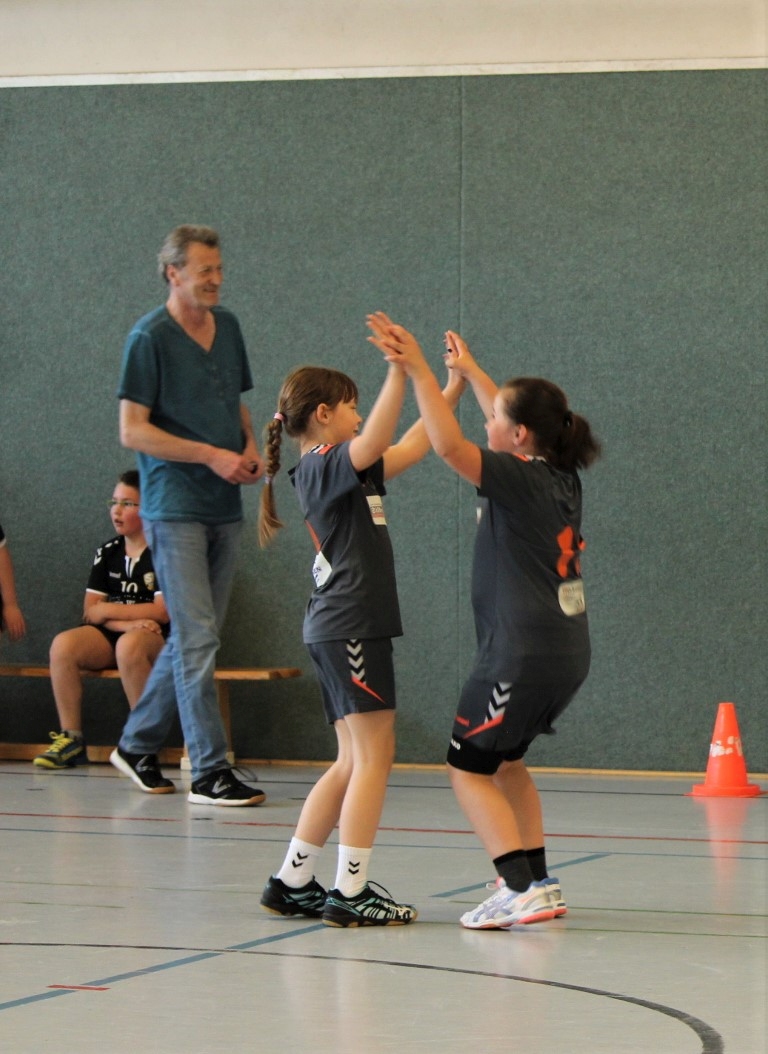 Nach einer kleinen Mittags- und Umbaupause nahmen wir uns das gleiche Ziel auch im Minihandball vor. Trotz neuer Auslosung standen sich wieder die gleichen Gegner gegenüber und wir starteten gegen den BSV Limbach-Oberfrohna. Hier machte sich nun deutlich bemerkbar, dass Limbach (und auch Aue) die ganze Saison nur Handball spielen. Sie liefen clever in unsere Passwege und spielten die abgefangenen Bälle sicher in Richtung unseres Tores. Auch die Torwürfe sind bereits schärfer und präziser als unsere. Somit gewann Limbach das Spiel sicher. Gegen Fraureuth wollten wir es nun besser machen. Wenn wir allerdings den gegnerischen Torhüter nur anwerfen, bzw. unsere Bälle unterwegs einschlafen, kann man nun mal kein Handballspiel gewinnen. Als letzter der Gruppe, mussten wir nun gegen den letzten der anderen Gruppe im Spiel um Platz 5 ran. Auch gegen Plauen-Oberlosa bot den mitgereisten Eltern kein anderes Bild und wir verloren auch dieses Spiel und schlossen somit als 6. Platz ab.