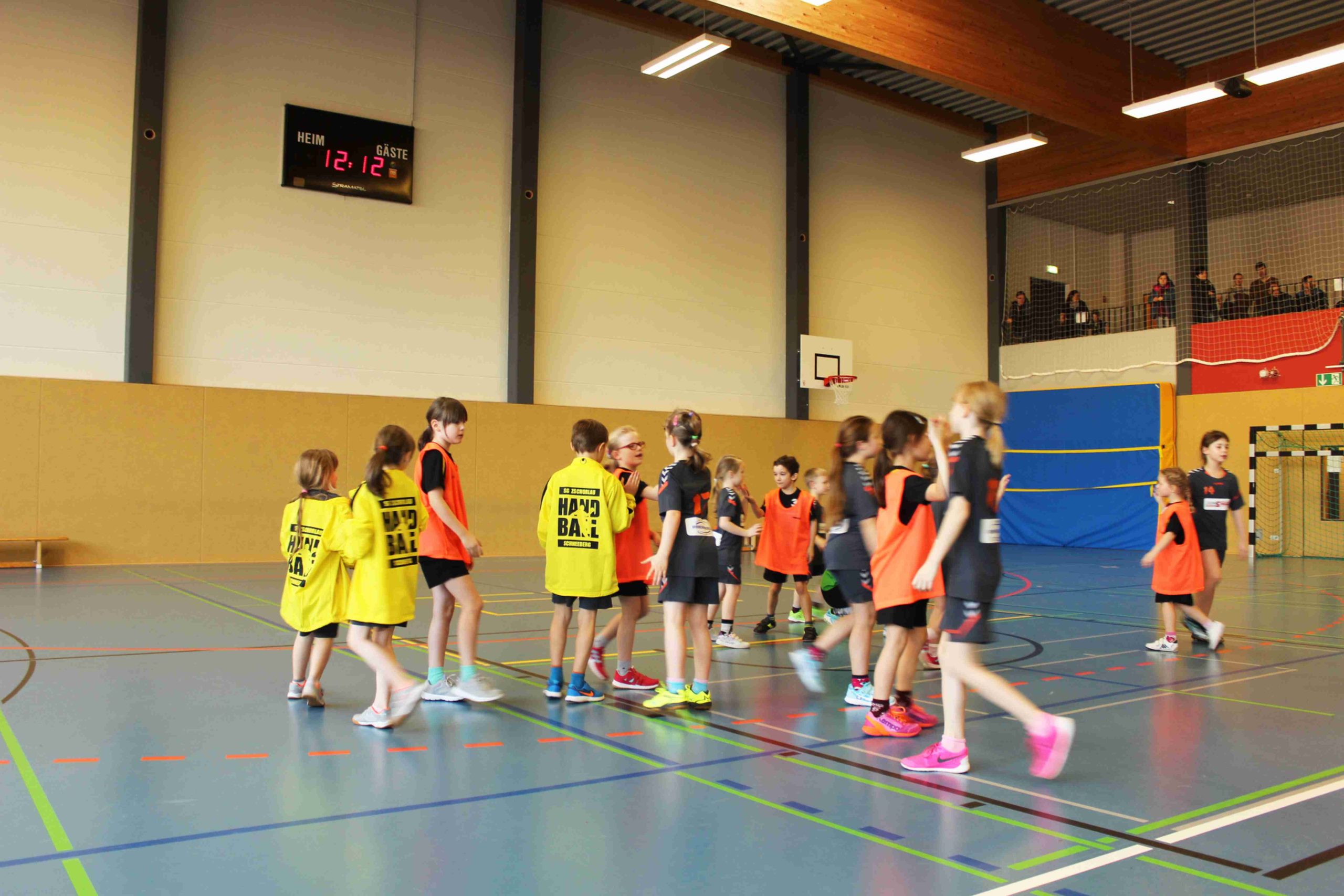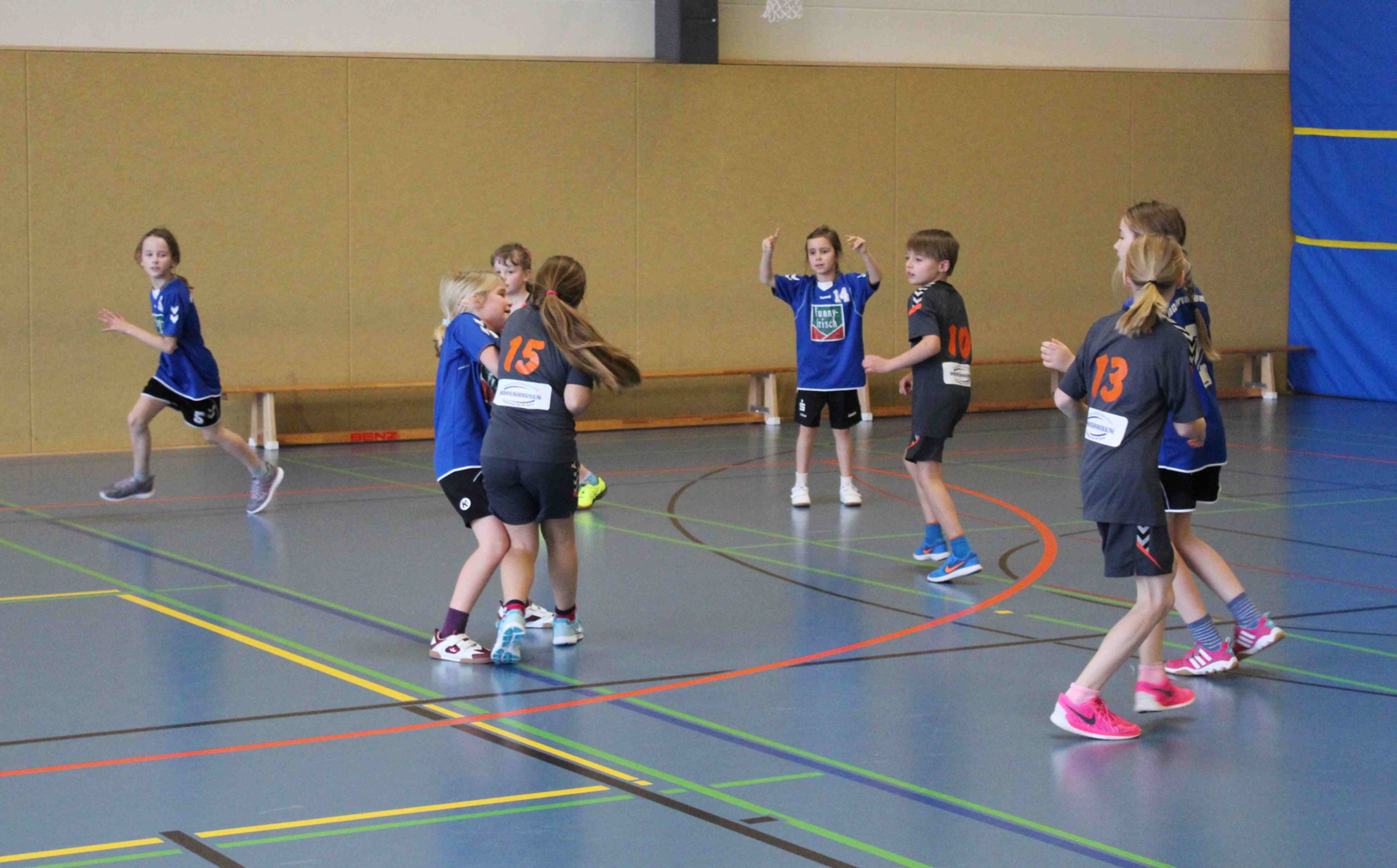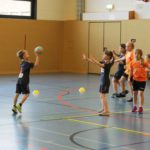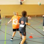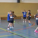 Wie immer wurde nicht nur Handball gespielt, diesmal stande Aufsetzterball mit auf dem Plan. Fleißig trainierten wir die Woche zuvor, denn einige Kinder spielten Aufsetzerball schließlich zum ersten Mal. Aber pfiffig wie unsere Kinder sind, beherrschten sie die Regeln im Nu. Neu in dieser Saison ist, dass die Vielseitigkeitstests nicht an einem separaten Tag durchgeführt werden, sondern jeweils eine der vier Übungen an einem Spieltag mit getestet werden. Somit übten wir gezielt das Seilspringen in den letzten Wochen. Und ich muss sagen, ich bin total begeistert, denn alle Kinder haben sich innerhalb der 10 Tage enorm verbessert. Wir sind stolz auf euch! ?