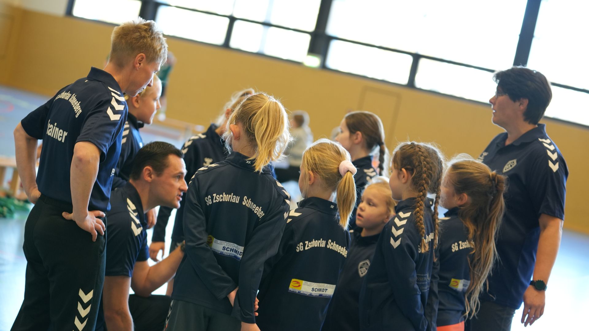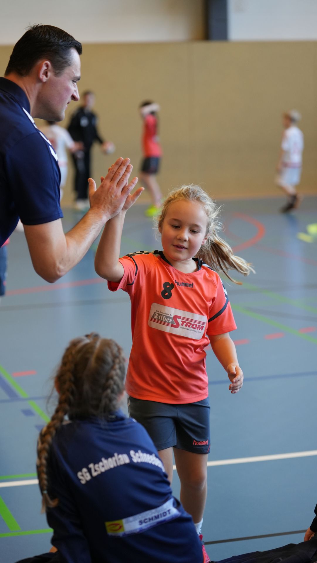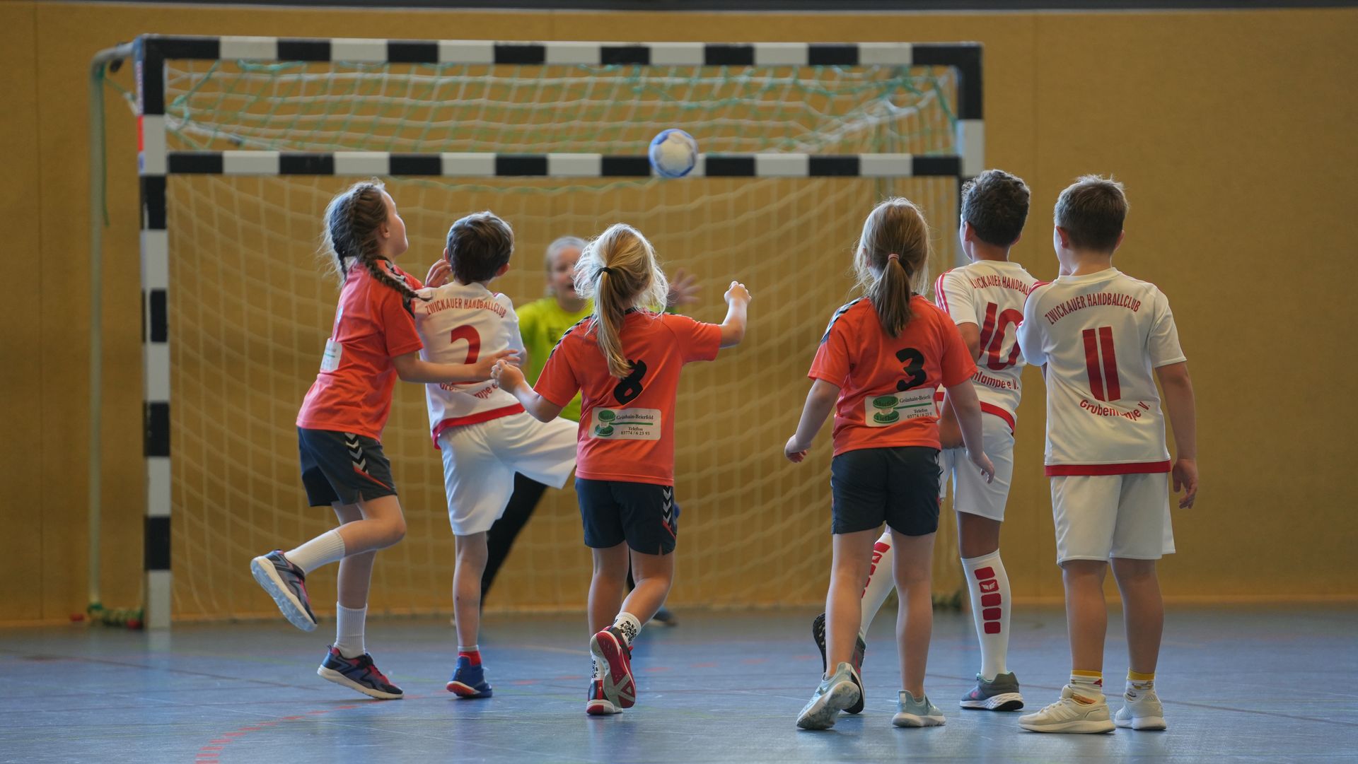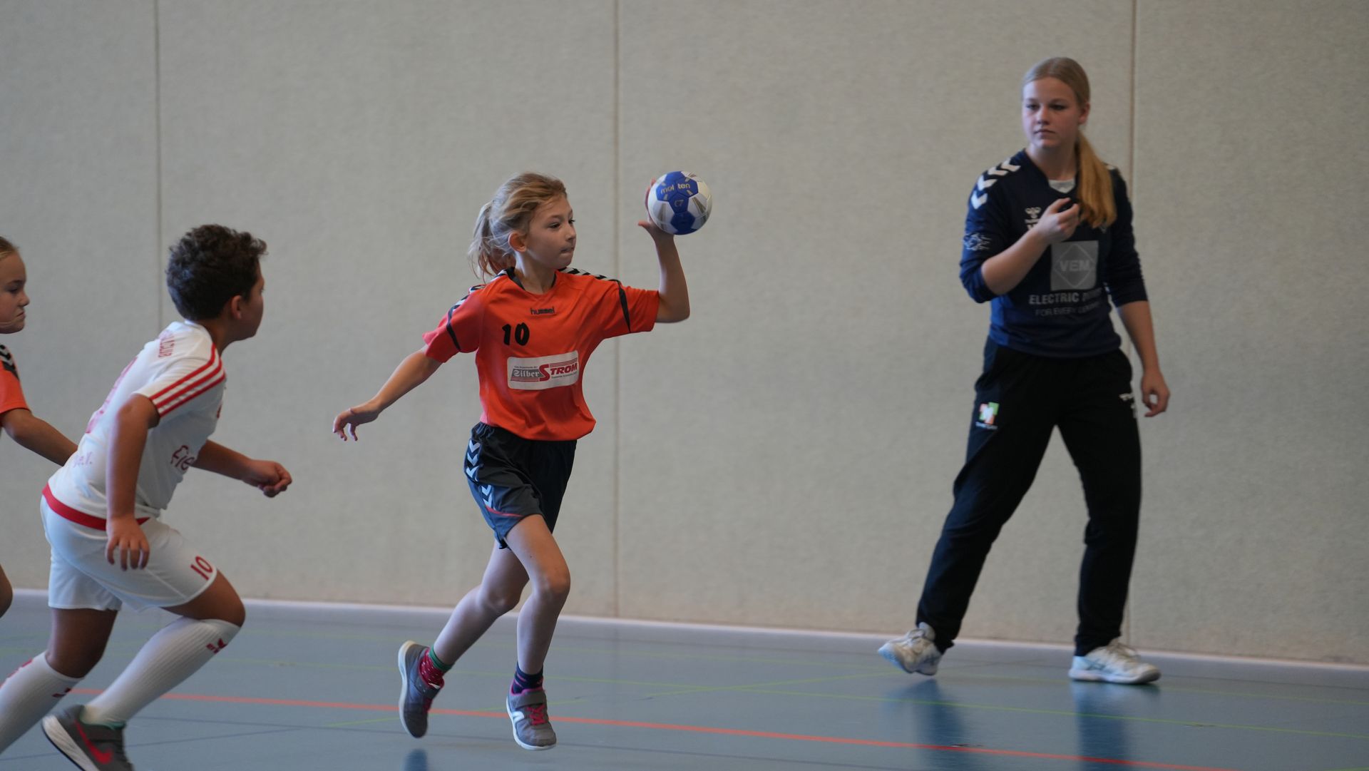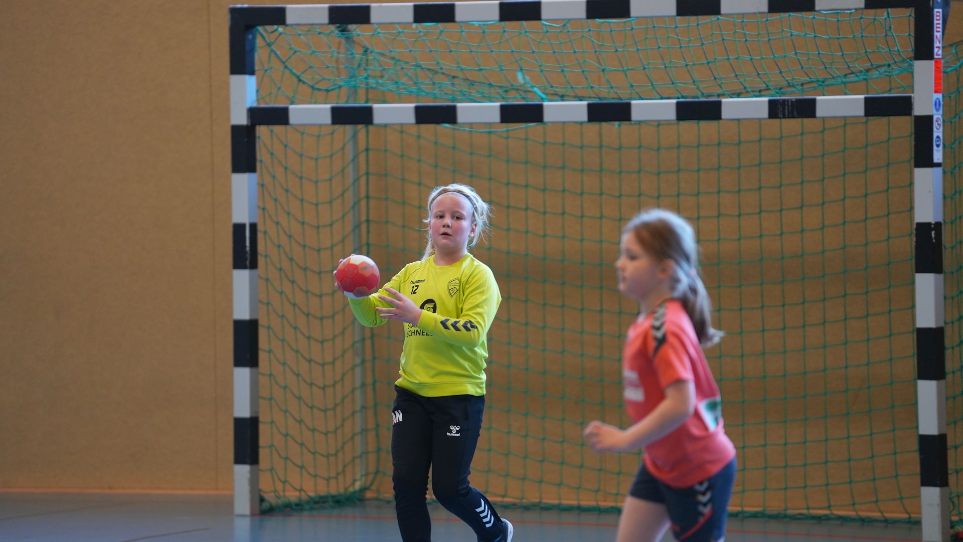 Trotz starker Gegner bewiesen die Mädchen anschließend im Handball großen Kampf- und Teamgeist. Nach einem Erfolg und einer Niederlage erkämpfte sich die Mannschaft zu guter Letzt ein wohl verdientes Unentschieden gegen den ZHC Grubenlampe. Neben den teilweise super herausgespielten Toren trug auch die starke Leistung von Abby im Tor zum heutigen Erfolg bei.