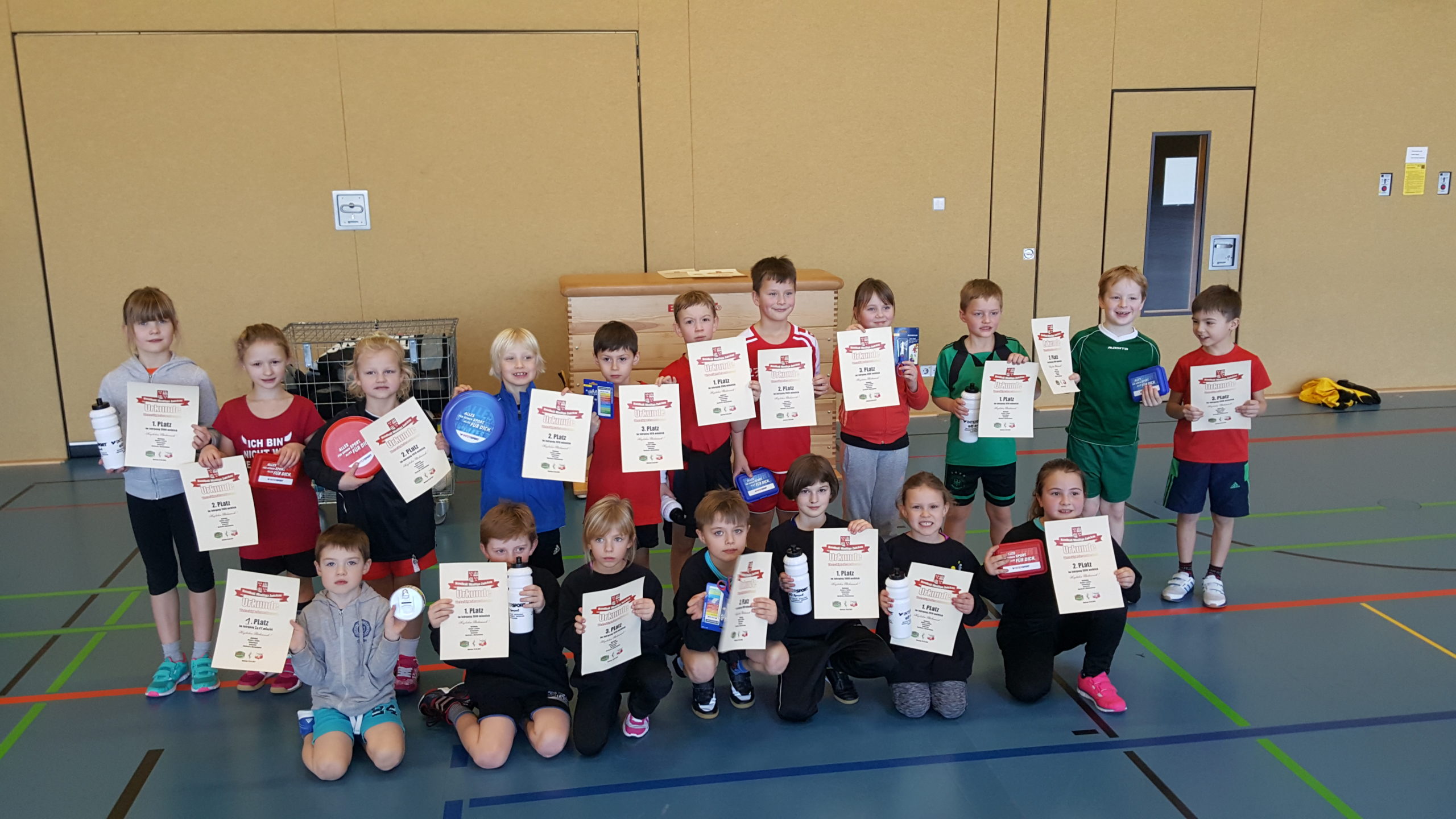 Obwohl die meisten vorher mit Aufregung zu kämpfen hatten, sah man es Ihnen während den Übungen nicht mehr an und somit konnten unsere Mädels und Jungs sehr gute Ergebnisse erzielen. Leider hatten unsere beiden 2008er Girls Annika und Annalena schwierigere Voraussetzungen auf einen Podiumsplatz zu gelangen, da insgesamt 16 Mädchen in ihrer Altersklasse angetreten sind. Besser lief es dafür für unsere 2009er Mädchen Jule und Melinda, denn die beiden hatten gar keine Konkurrentinnen und schafften es somit locker auf Platz 1 (Jule) und Platz 2 (Melli). Konkurrentinnen hätten es bei Jules und Mellis Leistungen aber sowieso schwer gehabt 😉 Ähnlich wie bei unseren 2009er Jungs Damian und Luca. Gegen Damian hat keiner einen Stich gesehen (Platz 1) und auch Luca schaffte es aufs Treppchen (Platz 3). Auch in der Gruppe weiblich 2010 konnten wir mit Naimi (Platz 1) und Maila (Platz 3) kräftig abräumen.