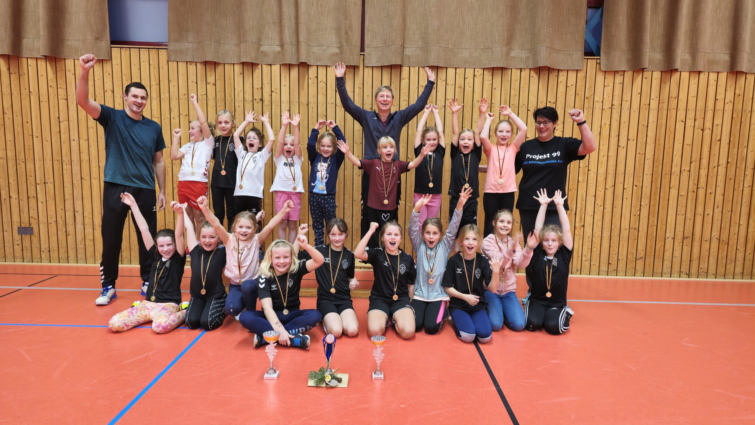 Nach dem sportlichen Teil folgte die Würdigung für das, was die Mädels in diesem Jahr erreicht haben. Alle gemeinsam sind über das Jahr zu einem super Team zusammengewachsen, neue Freundschaften entstanden und alle haben riesige Fortschritte mit dem Ball in der Hand gemacht. Die sehr guten Ergebnisse an Miniliga-Spieltagen und die gewonnenen Pokale zeigen diese Entwicklung eindrucksvoll.