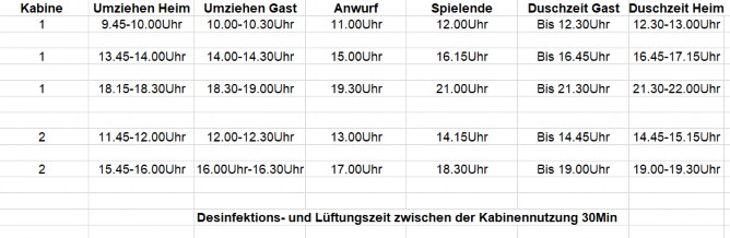 • Der Zeitplan zur Nutzung der Kabinen ist für alle Mannschaften bindend.