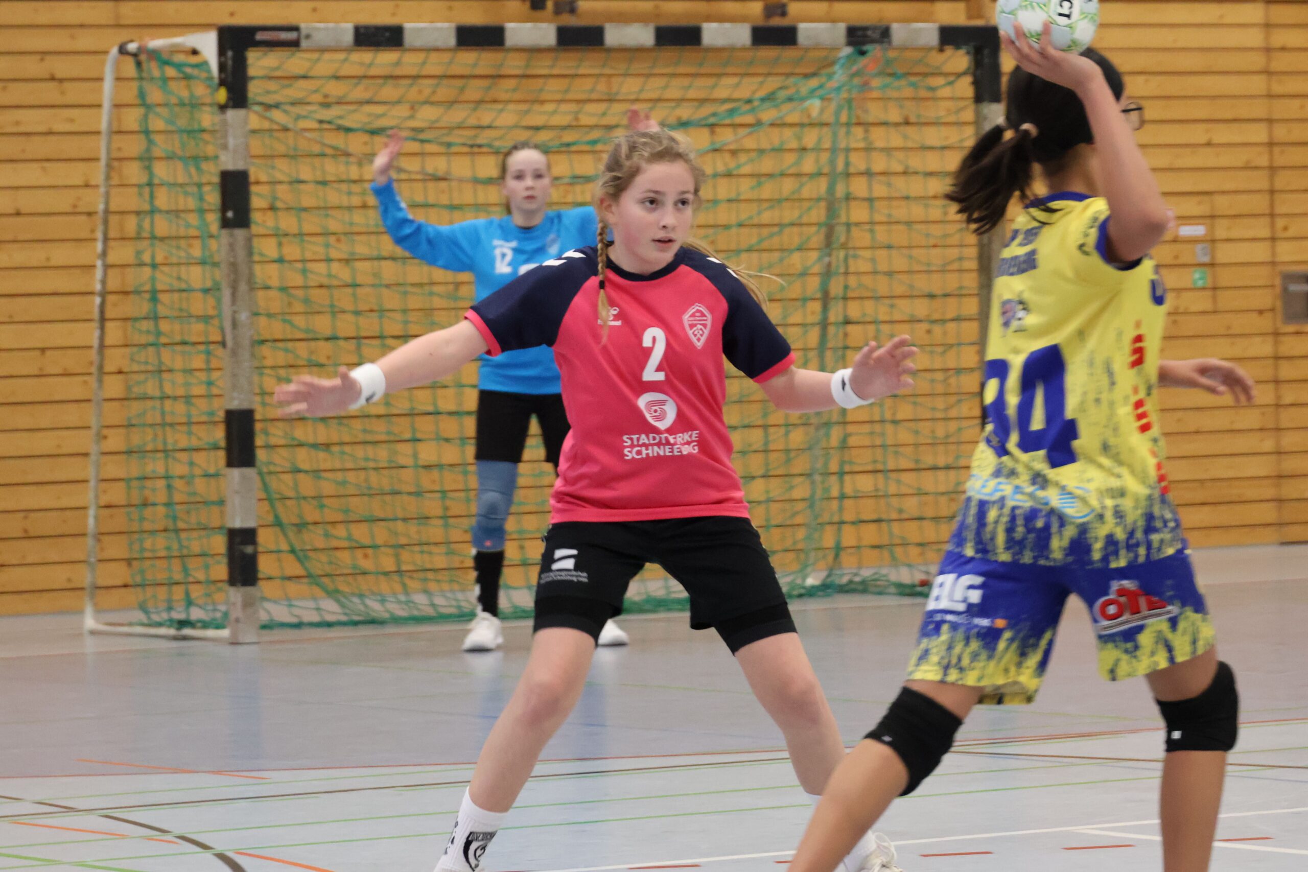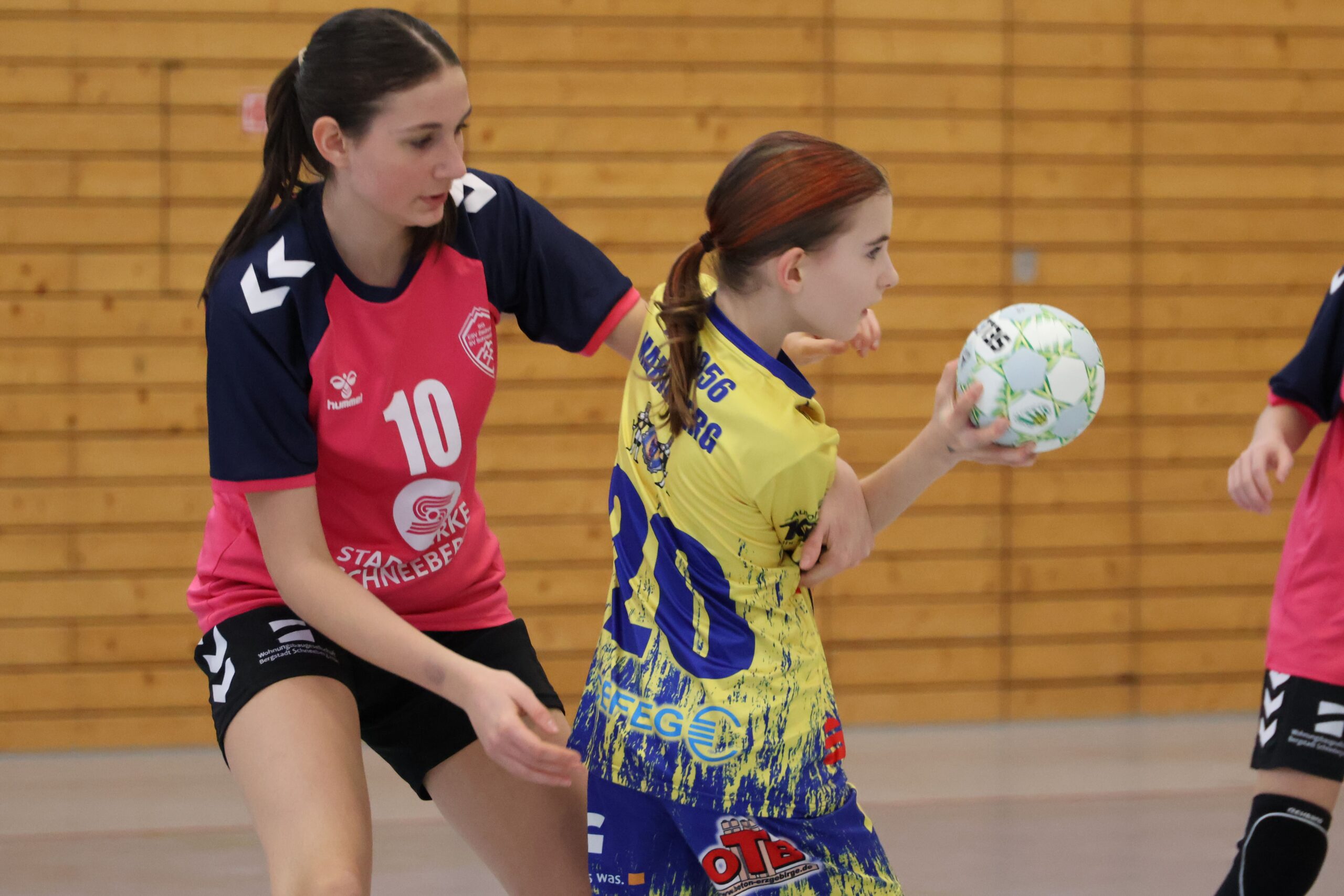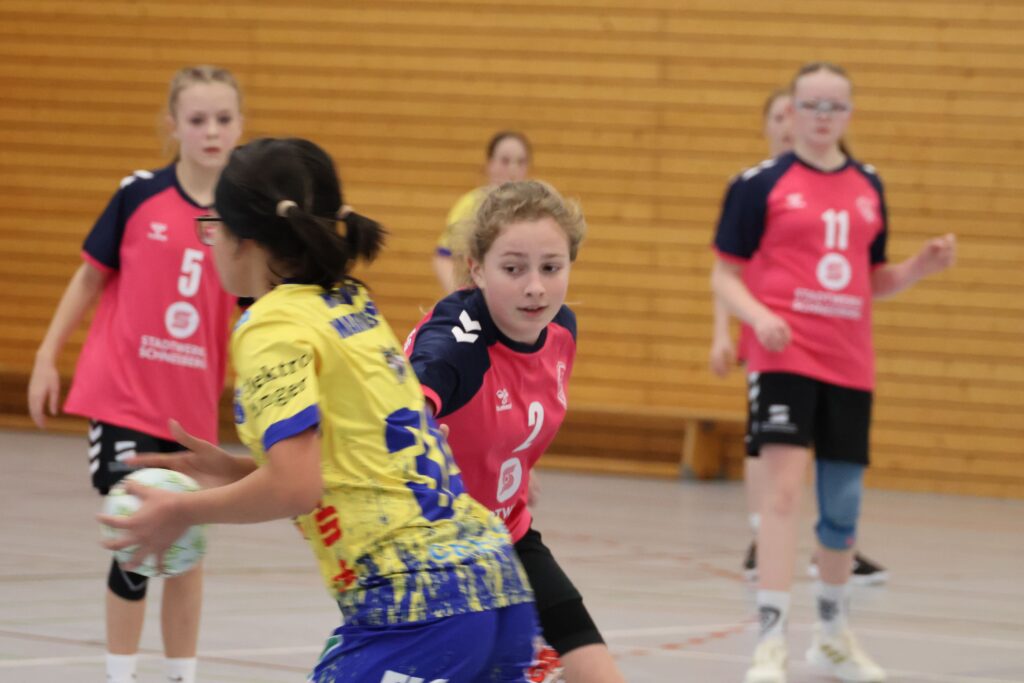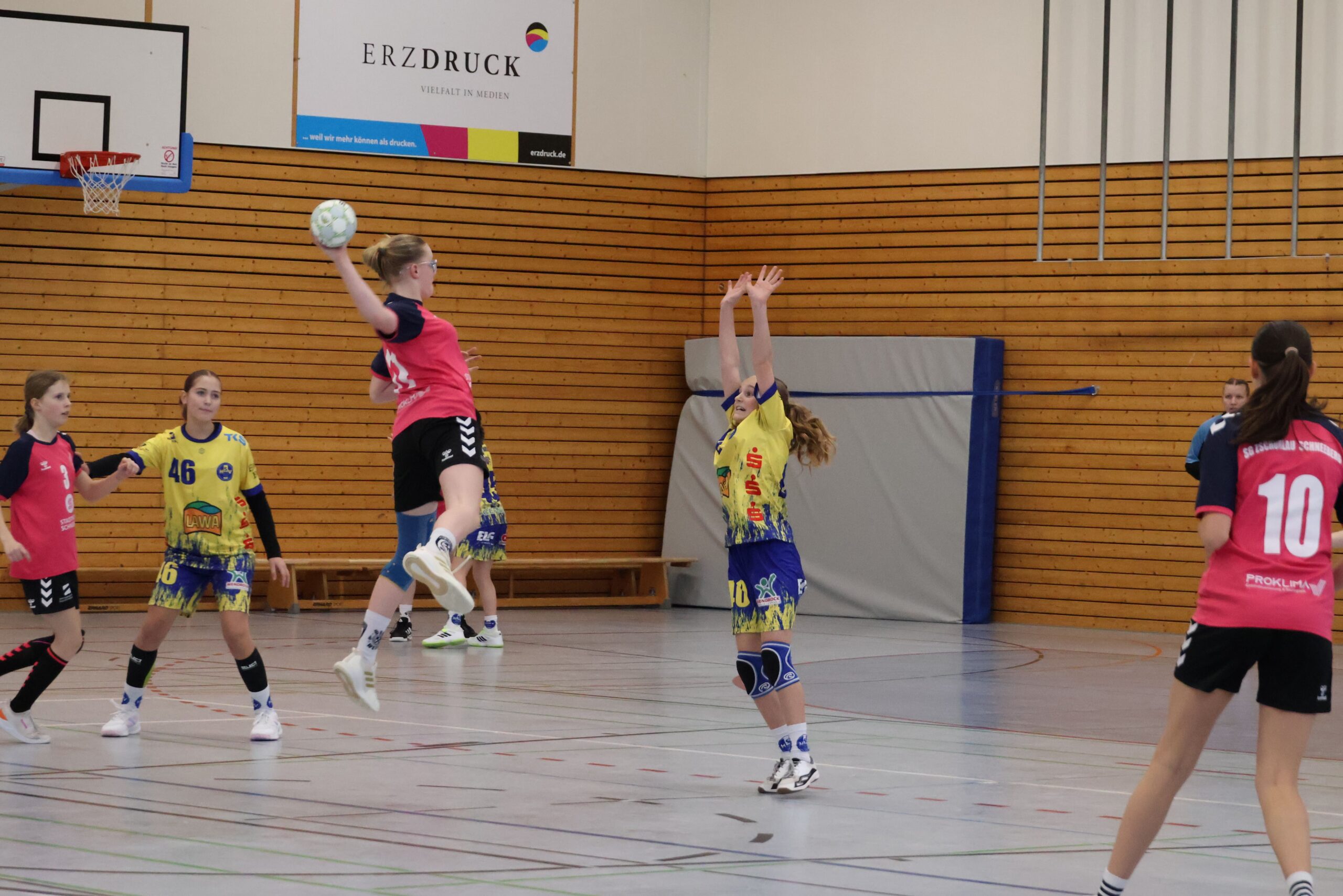 Die Partie begann unter besonderen Vorzeichen: Sowohl beide Trainer als auch einige Spielerinnen waren krankheitsbedingt angeschlagen bzw. ausgefallen. Kurzfristig übernahm unser E-Jugend-Trainer Martin die Verantwortung an der Seitenlinie und stellte die Mannschaft sehr gut auf diese ungewohnte Situation ein. Die Bedeutung des Spiels war von Beginn an spürbar, doch gerade diese Ausgangslage schien die Mannschaft zunächst eher zu hemmen als zu beflügeln. Die erste Halbzeit verlief insgesamt sehr schleppend. Die Mannschaft fand nur schwer ins Spiel und wirkte in der Anfangsphase ungeordnet und nicht konsequent genug. In der Defensive fehlte zunächst der nötige Zugriff, wodurch einfache Gegentore zugelassen wurden. Der HSV Marienberg nutzte diese Unsicherheiten konsequent aus und kam früh zu leichten Torerfolgen. Trotz des holprigen Starts gelang es unseren Mädels im weiteren Verlauf, sich etwas zu stabilisieren. Vor allem im Angriff wurde mehr Verantwortung übernommen, sodass es gelang, die Führung zu übernehmen. Ein entscheidender Faktor in dieser Phase war die starke Leistung im Tor. Mit mehreren gelungenen Paraden, darunter auch bei freien Würfen, gab unsere Charlize der Mannschaft früh Sicherheit und verhinderte, dass Marienberg besser ins Spiel kam. Auch ein Siebenmeter der Gastgeber konnte nicht genutzt werden. Bis zur Pause wurde der Vorsprung konsequent ausgebaut, sodass es mit einer verdienten 9:5-Führung in die Kabine ging.