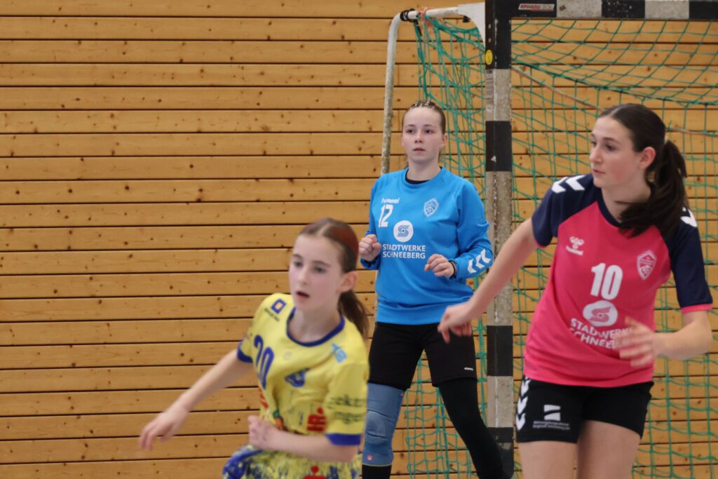 Nach dem Seitenwechsel kam die SG Zschorlau/Schneeberg hochkonzentriert aus der Kabine. Mit viel Tempo und klaren Aktionen im Angriff gelang es zunächst, den Vorsprung weiter auszubauen. Auch in der Defensive wurde aufmerksam gearbeitet, sodass Marienberg in dieser Phase nur schwer zu guten Abschlüssen kam. Der Abstand wuchs zwischenzeitlich auf sechs Tore an, und alles deutete auf einen kontrollierten Auswärtssieg hin. Doch die Gastgeberinnen gaben sich ebenfalls nicht geschlagen. Mit zunehmender Spieldauer schlichen sich bei unserer Mannschaft kleine Ungenauigkeiten ein, die Marienberg konsequent nutzte. Trotz des schwindenden Vorsprungs wurde weiter gekämpft und immer wieder der Weg zum Tor gesucht. Besonders in dieser Phase zeigte das Team großen Zusammenhalt und gegenseitige Unterstützung auf dem Feld. Auch nach weiteren Auszeiten blieb das Spiel offen und hart umkämpft. In der Schlussphase wurde es dann richtig spannend. Durch zwei Treffer gelang Marienberg der Ausgleich, was der Begegnung eine neue Dynamik verlieh. Doch unsere Mädels ließen sich davon nicht beirren, zeigten Moral und kämpferischen Einsatz. Mit großem Willen wurde in der letzten Minute der entscheidende Treffer erzielt und damit der hart umkämpfte Auswärtssieg mit 15:16 gesichert.