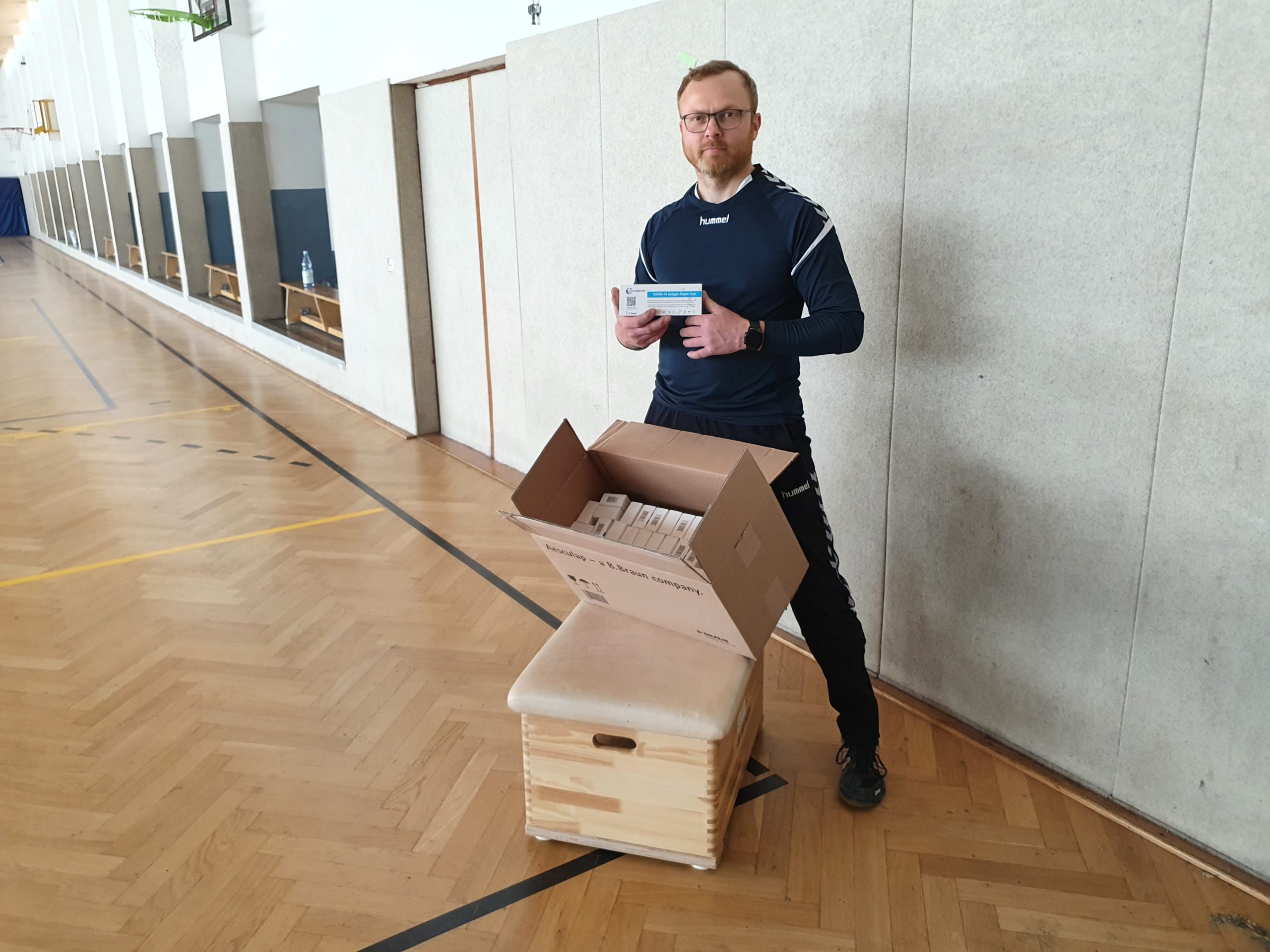 Jugendkoordinator Alexander Peter nimmt Schnelltests in Empfang