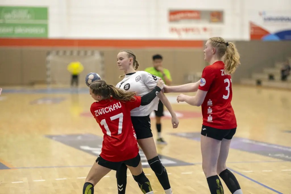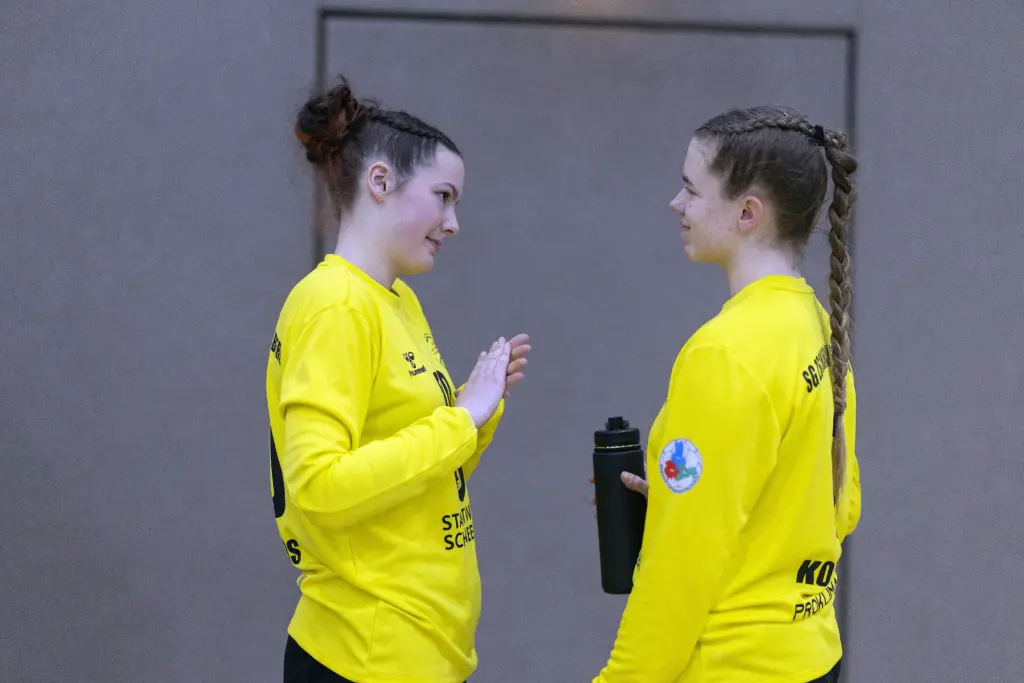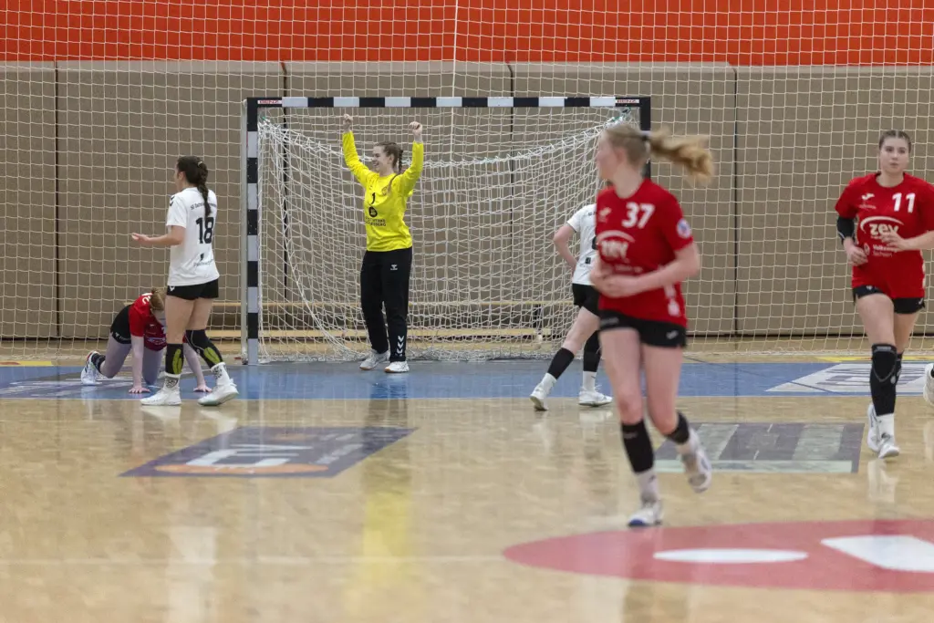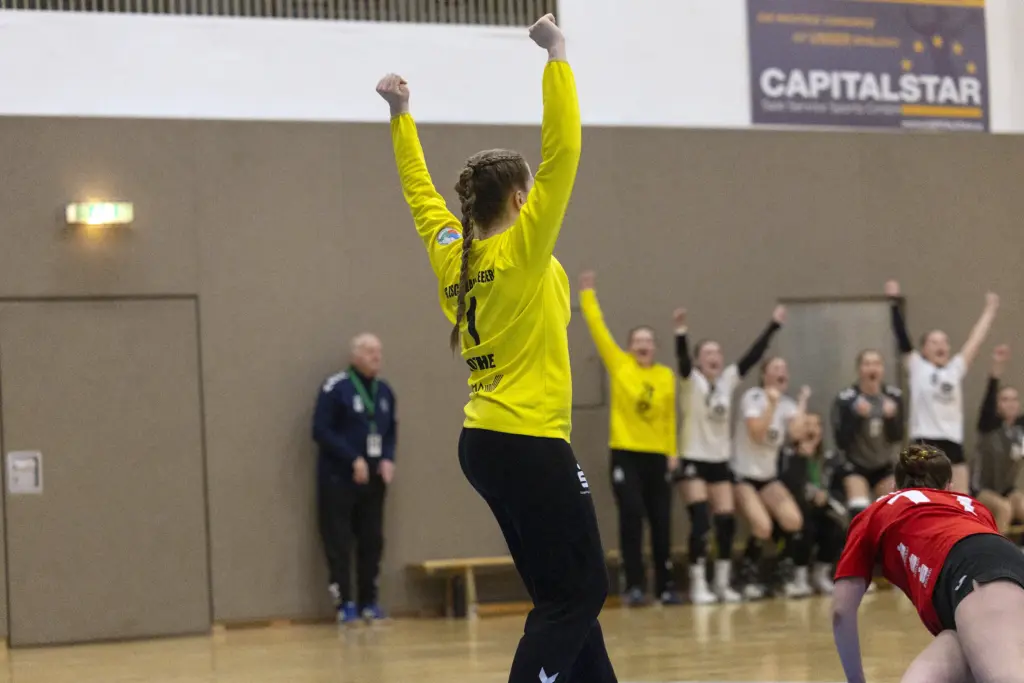 Gerade weil das Spiel insgesamt so kontrolliert verlief, konnten wir in der zweiten Halbzeit auch den kompletten Kader einsetzen. Das ist immer ein starkes Zeichen für die Breite und Geschlossenheit einer Mannschaft. Dass wir in dieser Phase durchwechseln konnten, ohne dass unser Spiel darunter litt, spricht klar für die Qualität des gesamten Kaders. Im Gegenteil: Die Wechsel brachten noch einmal frische Impulse, auf die Zwickau am Ende nicht mehr entscheidend reagieren konnte. Gerade weil wir in der zweiten Halbzeit viel und erfolgreich durchwechseln konnten, war es umso schöner, dass Siri und Finnja – jahrgangsbedingt – in ihrem letzten Spiel für unsere B-Jugend noch einmal wertvolle Einsatzzeit bekamen. Beide haben über die gesamte Saison hinweg gezeigt, dass sie sich hervorragend in die Mannschaft integriert haben, das Team jederzeit unterstützt und ihren Teil zu dieser starken Spielzeit beigetragen haben. Umso passender war es, dass sie zum Saisonabschluss noch einmal auf der Platte standen und diesen gelungenen Nachmittag gemeinsam mit der Mannschaft erleben konnten. Ein ganz besonderes Highlight erlebte zudem unser 13 jähriges „Küken“ und jüngste Spielerin Nele Nestler, die nach einem Abpraller der Zwickauer Torhüterin ihr erstes Saisontor für unsere Mannschaft erzielte. Herzlichen Glückwunsch dazu, liebe Nele!